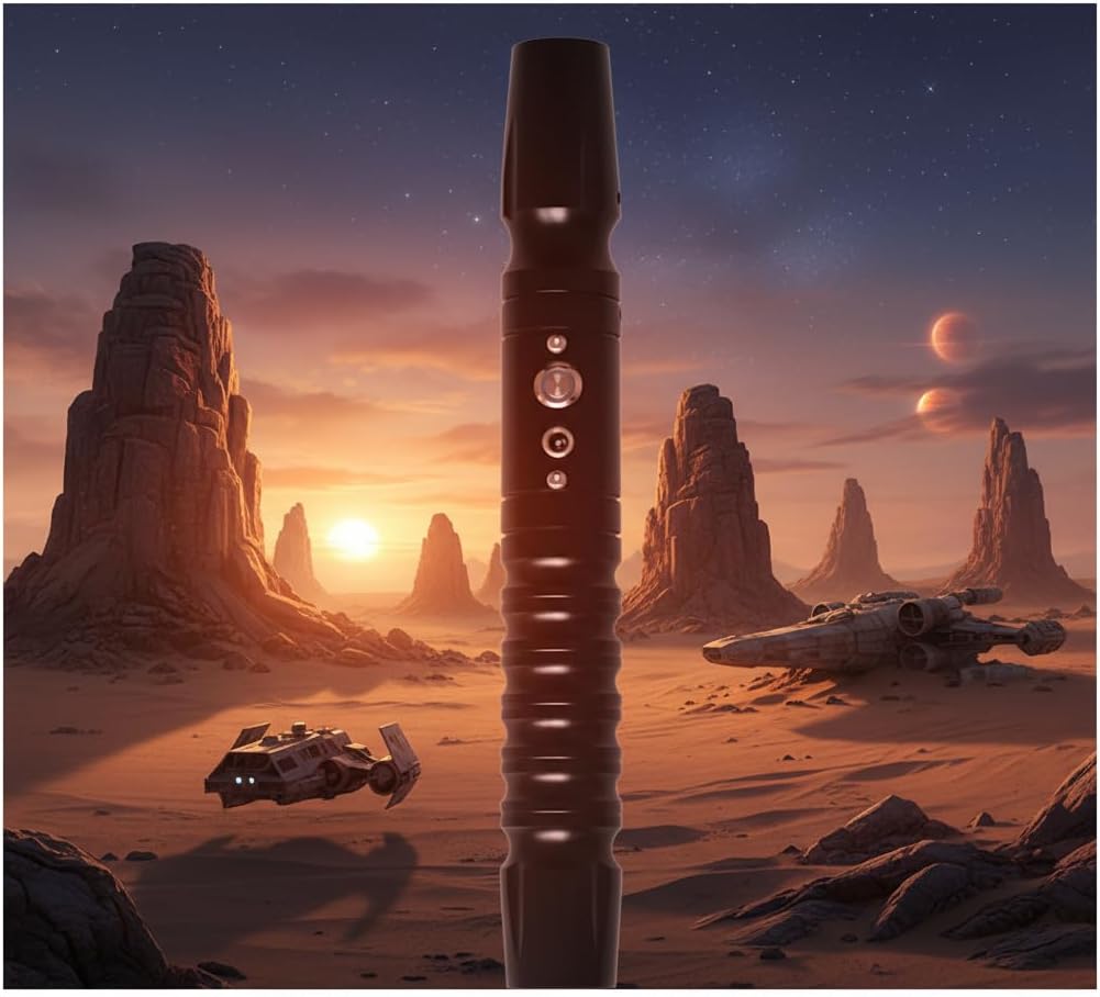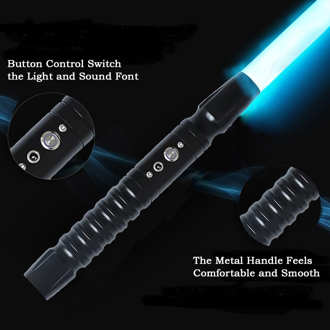 【Impugnatura in alluminio premium dal design professionale】 Impugnatura in metallo di alta qualità con superficie opaca e struttura ergonomica: comfort antiscivolo anche durante i duelli intensi. Design futuristico unico con elementi della maniglia strutturati. 【Tecnologia di combattimento cinetico】7 caratteri audio con sensore FOC. Feedback di vibrazione e flash di collisione in 3 modalità di battaglia (Allenamento/Duello/Spettacolo), controllate da precisi pulsanti metallici. 【Lama professionale in policarbonato da 25 mm】Lama in policarbonato resistente agli urti da 25 mm (200% più resistente agli urti rispetto allo standard). Ottica trasparente per effetti luminosi intensi durante allenamenti e spettacoli. 【Controllo intelligente della luce RGB】 Con un solo tocco è possibile selezionare colori illimitati, inclusa la modalità di blocco, il livello di luminosità e la funzione di memoria. Funzione silenziosa per uso interno. 【Set regalo definitivo】 Testato EN 71-3 e adatto a bambini dai 12 anni in su. Perfetto per Halloween, compleanni e feste di Natale - con effetti sonori cinematografici ed effetti spada LED.