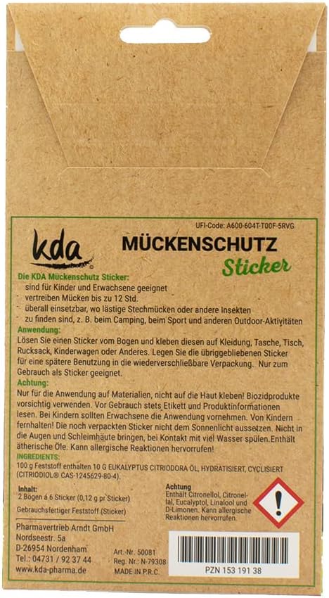 Numero di registrazione BAuA: N-79308 / Utilizzare i biocidi con attenzione. Leggere sempre l'etichetta e le informazioni sul prodotto prima dell'uso. Protezione efficace contro le zanzare: i nostri adesivi repellenti per zanzare vi offrono una protezione affidabile contro le fastidiose punture di zanzara. Confezione pratica: ogni confezione contiene 12 adesivi repellenti per zanzare, perfetti per una protezione duratura per la tua famiglia. Per tutta la famiglia: i nostri adesivi repellenti per zanzare sono adatti sia per adulti che per bambini, ideali per le avventure all'aria aperta. Versatile: attacca gli adesivi su vestiti, zaini o passeggini - proteggiti dalle zanzare ovunque.