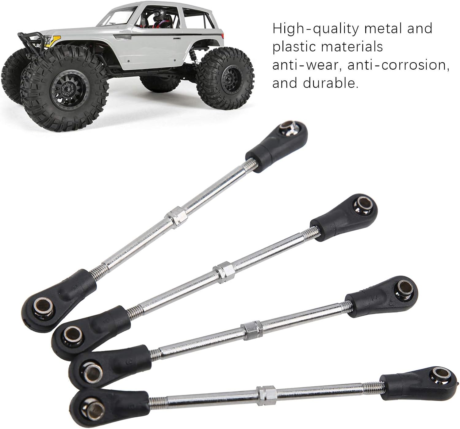 Facile da installare: l'asta dello sterzo per auto del telecomando è adatta per tutte le viti esagonali M3. È facile da installare e smontare e non aggiungerà ulteriori oneri. Intervallo di regolazione 83-92 mm: La tiranteria dello sterzo regolabile RC con intervallo di regolazione 83-92 mm / 3,3-3,6 pollici, in grado di soddisfare le diverse esigenze. Abbinamento : l'asta dello sterzo RC adotta design ragionevole, che è modello RC per le tue parti originali. Adatto per: l'asta di collegamento dello sterzo RC è pratico accessorio RC, adatto per auto telecomandate Trunk / Racing Truck 1/10. Qualità Premium: questo tirante dello sterzo completamente nuovo al è realizzato con materiali metallici di alta qualità, antiusura, anticorrosione e durevoli. Non è facile da rompere, ha una qualità affidabile e una lunga durata.
