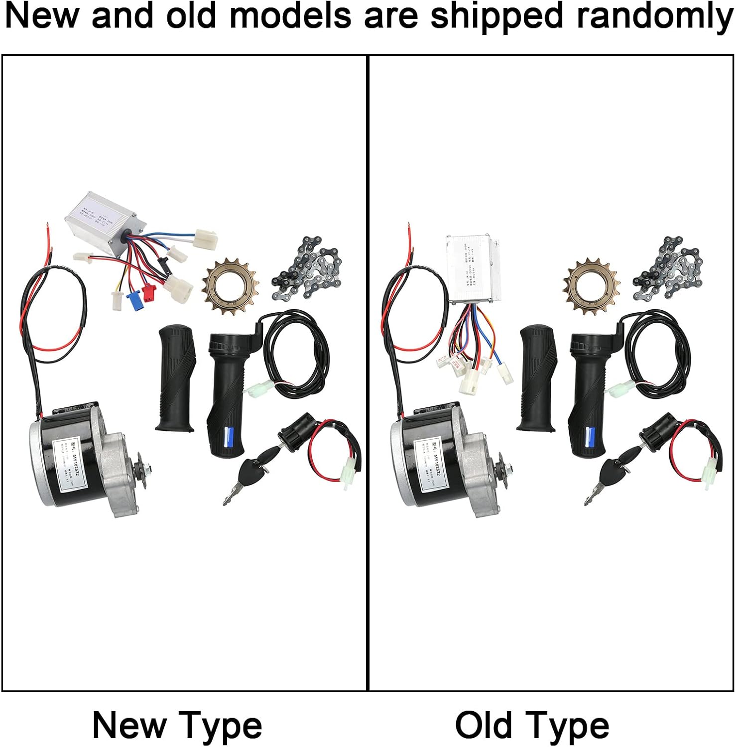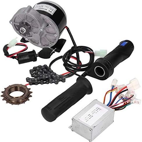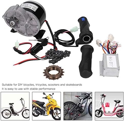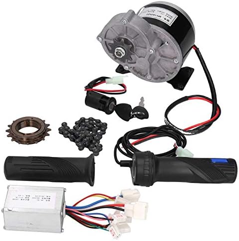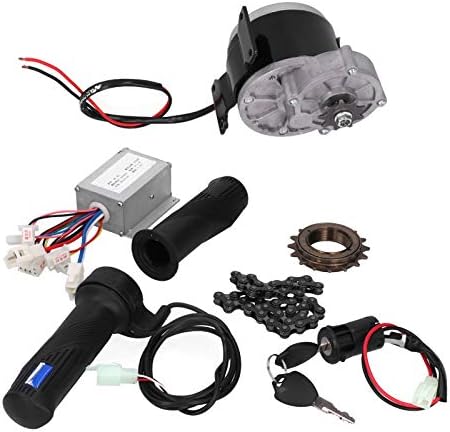 Ottimo accessorio: il kit controller spazzolato 24V 250W è molto pratico, adatto per biciclette fai-da-te, tricicli, scooter e skateboard. Kit completo: il kit del controller del motore con spazzole include 1 x motore, 1 x controller per spazzole, 1 catena a maglie da 38, 1 da 16 denti, 1 serratura elettrica, 2 chiavi e 2 manubri. Specifiche del prodotto: Tipo di articolo: kit controller motore; materiale: metallo; peso: ca. 3210,0 g/113,2 once; modello: MY1025Z2; tensione nominale: 24V; potenza nominale: 250 W; velocità nominale: 2950 RPM; rapporto di trasmissione: 8 : 9. Facile e comodo da usare: il controller del motore con spazzole per scooter è facile da usare con prestazioni stabili, che è buon sostituto per quello vecchio o Guscio in alluminio premium: il controller del motore da 24 V 250 W con guscio in lega di alluminio, che può proteggere il circuito interno e ha una buona dissipazione del calore, che può evitare efficacemente il sovraccarico termico e quindi danneggiare il dispositivo.