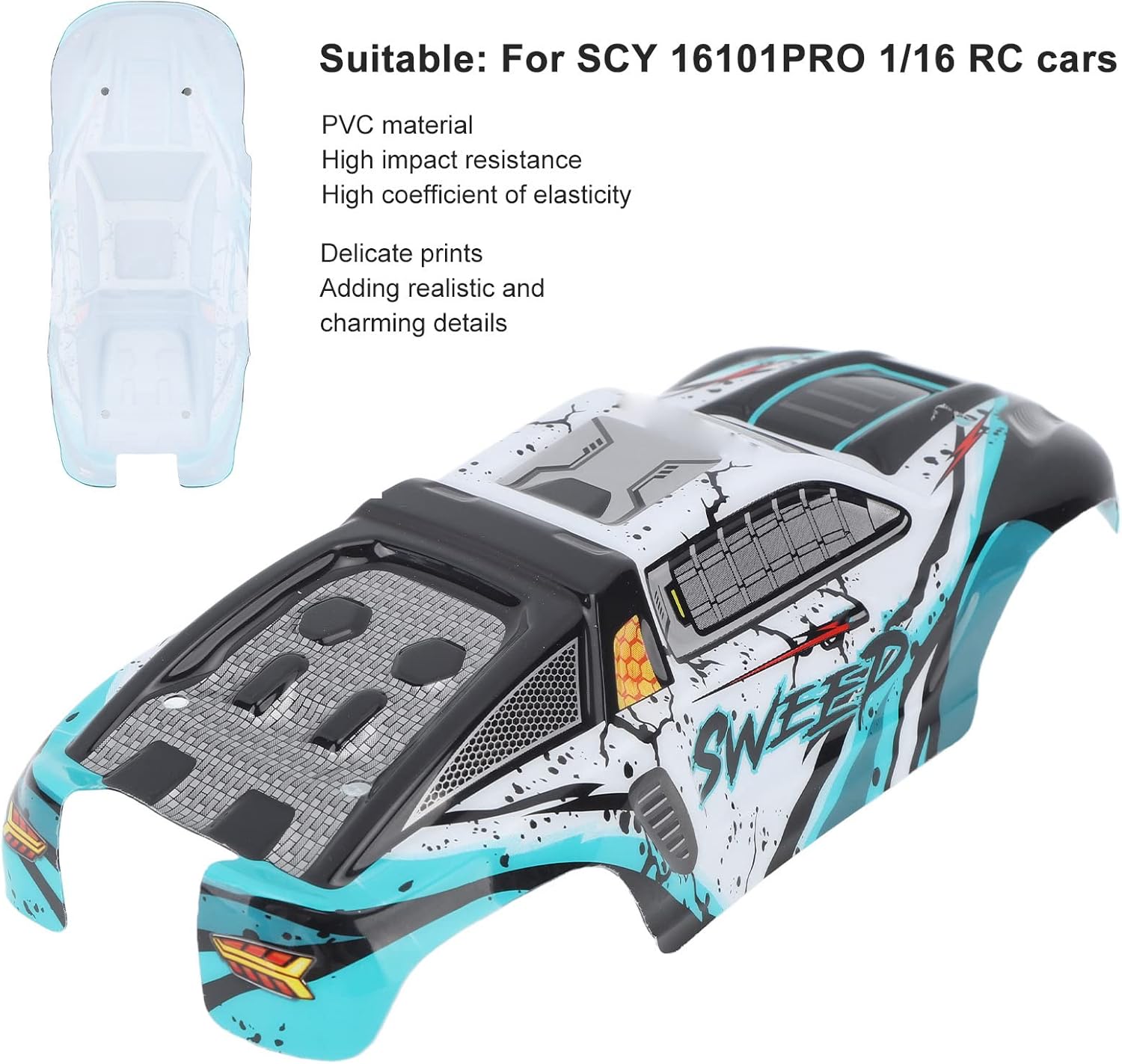 [Materiale in PVC durevole] Realizzata in PVC con forte resistenza agli urti ed elevata elasticità, questa scocca della carrozzeria garantisce una lunga durata e praticità, pur essendo rispettosa 'ambiente. [Progettato per Scy 16101pro] Questa carrozzeria per auto RC è realizzata su misura per l'auto telecomandata scy 16101pro 1/16, vantando pregevole fattura e un aspetto straordinario. [Dettaglio squisito] La scocca 'auto telecomandata presenta stampe alla moda e dettagli intricati che conferiscono realismo e fascino alla tua auto RC. [Facile da sostituire] L'installazione e la rimozione sono un gioco da ragazzi, consentendo di sostituire facilmente parti vecchie o danneggiate per maggiore resistenza e longevità. [Vestibilità perfetta] Con forma e dimensioni precise, questa carrozzeria si adatta perfettamente, offrendo un nuovo look con lavorazione squisita e una sensazione confortevole.