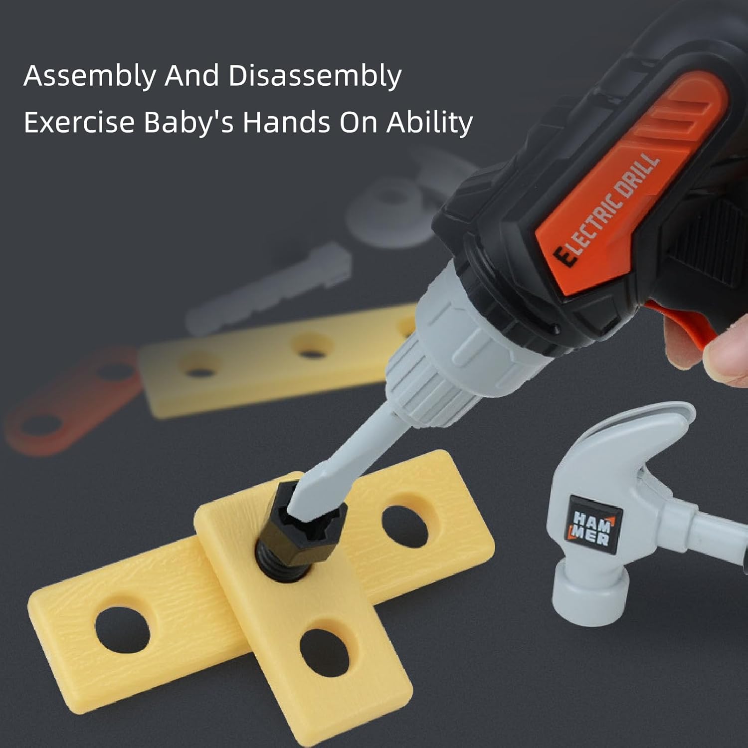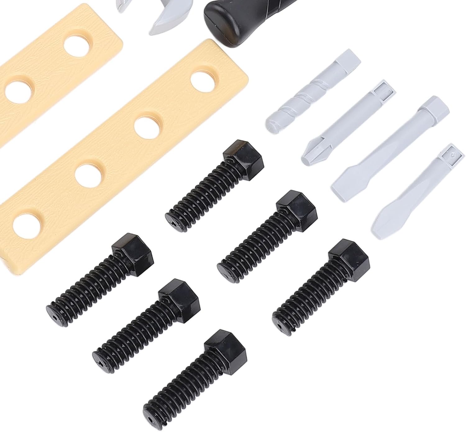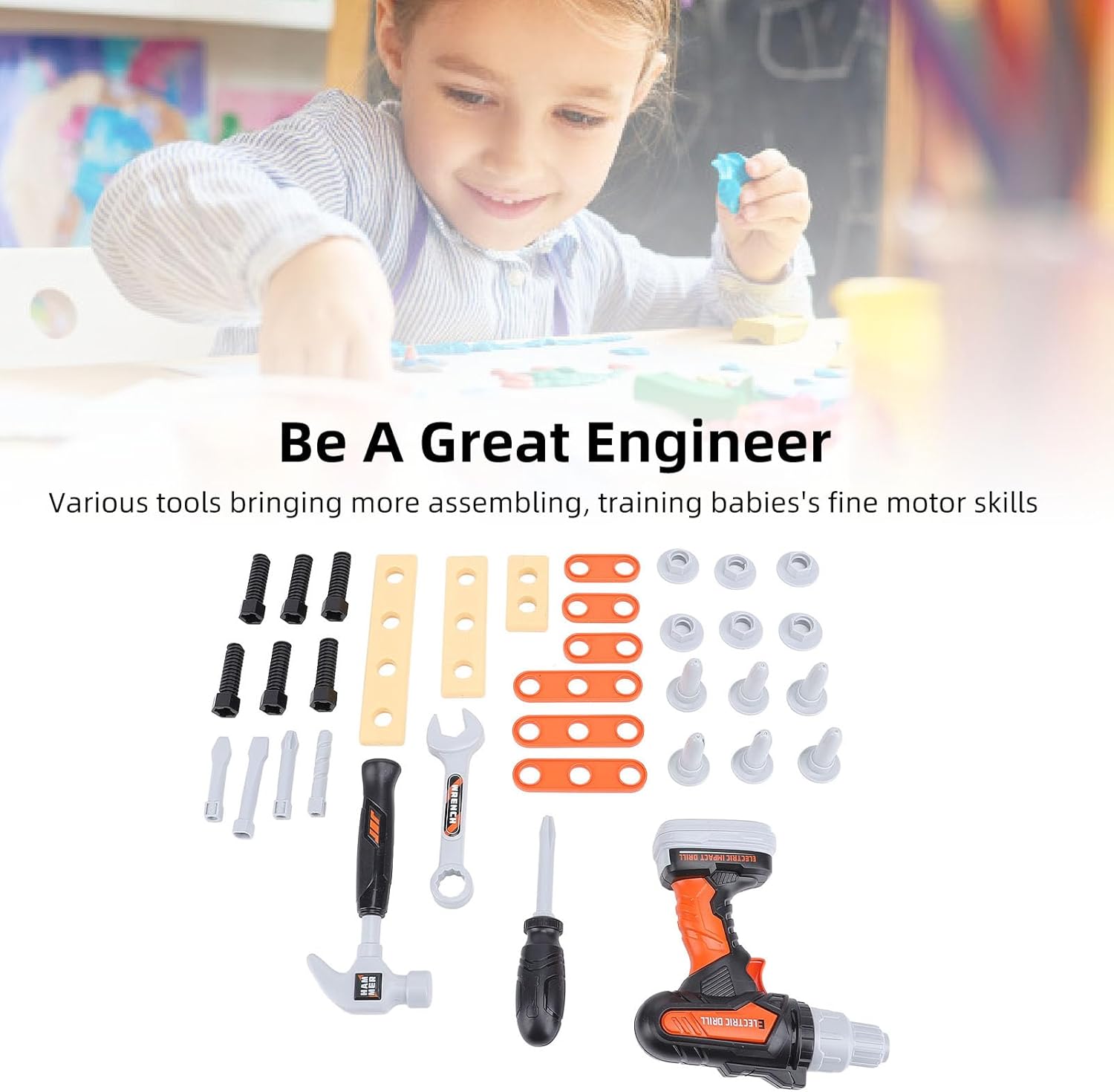 [Esperienza di legame familiare] Ideale per migliorare le relazioni genitore-figlio e apprendere abilità pratiche attraverso attività di gioco divertenti ed educative. [Varietà di strumenti inclusi] Dotato di trapano elettrico, chiave inglese, cacciavite e altro ancora per un'esperienza di gioco diversificata e arricchente. [Ispira l'immaginazione e la creatività] Scatena la creatività nei bambini mentre affina le loro capacità operative con strumenti ingegneristici realistici. [Design robusto e sicuro] Realizzato appositamente per i bambini con standard di sicurezza di prim'ordine. [Materiale di qualità] Costruiti con plastica di alta qualità, questi strumenti sono robusti, sicuri e resistenti ai danni, consentendo un gioco di lunga durata.