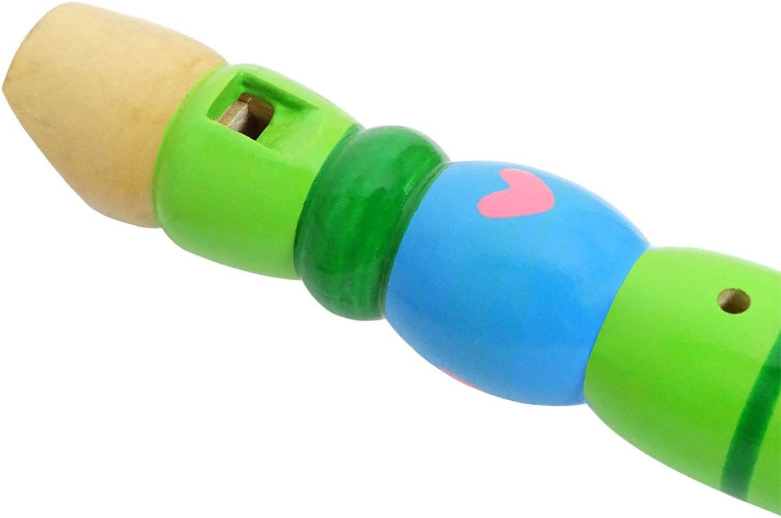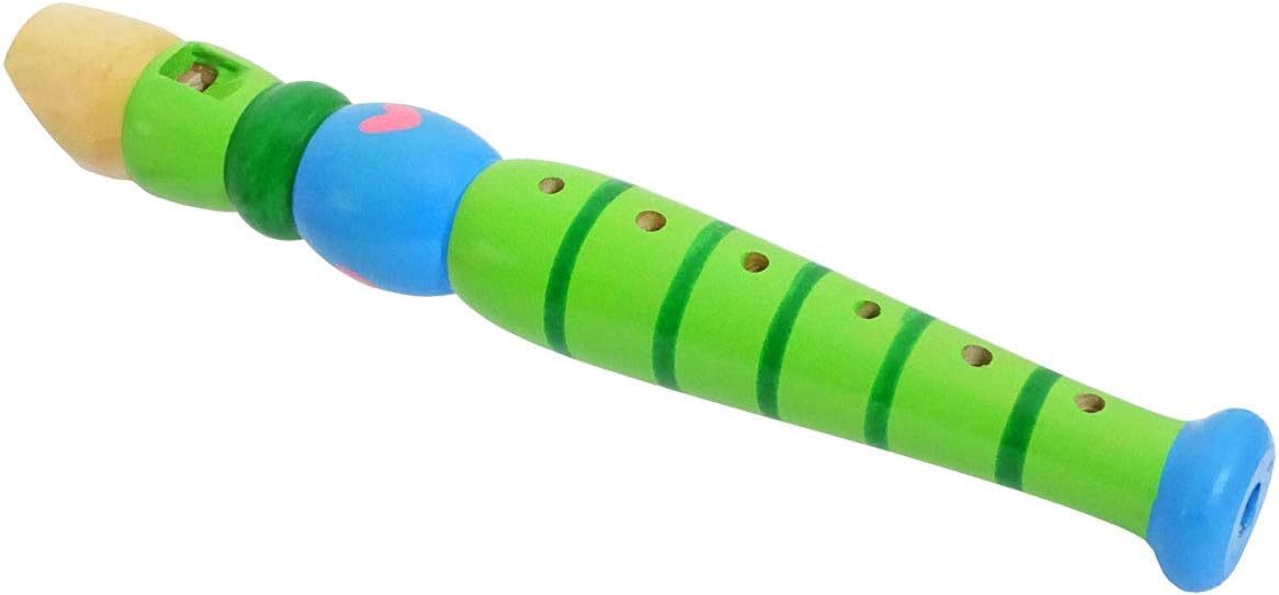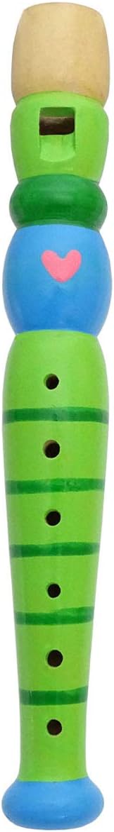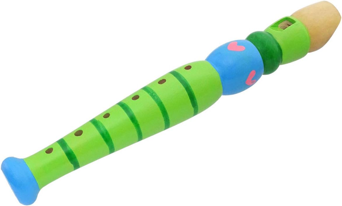 Piccolo flauto di legno come giocattolo musicale e regalo creativo. 6 fori per la presa. Design adatto ai bambini, realizzato in legno. Conforme alla norma europea EN71 sulle norme di sicurezza sui giocattoli. Colore: verde.