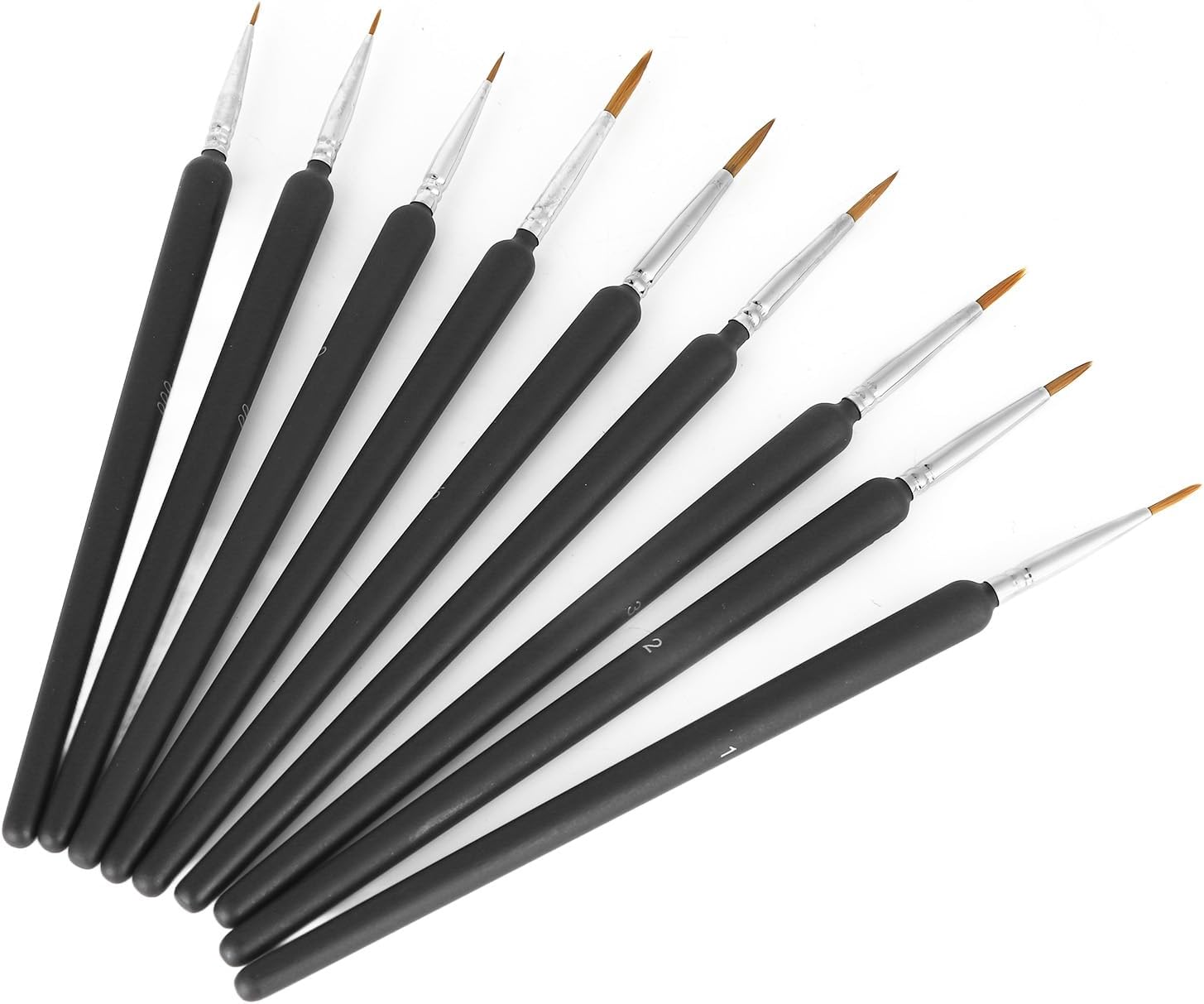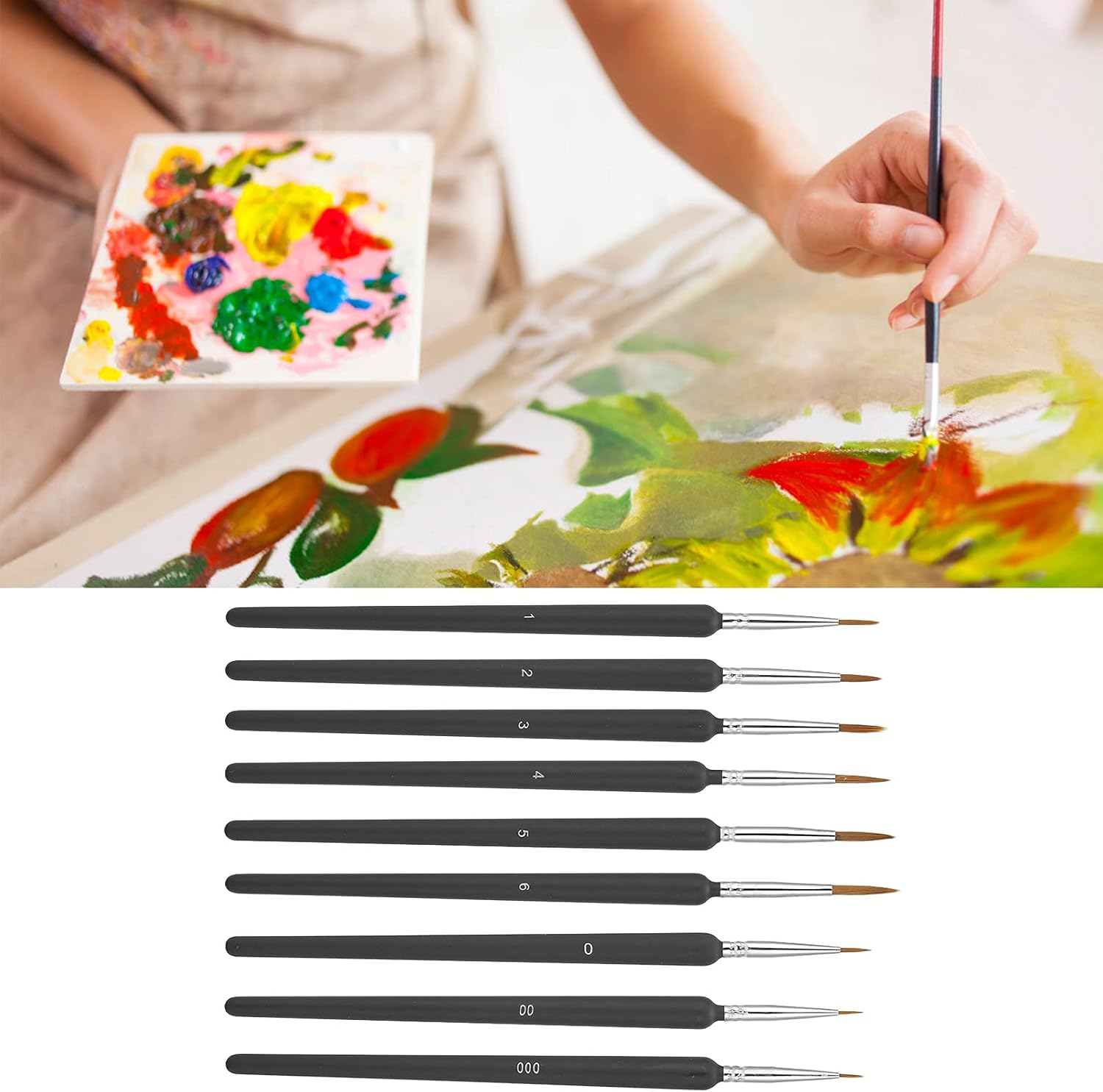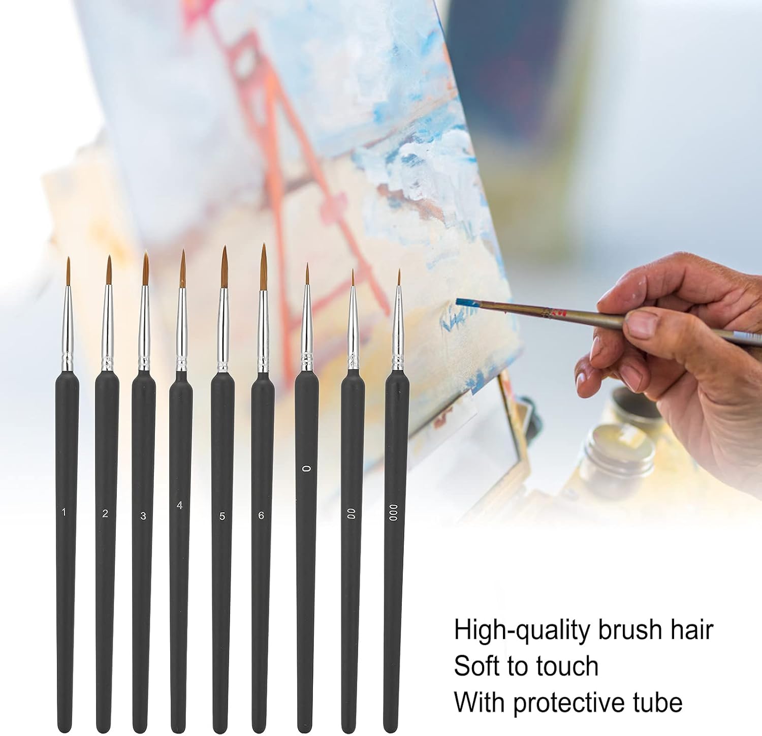 Il manico è realizzato in plastica ed è progettato come una forma cilindrica che è facile da afferrare, riducendo l'affaticamento della mano. Le setole di alta qualità sono morbide al tatto e non cadono dopo un uso ripetuto. Con un tubo protettivo, può mantenere la forma più comoda dopo l'uso e la pulizia. Questo set offre piccoli pennelli per ogni fase di tutti i tuoi progetti di pittura artistica. Puoi usarlo da solo e può anche essere squisito per la tua famiglia e gli amici.