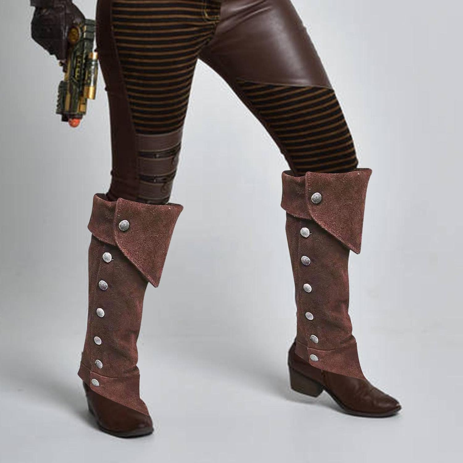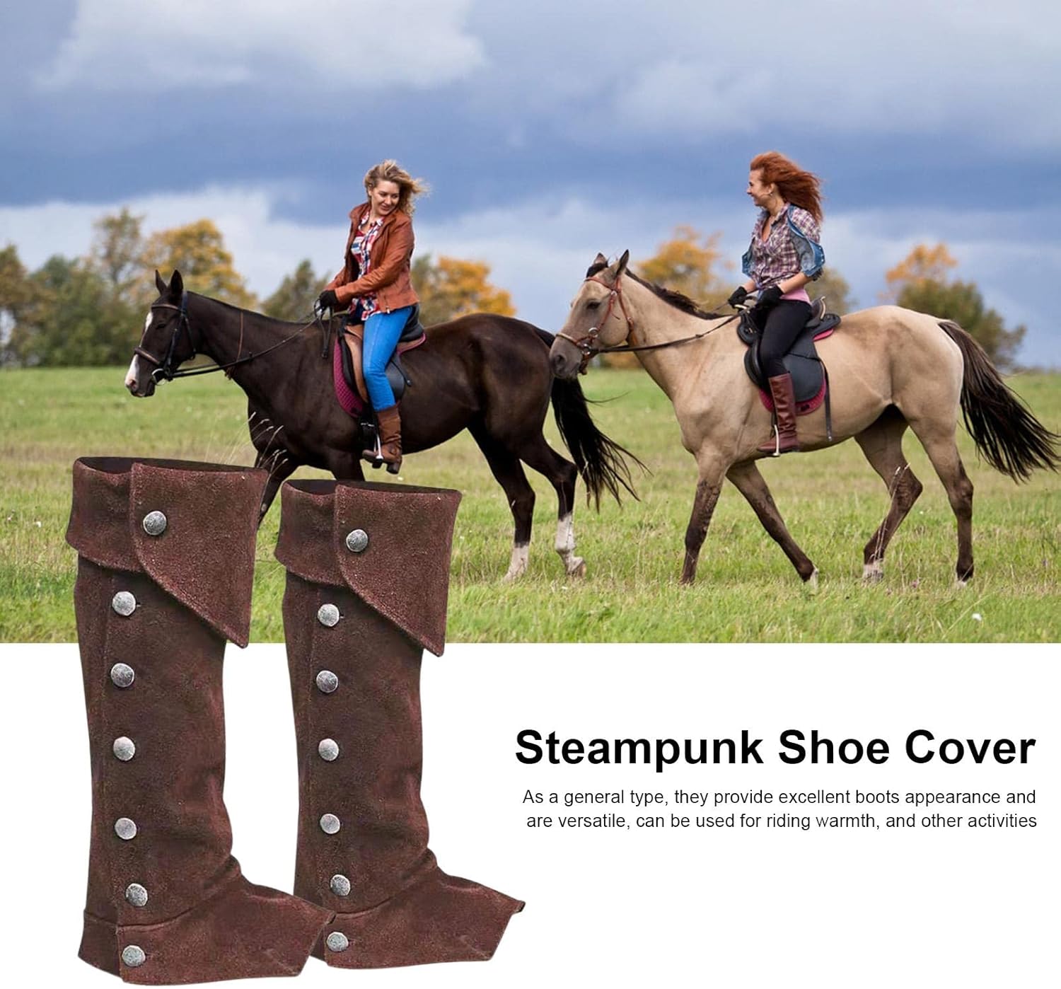 Design retrò: il copriscarpe Steampunk può abbinarsi a qualsiasi abbigliamento retrò per fornirti tutto ciò di cui hai bisogno per un perfetto aspetto in stile medievale rinascimentale. Dimensioni generali: tutte le taglie. Il copriscarpe offre una larghezza del polpaccio regolabile per adattarsi a tutte le persone, non importa se strette larghe. Comodo da pulire: lavare a mano i copriscarpe steampunk in acqua fredda. Utilizzando un detergente delicato, non danneggia il copriscarpe e può essere utilizzato continuamente. Per ogni occasione: è adatto per varie occasioni, tra cui giochi di ruolo, feste in maschera, spettacoli teatrali, rievocazioni storiche, ecc. È un eccellente accessorio di protezione per attività all'aperto come caccia e tiro. Durevole e sicuro: il copriscarpe Steampunk è progettato per essere indossato su scarpe stivali, realizzato in pelle PU di alta qualità. Può mantenere le gambe dei pantaloni pulite e ordinate quando si va a cavallo in gita.
