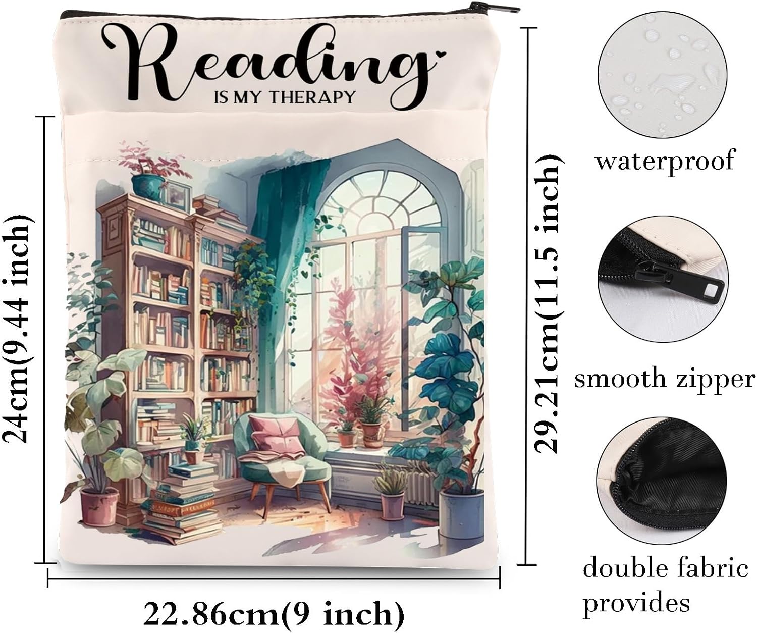Materiale: la copertina del libro è realizzata in tela lavabile di alta qualità ed è facilmente lavabile a mano per un uso ripetuto. Il vantaggio di questo tessuto è che è impermeabile e durevole, mentre utilizziamo una cerniera liscia di alta qualità in modo da non doverti preoccupare che i tuoi libri o la cancelleria cadano durante il viaggio. Tasca principale: la tasca grande misura 22,86 x 29,21 cm e si adatta alla maggior parte dei libri di testo e quaderni, tascabili standard, tascabili sciolti e normali copertine rigide, nonché al tablet. Tasca frontale aggiuntiva: la tasca frontale misura 22,86 x 24,5 cm, renderà la custodia del tuo libro ancora più multifunzionale. Puoi usarlo per penna, occhiali, segnalibri, blocco note, cuffie o altri accessori. Multifunzione: perfetto per l'uso quotidiano come scuola, biblioteca, bar, caffetterie e gite del fine settimana. Le copertine proteggono il tuo libro da macchie, graffi e pieghe. Allo stesso tempo, può rendere le cose che porti più pulite e ordinate. Nel complesso, queste copertine di libri sono la scelta migliore per professionisti e studenti moderni. Regalo perfetto: questa custodia per libri è un'ottima scelta regalo. Ideale per proteggere i tuoi libri preferiti ovunque tu vada. Regalo perfetto per te, amante dei libri, lettore, topo di biblioteca, topo di biblioteca o qualcuno che ama leggere nella sua vita.
