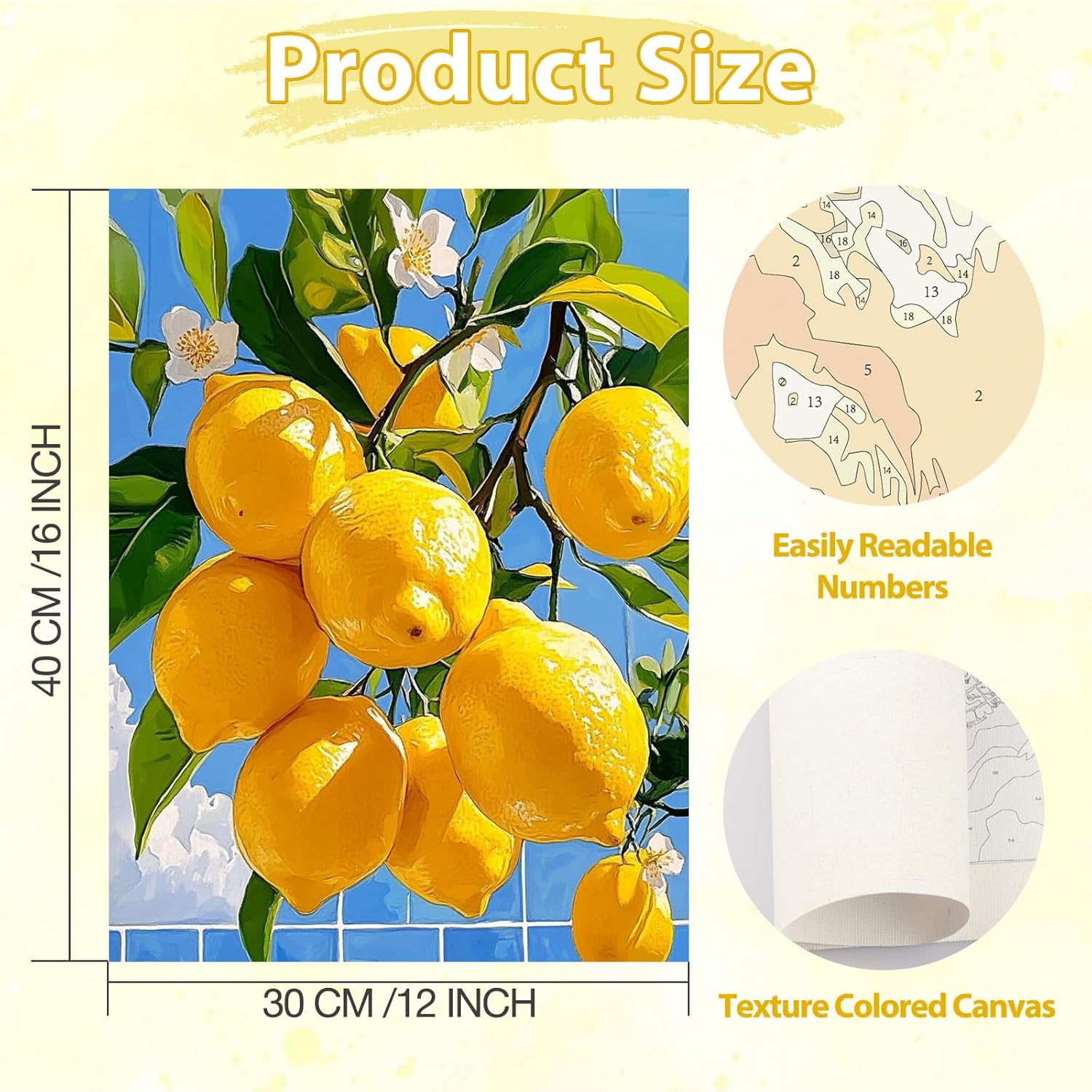 KEYIFA Albero Limone Dipingere con i Numeri per Adulti, Fiori Painting by Numbers Kit con Pennelli e Acrilico Pigmento, Fai da te Olio La Pittura di Numeri Kit, Decora la Casa 30x40cm
