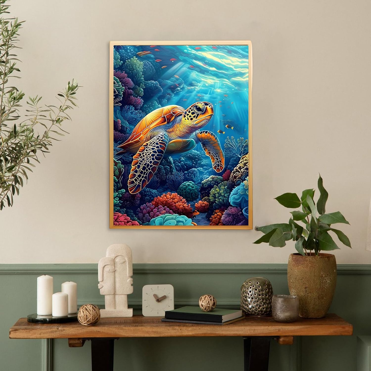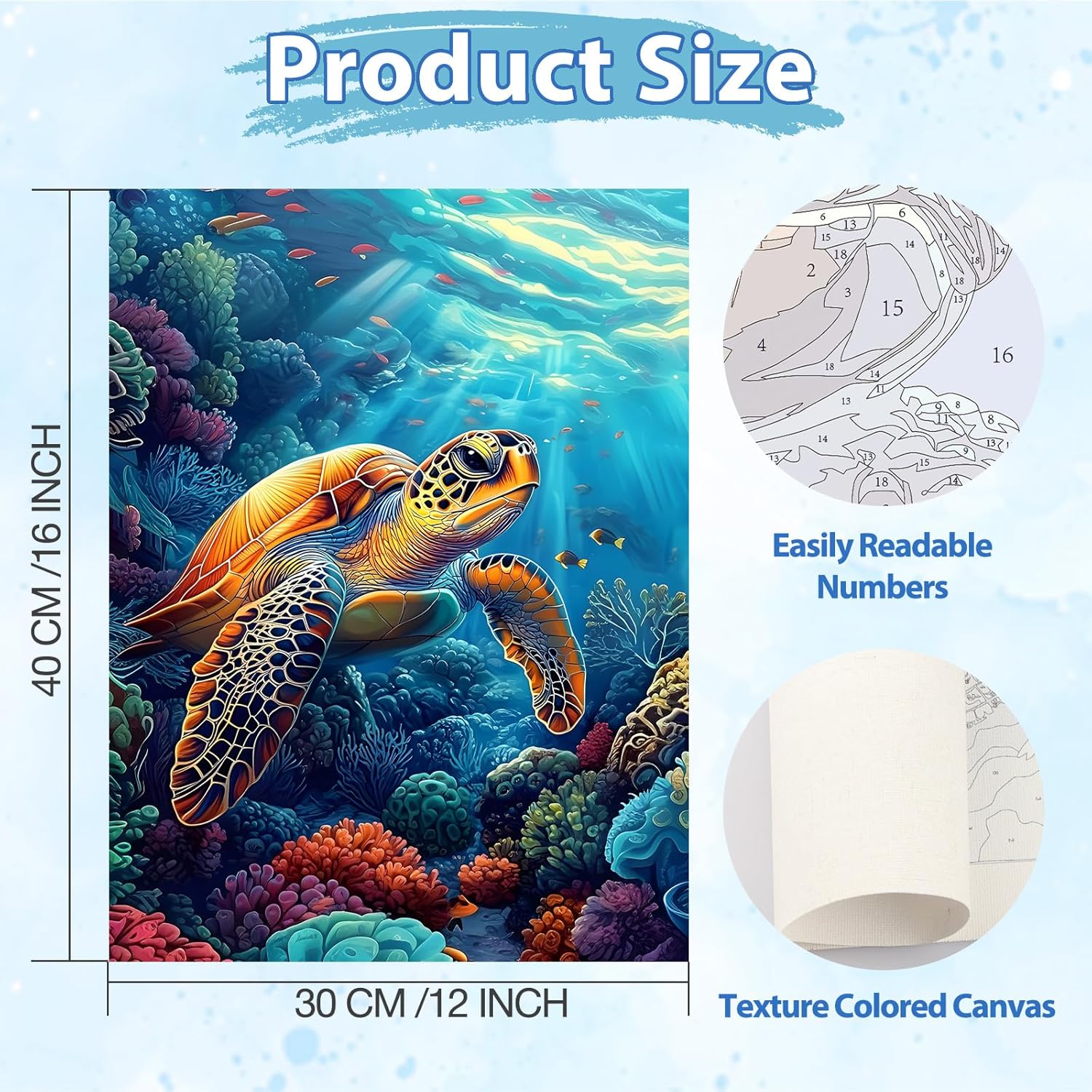 KEYIFA Tartaruga Dipingere con i Numeri per Adulti, Painting by Numbers Kit con Pennelli e Acrilico Pigmento, Fai da te Olio La Pittura di Numeri Kit, Decora la Casa 30x40cm