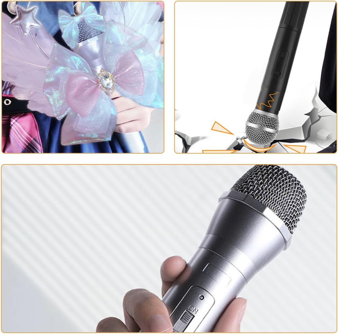 Microfono finto giocattolo: il microfono finto giocattolo è adatto per il gioco quotidiano, spettacoli teatrali, feste e altre scene, accessorio per microfono giocattolo Microfono finto: un microfono finto sembra proprio un microfono e può essere utilizzato come un fantastico accessorio da palcoscenico per modelli di accessori per microfono. Microfono di simulazione: aiuta i bambini a sviluppare la comunicazione e le capacità sociali incoraggiandoli a interagire con gli altri, fingendo un microfono da palcoscenico Microfono di simulazione - realizzato con materiale plastico, il microfono di scena è pratico e robusto, utilizzabile a lungo, riproduzione del microfono di scena Microfono finto da gioco: il microfono finto è leggero, ha dimensioni compatte e puoi portarlo ovunque, microfono finto.