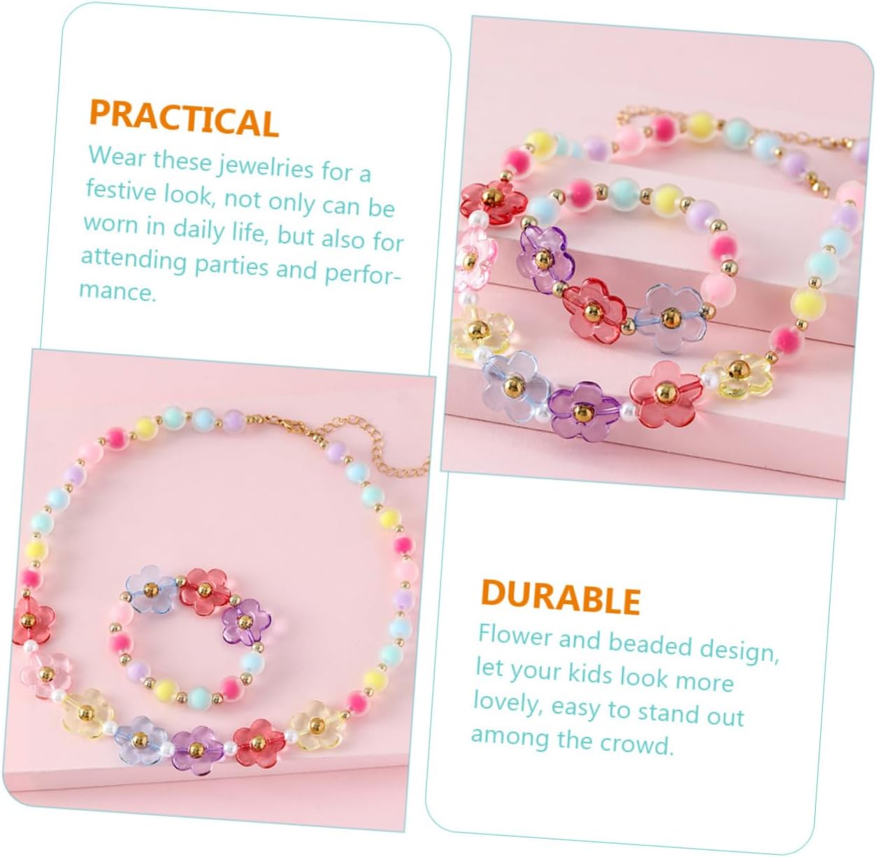 Il pacchetto include 1 x braccialetto 1 x collana Caratteristiche - Dimensioni: 45,00X0,80X0,80cm/17,68X0,31X0,31 pollici gioielli per ragazze. - Colore: Collana per bambine con colori assortiti. - Materiale: acrilico, braccialetto di perle per bambine. - Realizzata in materiale acrilico e perle, è leggera e può essere indossata tranquillamente anche bambini. - Design con perline e fiori, adorabile, adatto ai bambini da indossare durante le loro esibizioni sul palco o durante le esibizioni teatrali. - Colore delicato e dimensioni adatte, possono sicuramente aggiungere un tocco di tenerezza ai vostri bambini durante le esibizioni, i cosplay o semplicemente come collana da indossare tutti i giorni. - Questo braccialetto e questa collana sono sicuri, realizzati nei minimi dettagli e danno una piacevole sensazione al tatto. - La collana ha un design regolabile, è facile da indossare e da togliere e dona benessere ai tuoi bambini grazie al braccialetto per bambini. Informazioni sulle merci Braccialetto per bambini Con perline e design floreale, sono delicati e belli, perfetti per molte occasioni. Collana per bambini Con materiali in perle e acrilico, sicuri e per un lungo periodo di utilizzo. Collana di perline per bambini Questo braccialetto e collana per ragazze sono leggeri e possono essere abbinati a tutti i tipi di outfit, accessori favolosi e adorabili da indossare tutto l'anno