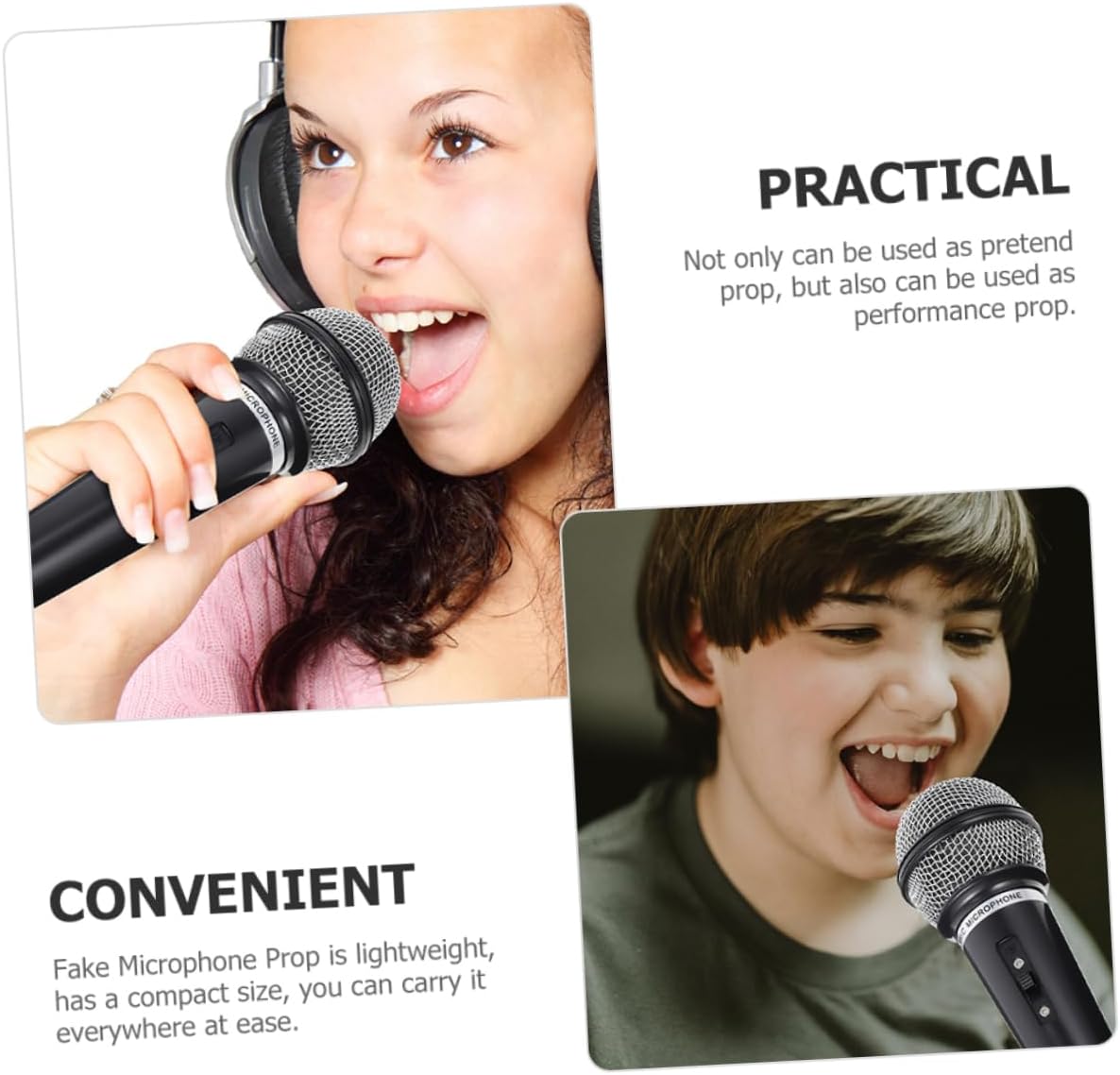 Giocattolo per feste: non solo può essere utilizzato come oggetto di scena per finta, ma può anche essere utilizzato come oggetto di scena per esibizioni, microfono per finta Microfono finto: a molte persone piace cantare, questo microfono finto è strumento di allenamento per superare la paura, microfono di scena Esperienza autentica: il design realistico consente ai di sentirsi come se stessero utilizzando un microfono, un accessorio per la modellazione del microfono, una simulazione del microfono per feste Versatile: può essere utilizzato per esibizioni di canto finto o come oggetto di scena per migliorare l'effetto generale, microfono di scena finto, gioco di finzione Supporto per microfono: realizzato con materiali sicuri e robusti, sicuro e pratico per un uso duraturo nel tempo, supporti per microfono