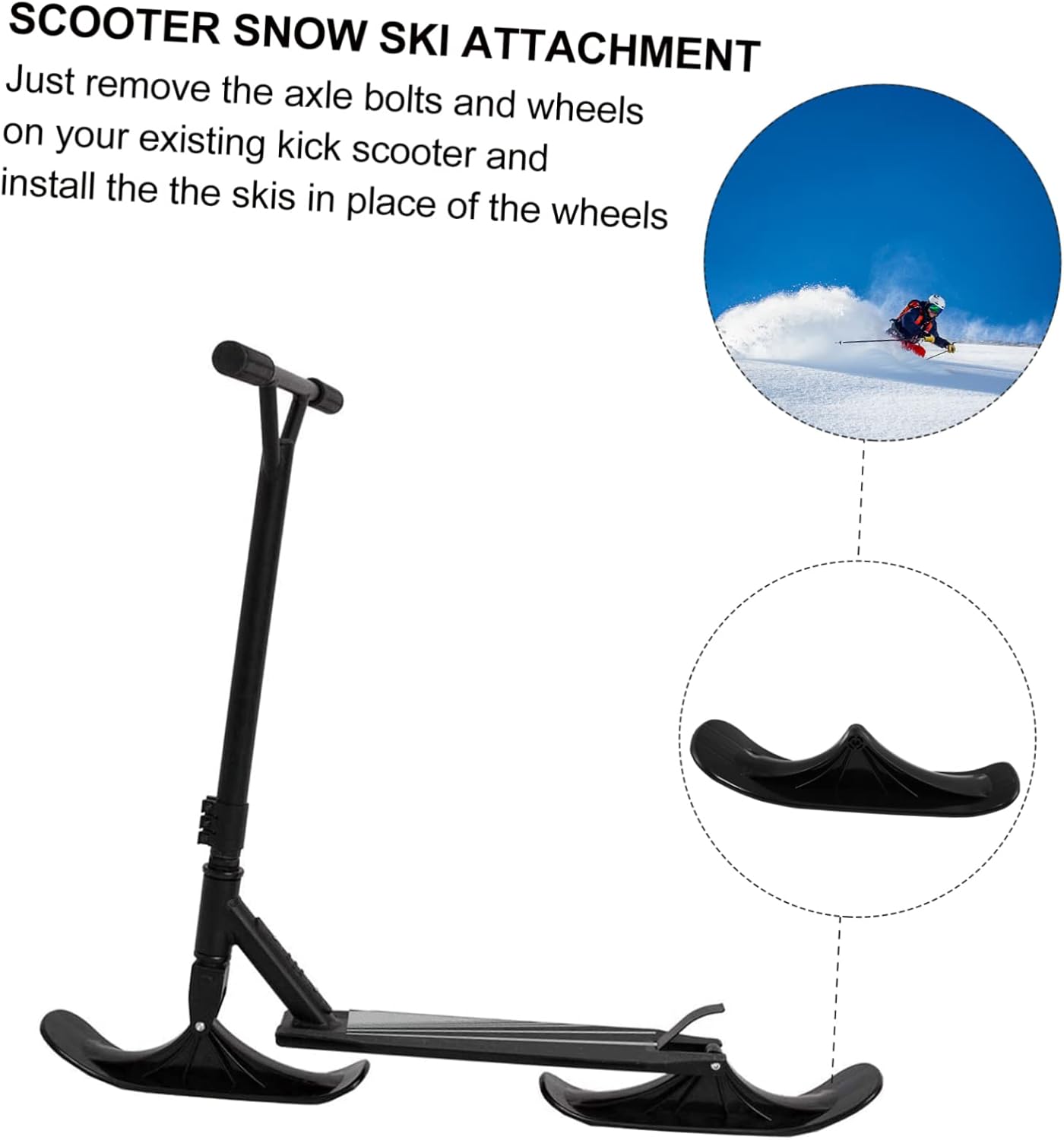 Parti per slitta da neve - l'attacco per sci consente una facile guida e scivolamento sulla neve in caso di neve, accessori per scooter da sci Doppio sci - realizzato in materiale, durevole e resistente all'usura per un uso a lungo termine, slitta per scooter da neve all'aperto Robusta slitta per scooter - il prodotto progettato in modo che tu possa goderti sci e scooter potenti e ad alte prestazioni Attacco per sci da neve Skateboard pieghevole a slitta - gli snowboard sono realizzati in plastica resistente alle intemperie e durevole in modo che i tuoi bambini piccoli possano provare il loro attacco per sci da neve per scooter Attacco per sci da neve per scooter - con il prodotto che trasforma il tuo scooter preferito in uno scooter da neve, parti per slitta da neve