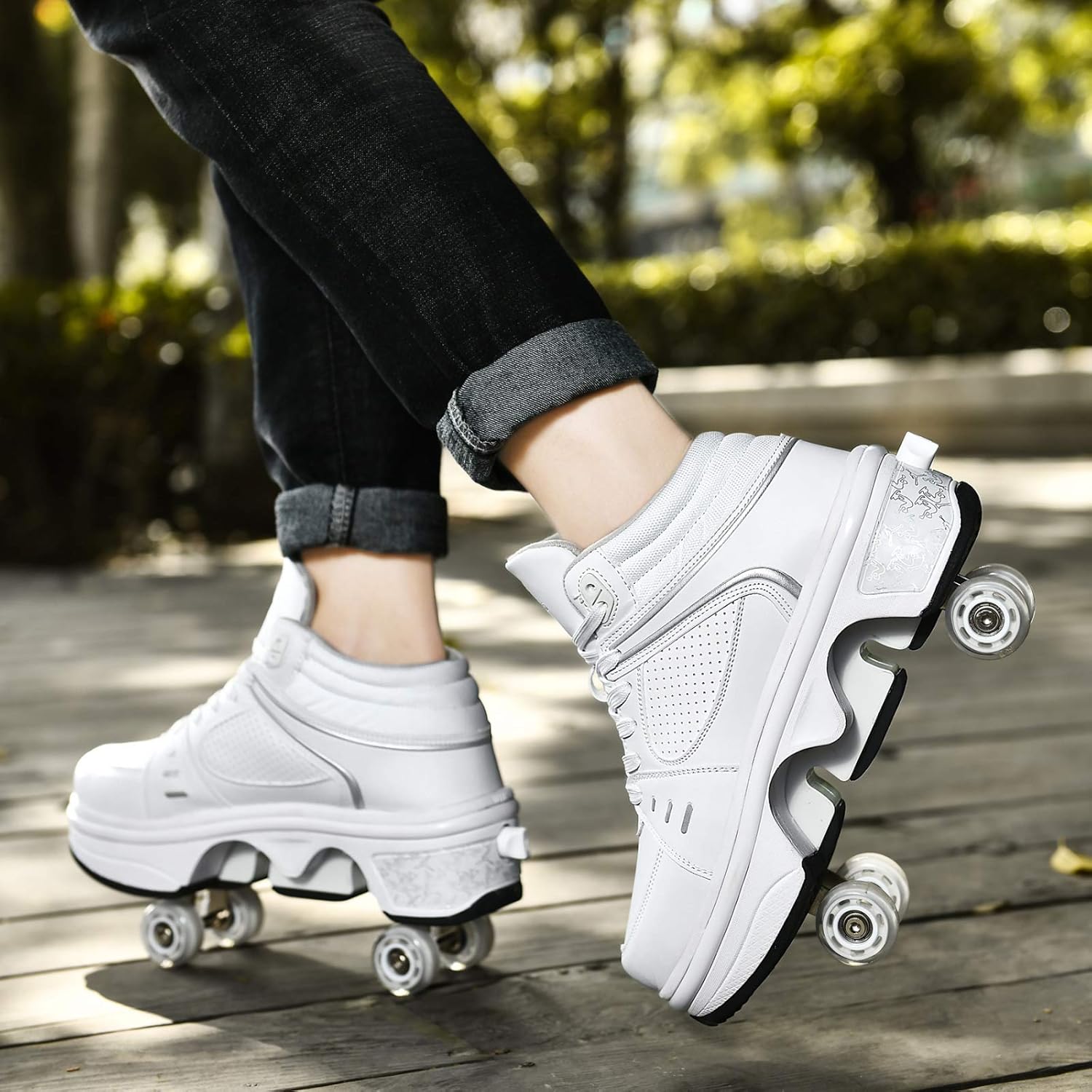 ★ Pattini a rotelle 2 in 1: i pattini multiuso regolabili sono diversi dai pattini a rotelle tradizionali sul mercato. Le ruote nascoste possono essere nascoste come normali scarpe da ginnastica, quindi puoi regolare i pattini a rotelle, che non solo possono pattinare ma anche correre. ★ Design luminoso unico: i nostri pattini in linea sono diversi dalle altre scarpe, 7 LED a colori disponibili e USB ricaricabile, la porta di ricarica USB e l'interruttore sono nascosti all'interno della scarpa. Sembra bello, vero? ★ Deform Wheel Roller Shoes materiale: i pattini a rotelle regolabili multifunzionali sono realizzati in microfibra, suola in gomma ed EVA. Non dobbiamo solo prestare attenzione alla capacità portante della ruota, ma anche prestare attenzione alla selezione del materiale superiore. ★ Design unico del pulsante invisibile: c'è un pulsante sul retro della scarpa, premilo e la ruota si aprirà. Tenere premuto il pulsante per spingere il rullo nella piastra inferiore e rilasciarlo e la ruota si spegnerà per impedire l'apertura accidentale:. ★ Regali speciali: le pulegge regolabili multifunzionali sono adatte per amici di tutte le età e sport unisex. Le scarpe da pattinaggio sono anche uno degli sport per il tempo libero più tradizionali, e puoi giocare con i tuoi amici o bambini nei fine settimana o regalarle come regalo di Natale.