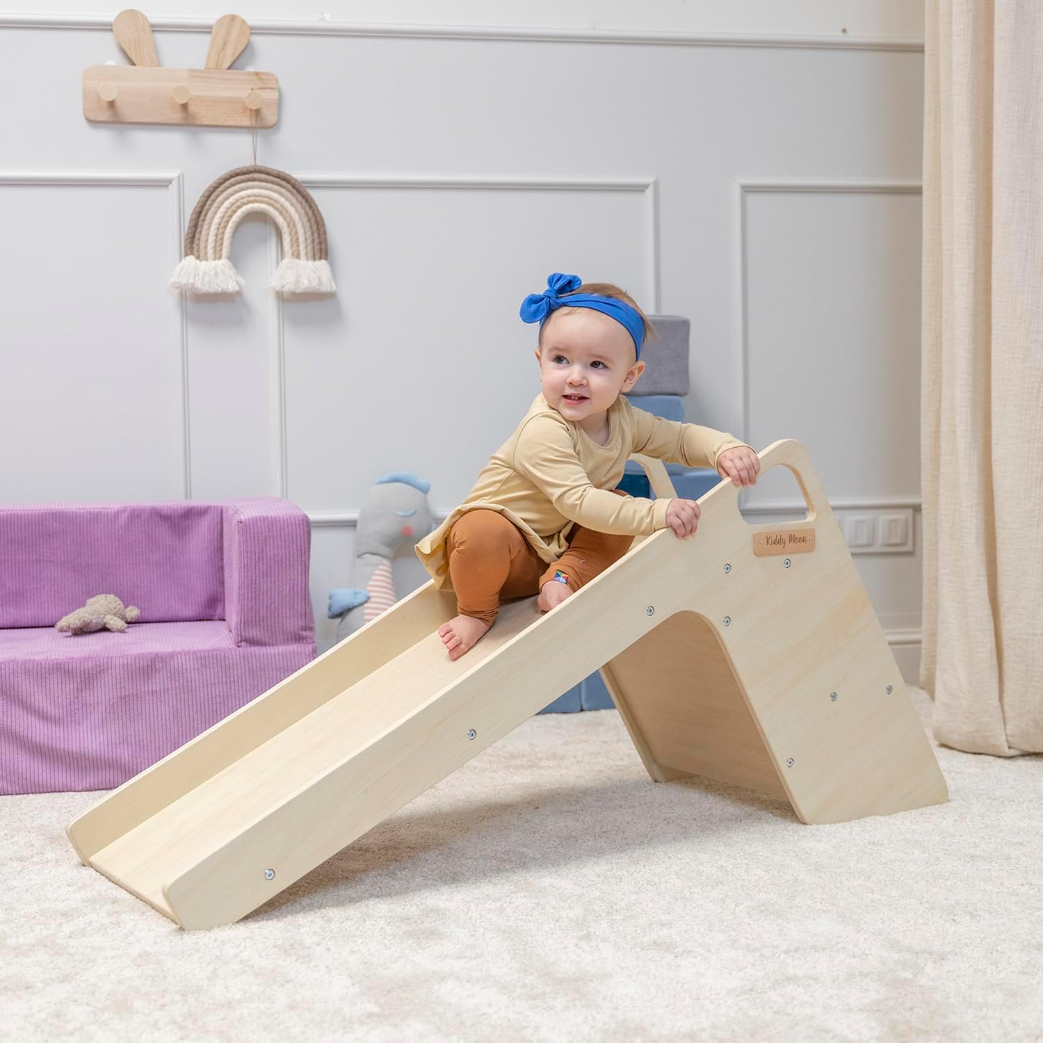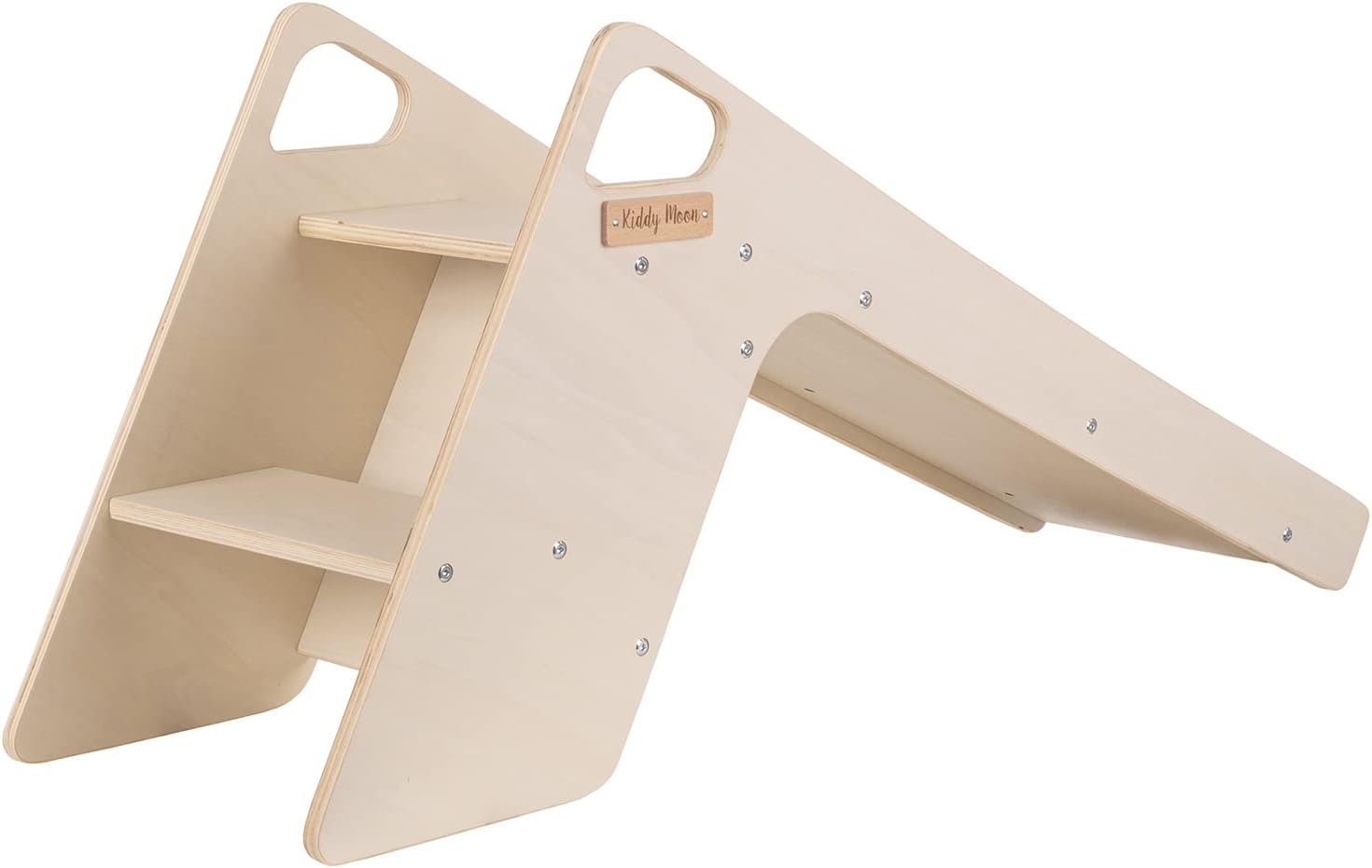 Grande - Adatto con piscina di palline KiddyMoon Il seggiolone e lo scivolo in legno per bambini- 2 in 1 Facile da assemblare. La struttura bassa garantisce un gioco sicuro Prodotto fatto di materiali certificati e sicuri per i più piccoli Lo scivolo può essere usato anche con la piscina secca con palline