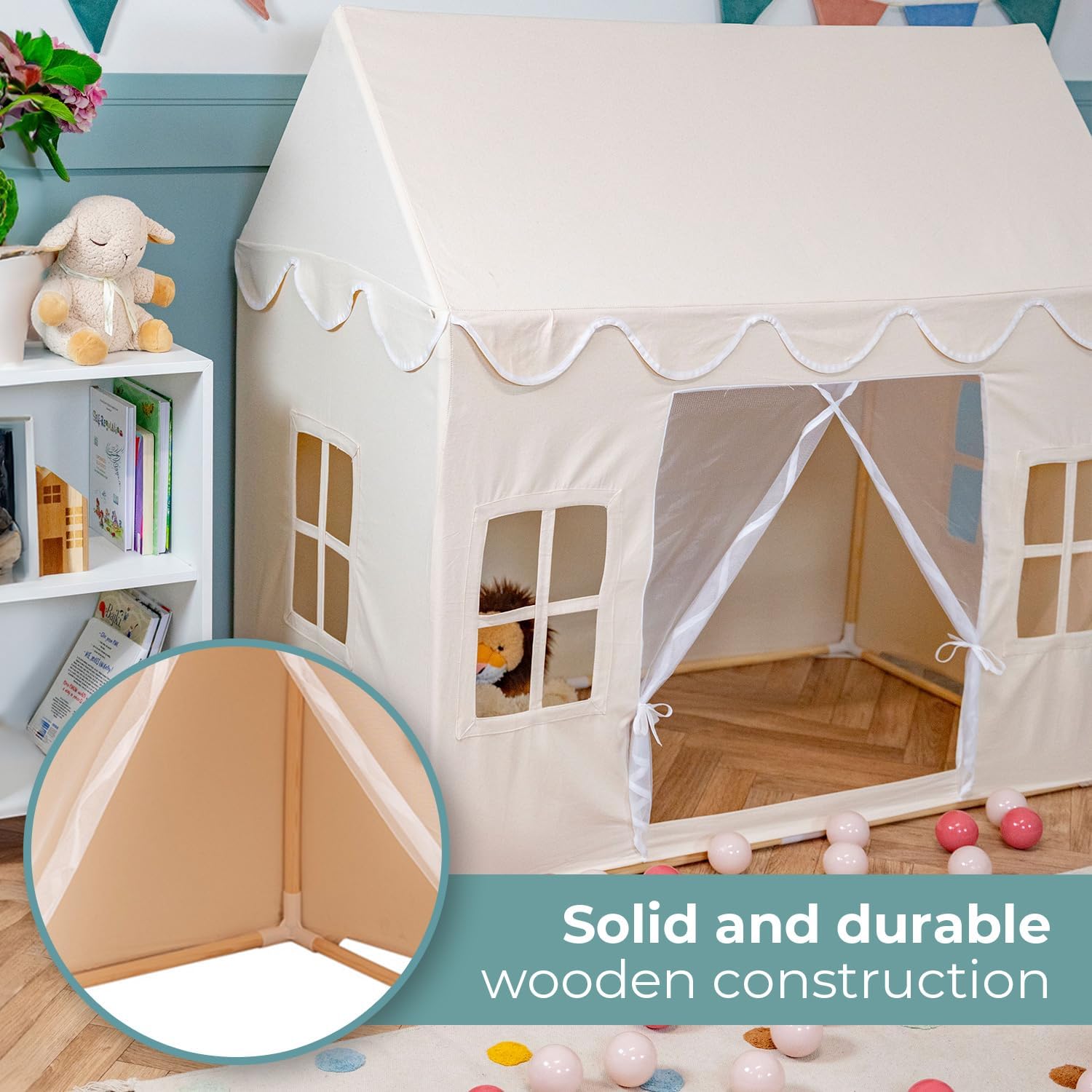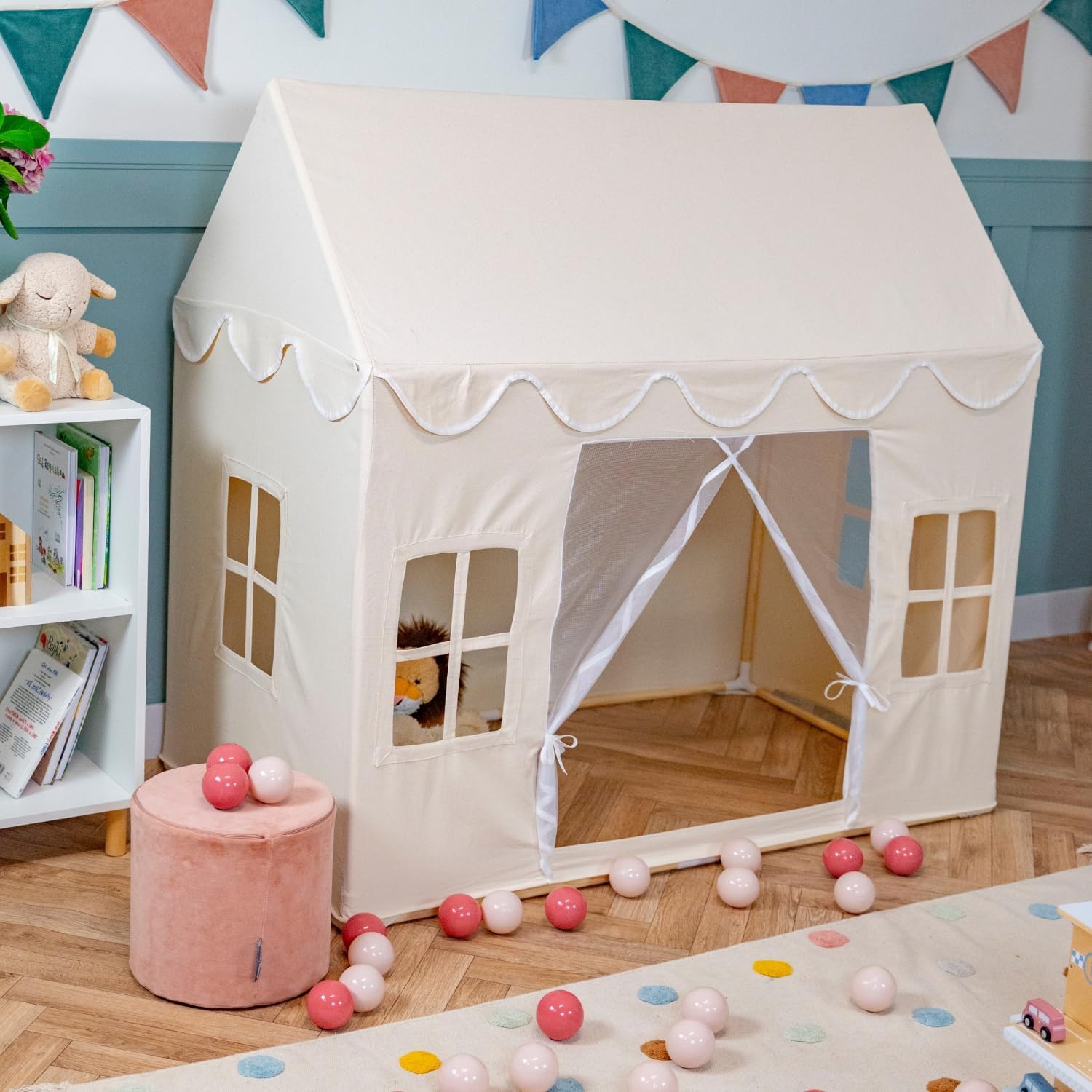 [Spazio Creativo E Divertente]: La casetta KiddyMoon offre un ambiente confortevole e stimolante dove i bambini possono sviluppare la loro immaginazione. Perfetta per creare un rifugio personale dove giocare, leggere o immaginare nuove avventure. [Facile Da Montare E Riporre]: Grazie alla sua struttura pieghevole, la casetta si monta e si smonta in pochi minuti. Una volta terminato il gioco, può essere facilmente riposta senza occupare troppo spazio, rendendola ideale per ogni casa. [Materiale Traspirante E Resistente]: Realizzata in tessuto di cotone naturale, la casetta garantisce un ambiente di gioco sano e sicuro. Il materiale è traspirante e resistente, assicurando un utilizzo duraturo sia all'interno che all'esterno, come in giardino o sul terrazzo. [Adatta Per Interni Ed Esterni]: Con il suo design elegante e neutro, la casetta si adatta perfettamente a qualsiasi ambiente. Può essere utilizzata sia in casa che all’aperto, offrendo uno spazio versatile per il gioco in ogni stagione. [Stimola La Creatività E L'Immaginazione]: Questa casetta è perfetta per i bambini che amano inventare nuovi giochi. Può trasformarsi in un castello, una base segreta o un negozio, stimolando la creatività e offrendo ore di divertimento senza fine.