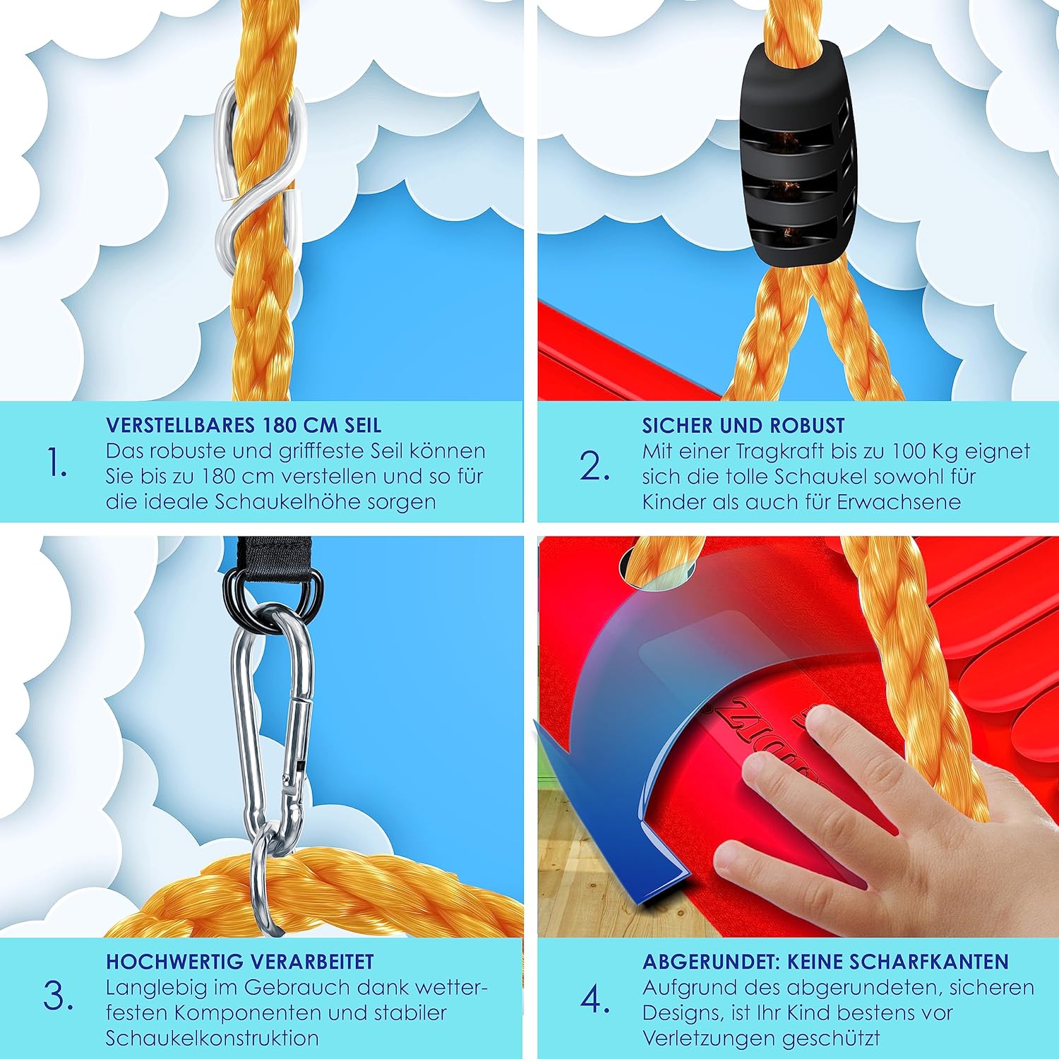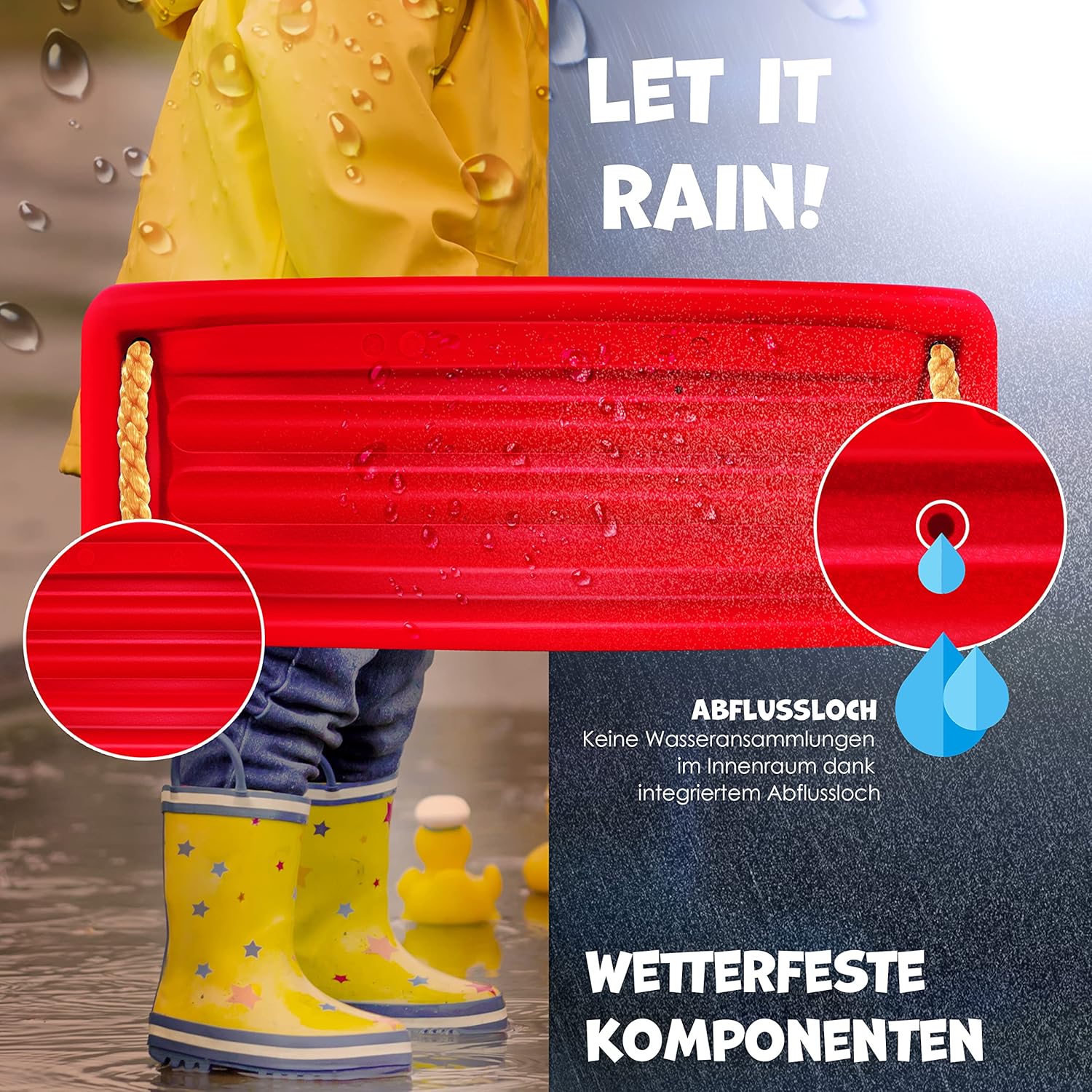 Il nostro dondolo è un fantastico giocattolo che offre ai bambini ore di divertimento in giardino o nella cameretta dei bambini. Inoltre, l'altalena per bambini è ergonomica per offrire il comfort ideale, che garantisce ai bambini un'esperienza indimenticabile. Il sedile ha una superficie 3D con struttura intelligente che offre al bambino una presa ottimale e impedisce lo scivolamento. Facile da usare: inoltre l'altalena per bambini è regolabile in altezza, in modo che i bambini piccoli e grandi possano utilizzare l'altalena. La corda robusta e maneggevole può essere regolata fino a 180 cm per raggiungere un'altezza adeguata. La regolazione in altezza consente anche agli adulti di utilizzare l'altalena, il che offre un ottimo modo per giocare insieme al bambino. Facile da usare. Approfittate dei materiali di alta qualità per garantire che sia durevole e resistente. Il sedile, la corda e gli anelli dell'altalena sono resistenti alle intemperie e durevoli per consentire un uso a lungo termine. La pulizia è anche semplice e dispone di un foro di scarico integrato per evitare l'accumulo di acqua. Resistente: il dondolo da giardino è certificato per una portata di 100 kg, il che significa che sia bambini che adulti possono usarlo in modo sicuro. Per una maggiore sicurezza, il sedile è arrotondato per evitare lesioni da spigoli vivi. L'età consigliata per l'uso del dondolo è di 1-12 anni. Tutti i principali standard di sicurezza come ECE R44/04 e TÜV sono naturalmente soddisfatti per garantire la sicurezza dei bambini. Design elegante: l'altalena offre anche un'attività rilassante e divertente all'aria aperta, che è particolarmente importante per i bambini. In un momento in cui molti bambini trascorrono troppo tempo davanti allo schermo, l'altalena per bambini offre la possibilità di attirare i bambini lontano dalla tecnologia e farli diventare attivi all'aperto. Il dondolo da giardino non è solo un ottimo giocattolo per i bambini, ma promuove anche le capacità motorie e sensoriali.