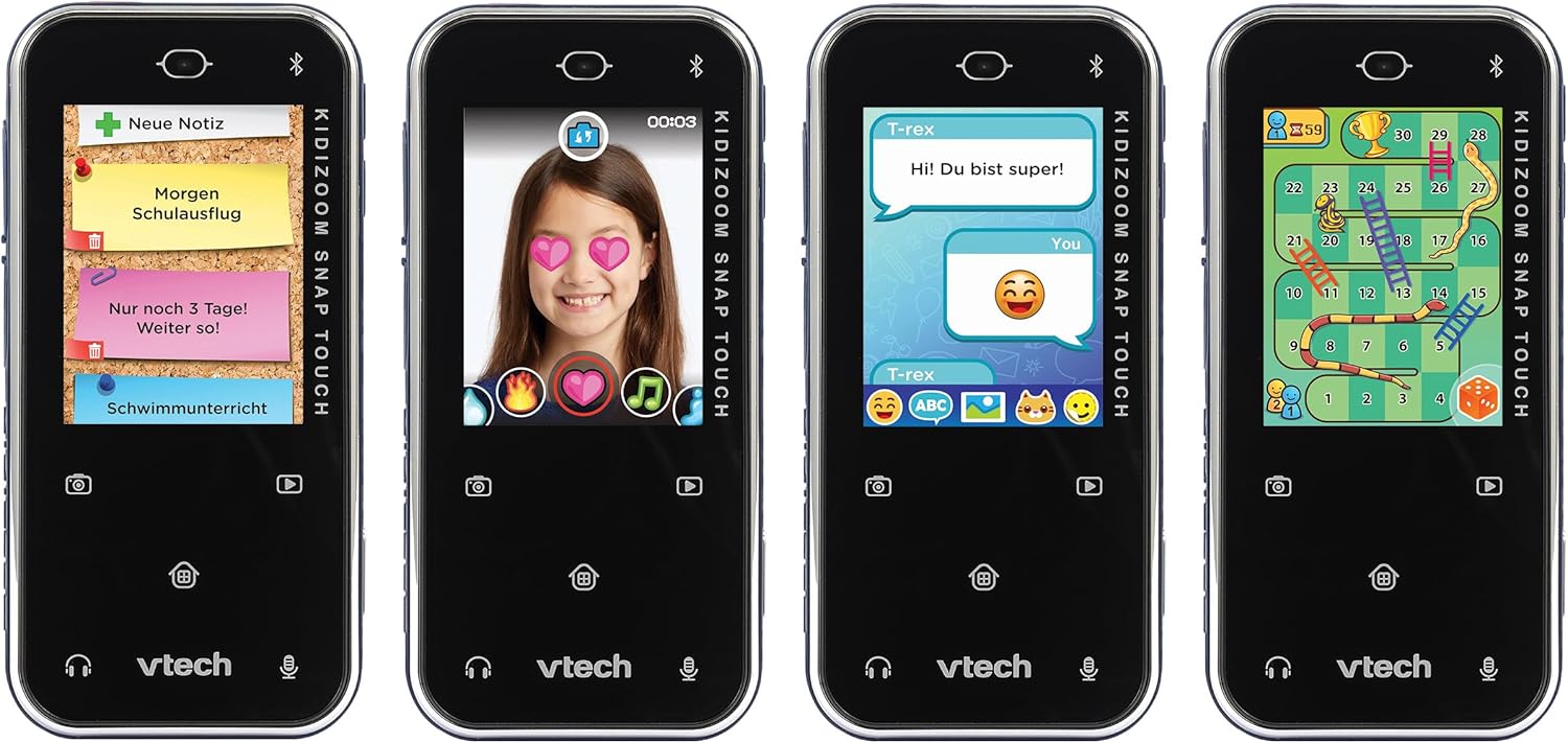 Ora in bundle insieme alla borsa per il trasporto Grazie al display touch la fotocamera digitale dei bambini è facile da usare e sbloccare tramite riconoscimento facciale / Con la fotocamera anteriore e posteriore è possibile scattare splendide foto, video e selfie Più di 30 giochi e app, nonché fantastici effetti e filtri rendono la fotocamera per bambini un giocattolo a tutto tondo/tramite Bluetooth è possibile collegare 2 dispositivi KidiZoom Snap-Touch Invia messaggi di testo, foto e video tra 2 touch KidiZoom Snap e gioca insieme a fantastici giochi, lettore musicale integrato e jack per cuffie Inviare messaggi e foto tra 2 KidiZoom Snap Touchs, creare e scambiare adesivi, registrare video con filtri in tempo reale e molto altro ancora/slot per cuffie per ascoltare la musica
