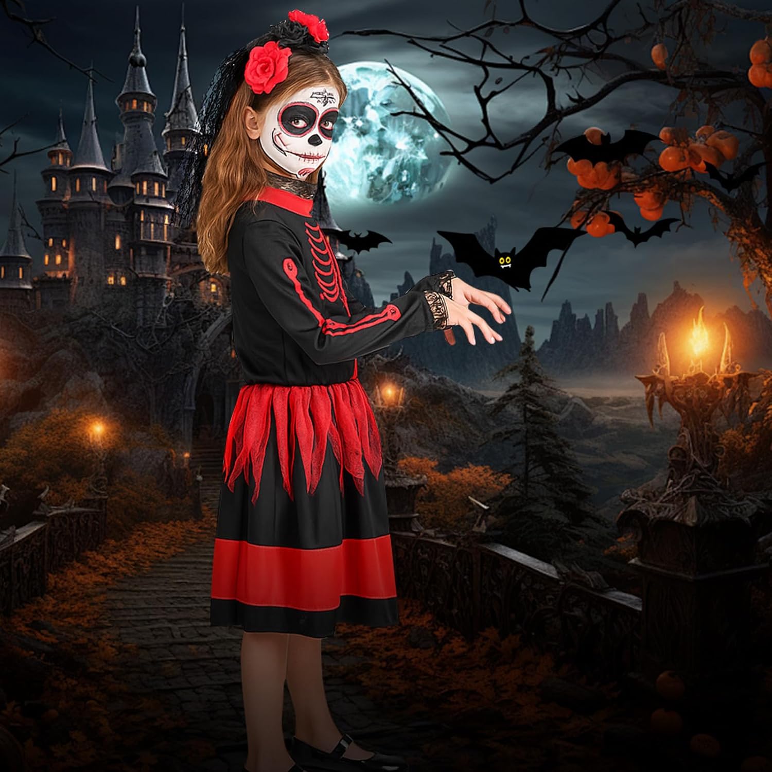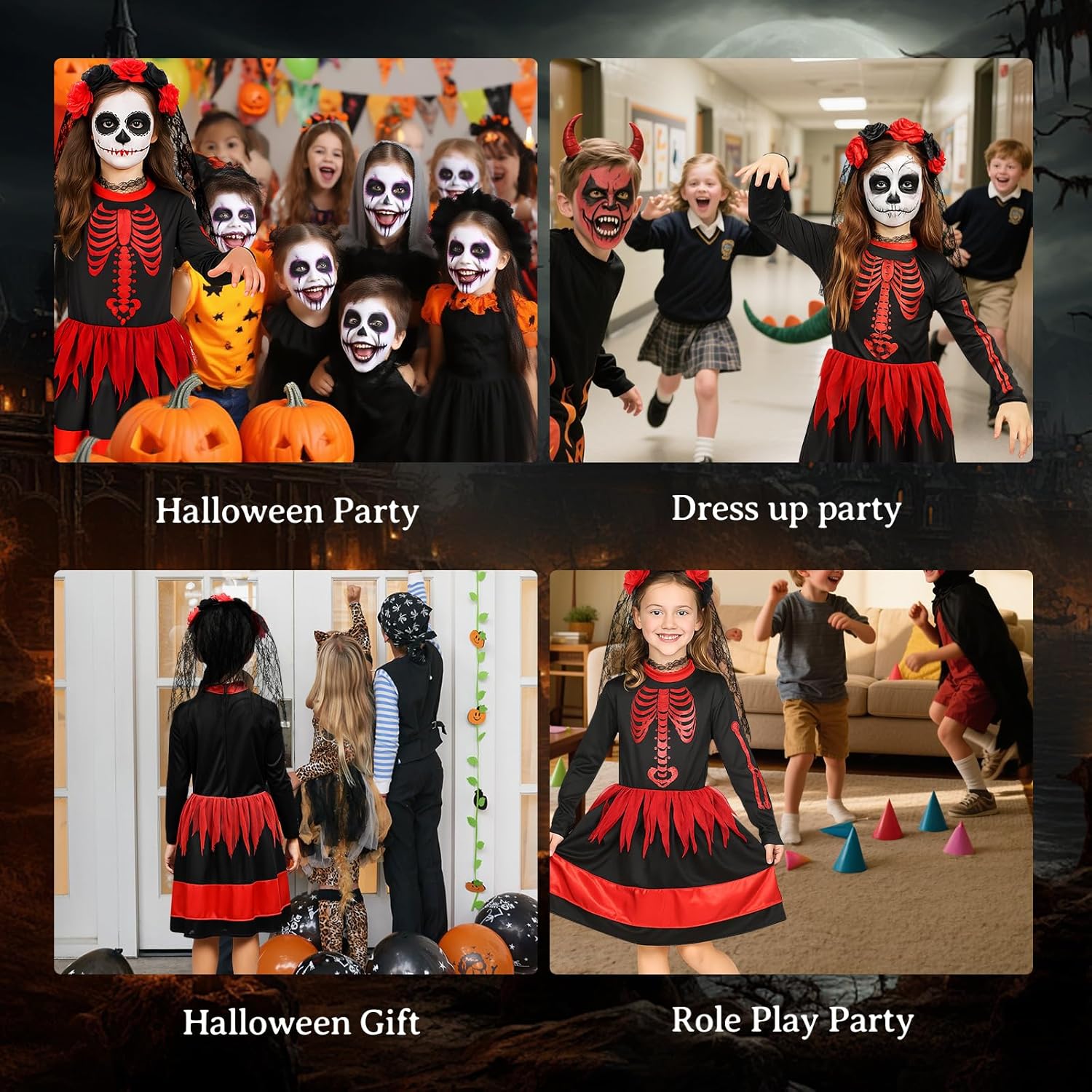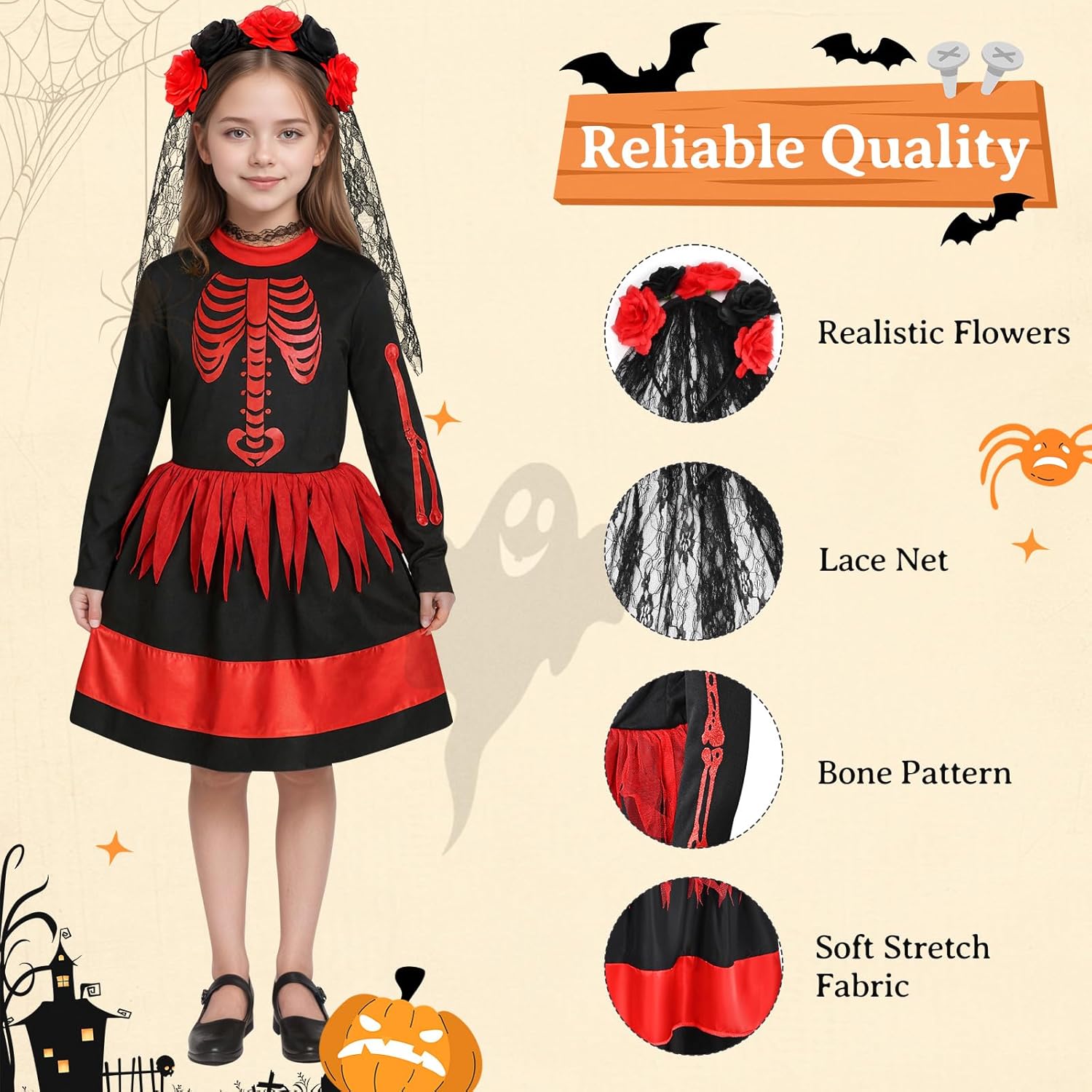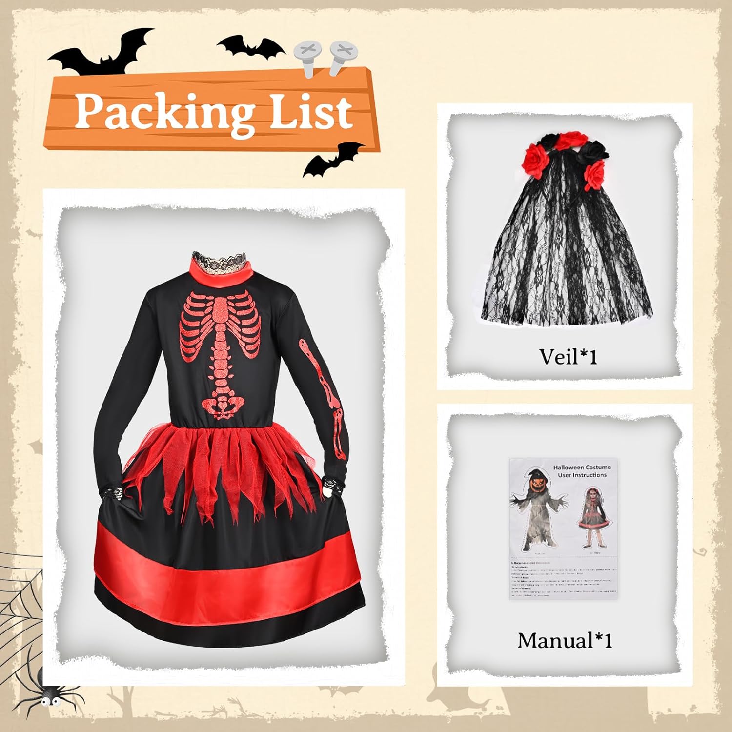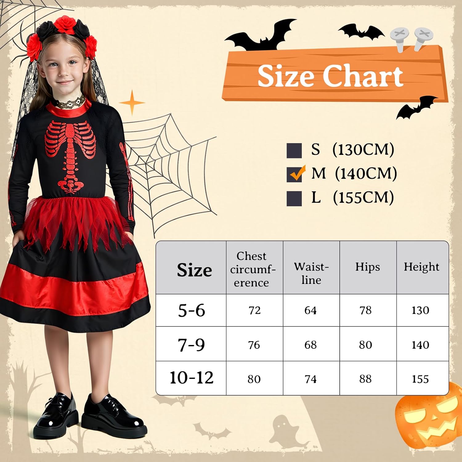 Il costume ha superato le nostre aspettative: la stampa scheletrica è ben fatta e la vestibilità è ottima — leggero e comodo per la festa. Mia figlia era entusiasta e si muoveva liberamente tutto il tempo. Non vi aspettate un costume sartoriale, o di fattura pregiata, ma per la festa di Halloween o qualche party particolare è un ottimo prodotto. Se unito ad un bel trucco in viso farete la vostra bella e "orribile" figura. Ottimo acquisto, lo consiglio!