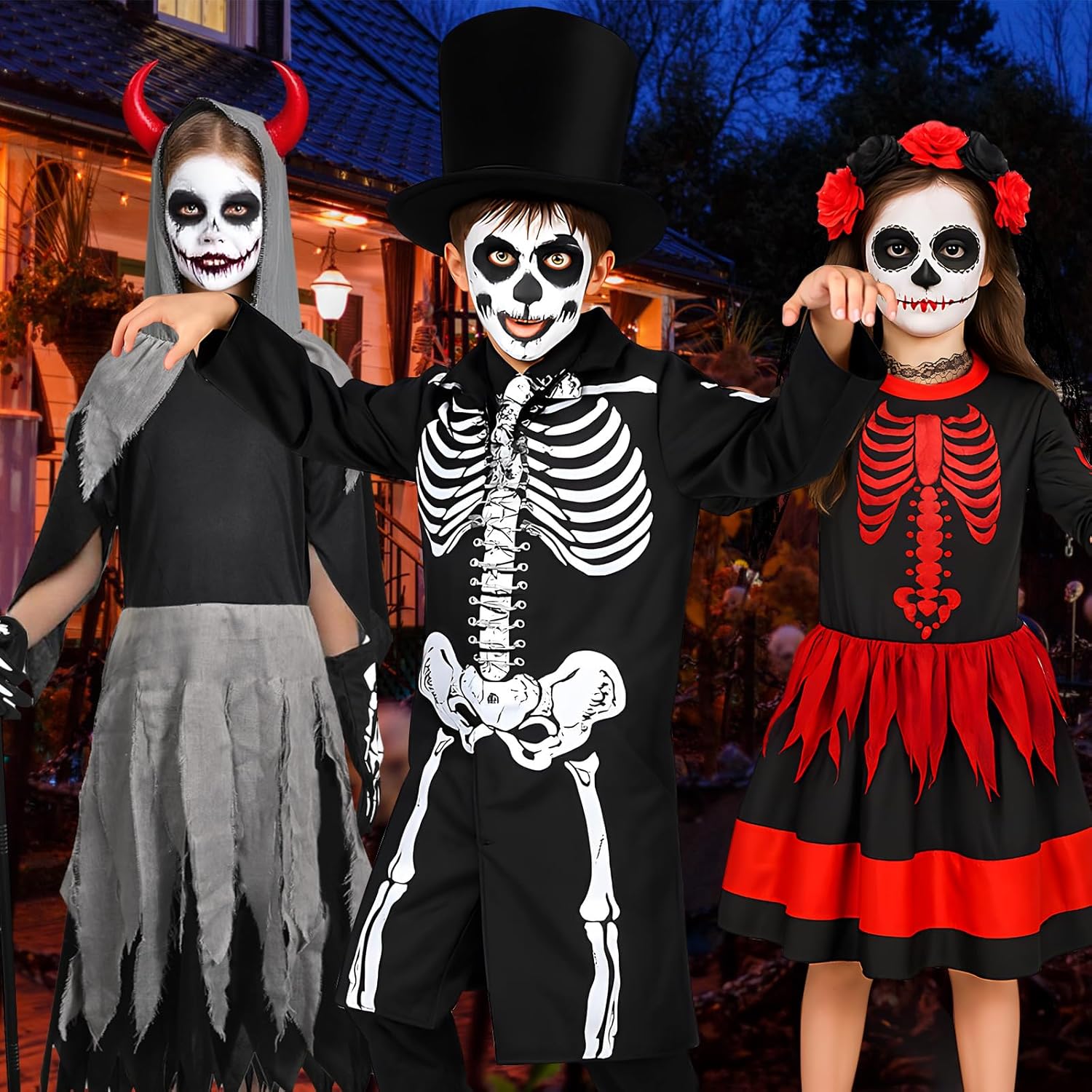 Dieses Skelettkostüm sieht klasse aus und passt sowohl für Jungen als auch für Mädchen. Ideal für Halloween oder Mottopartys, leicht anzuziehen und angenehm zu tragen. Die Verarbeitung ist ordentlich, könnte aber etwas robuster sein – daher ein Stern Abzug. Insgesamt ein tolles Kostüm zum fairen Preis.