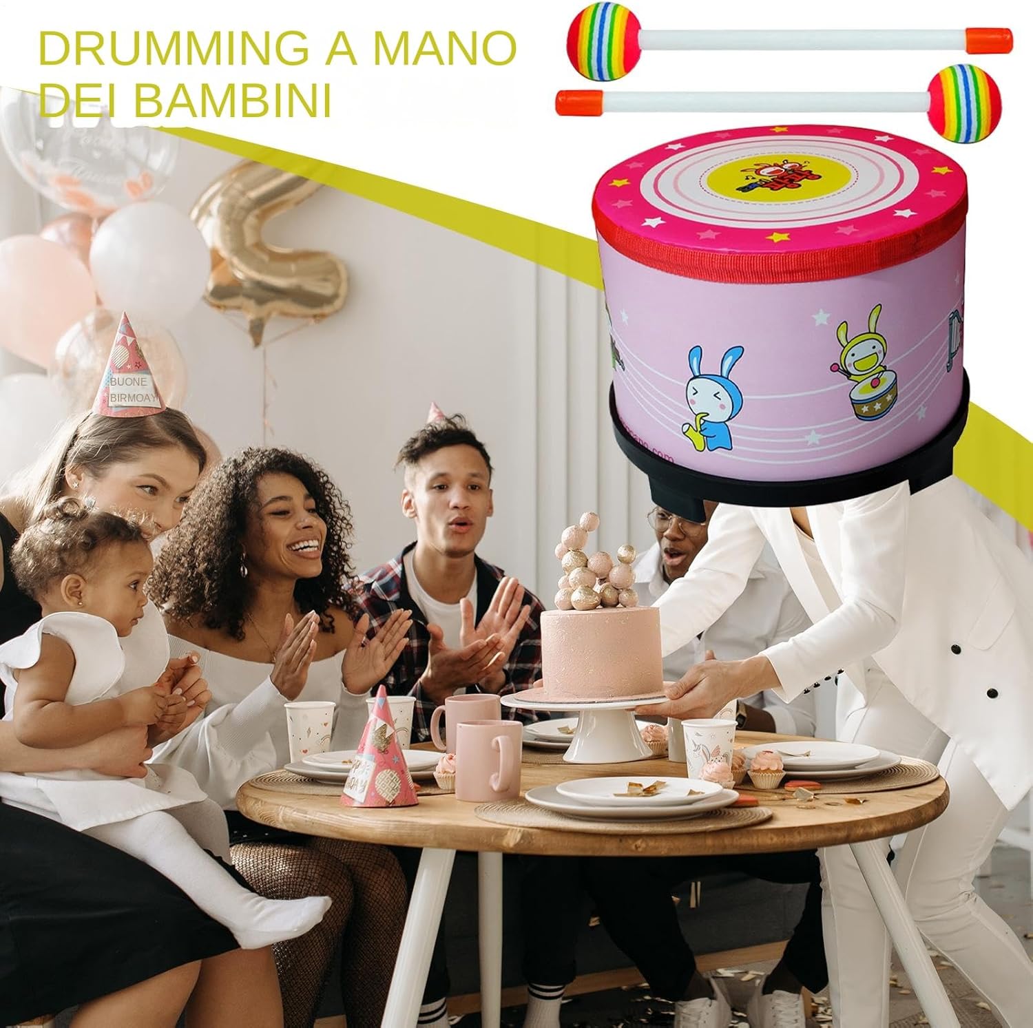 Vasta applicazione: un must per lezioni di musica, spettacoli teatrali e feste a tema per bambini, adattandosi a diverse ambientazioni e capacità di miglioramento degli asili e festival musicali per bambini a mano per bambini Presente di vacanza: Spark Joy nel cuore del tuo giovane musicista presentando loro questo tamburo a mano, adatto per creare momenti affascinanti in occasioni speciali e mostrare il tuo amore e la cura dei bambini a mano per bambini Incoraggia l'espressione musicale: questo tamburo a mano incoraggia l'esplorazione e l'innovazione, rendendolo strumento educativo ideale per coltivare le capacità musicali per i bambini di tutti i voti di esperienza Migliora le abilità ritmiche: attentamente lucidata e con una raffinata fattura, questo tamburo fatto a mano, realizzato in legno addominali, garantisce un tocco liscio che non graffia la pelle essendo visivamente attraente e confortevole Promuove il miglioramento della creatività: progettato per le persone che amano gli strumenti a percussione, il tamburo a mano per bambini, con la sua costruzione leggera e il design centrale-follow, produce un suono risonante, consentendo un facile trasporto e ispirare la creatività attraverso l'espressione ritmica