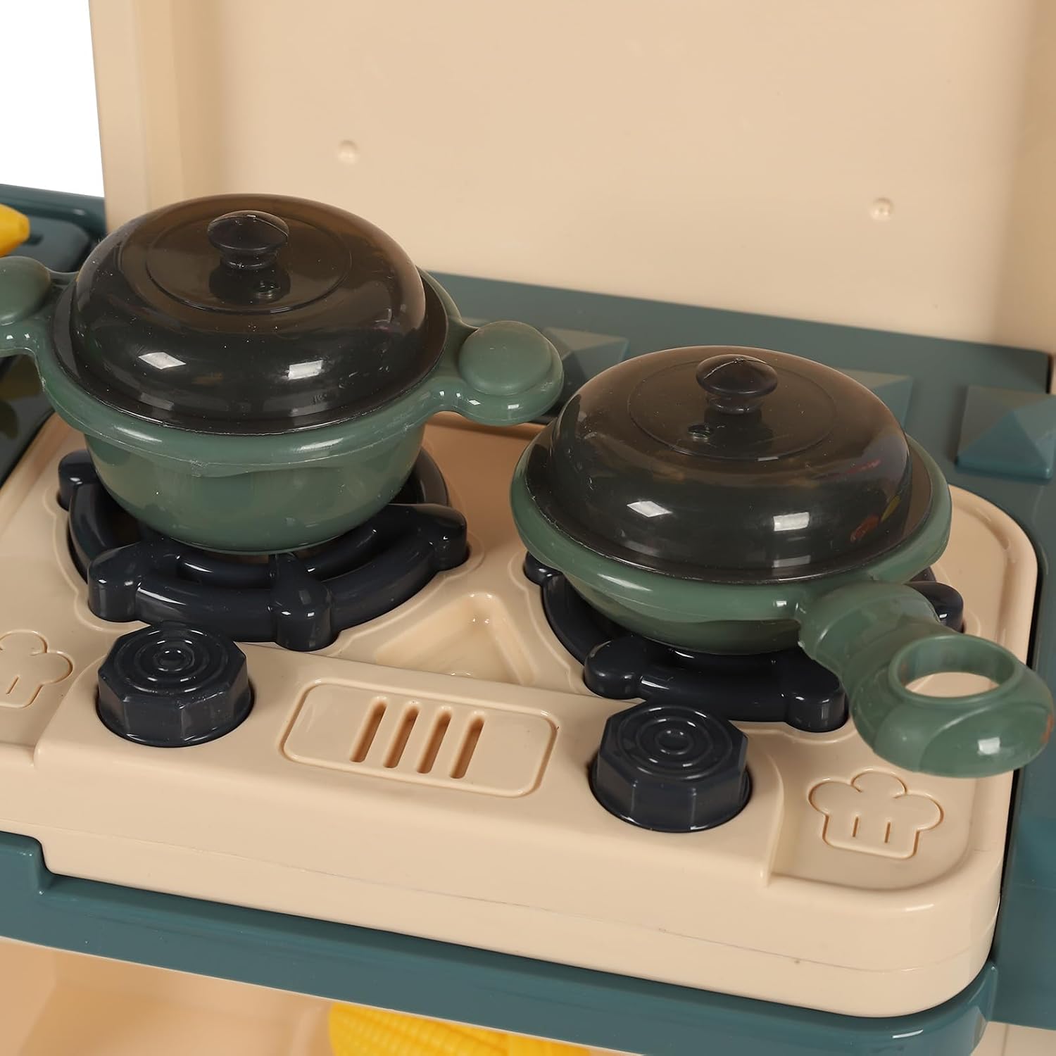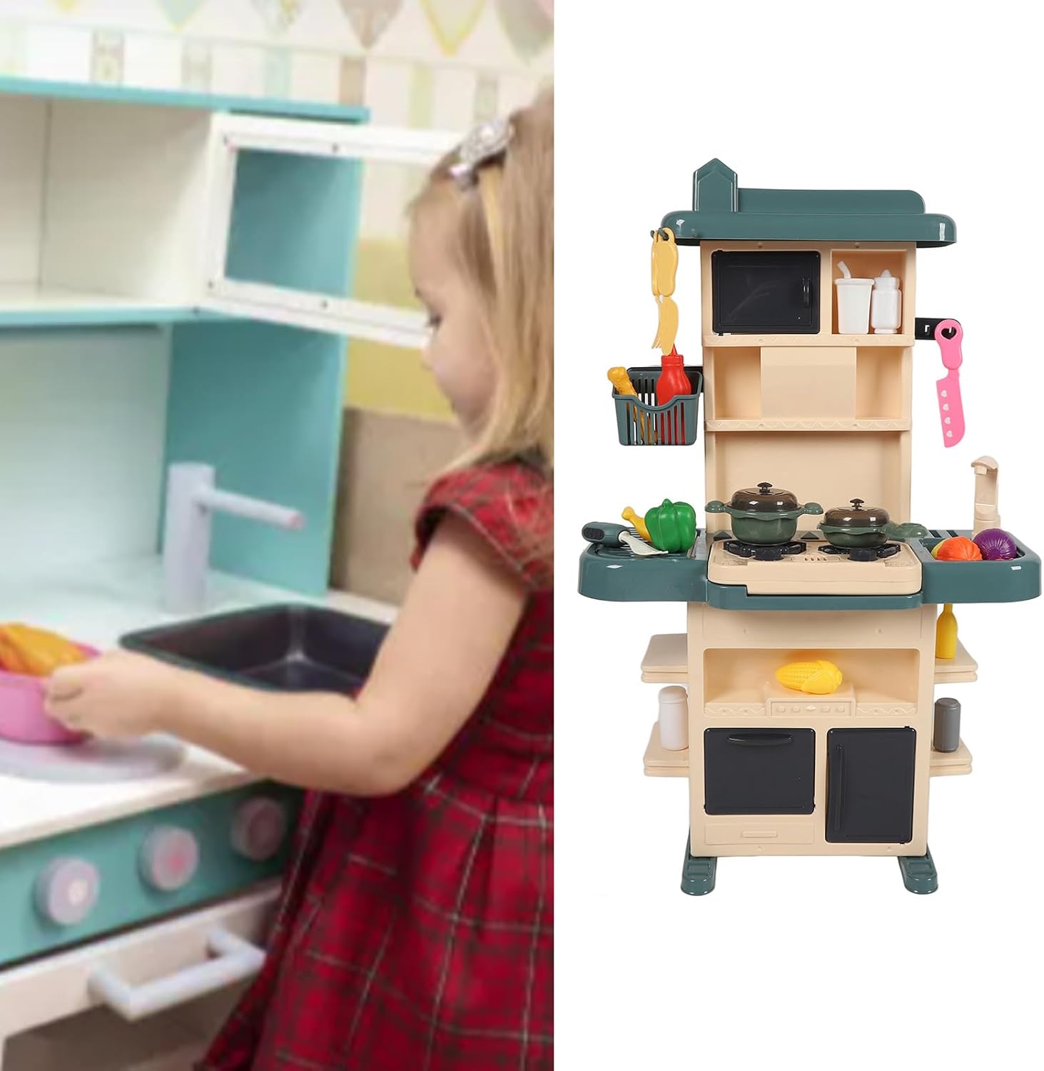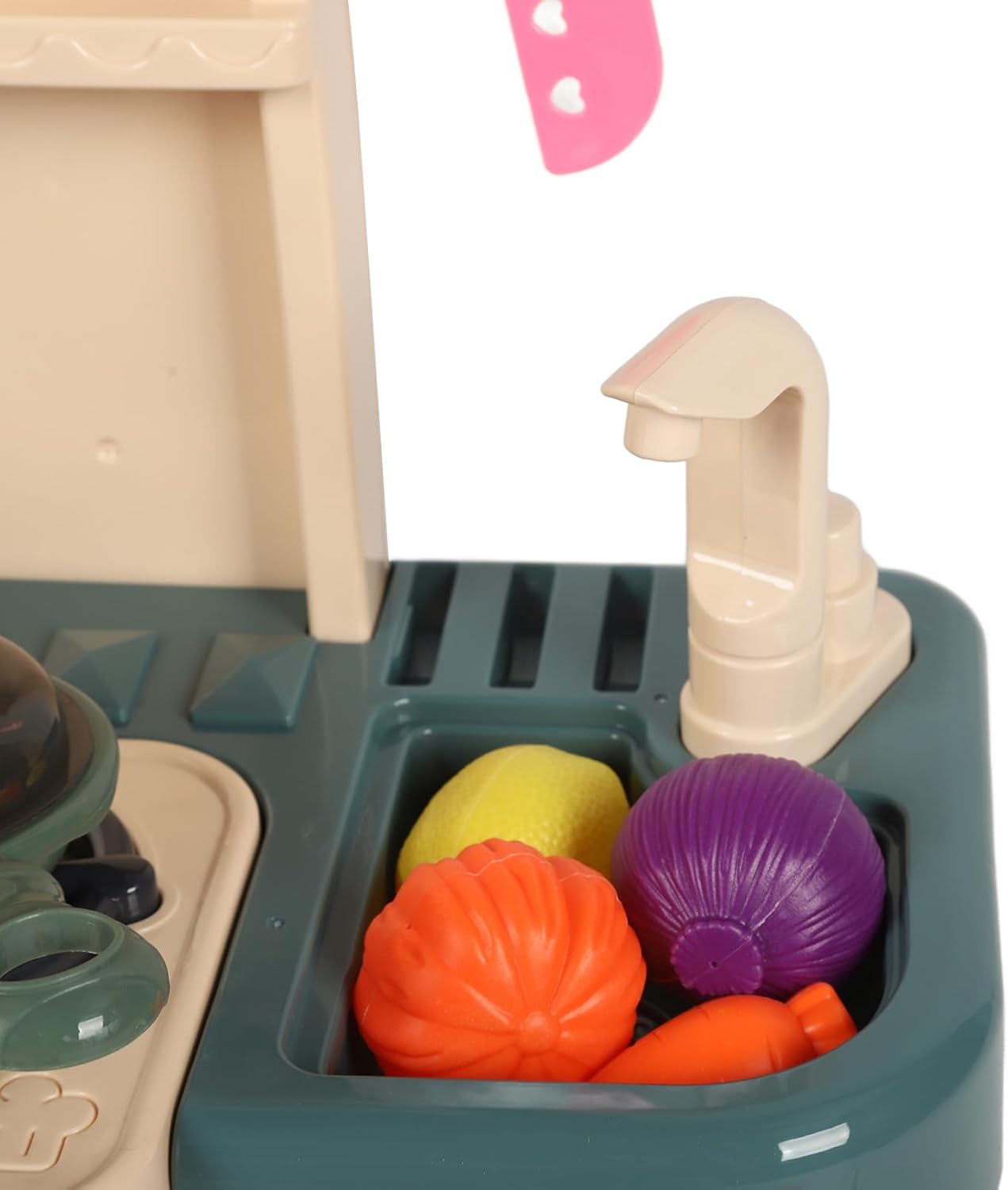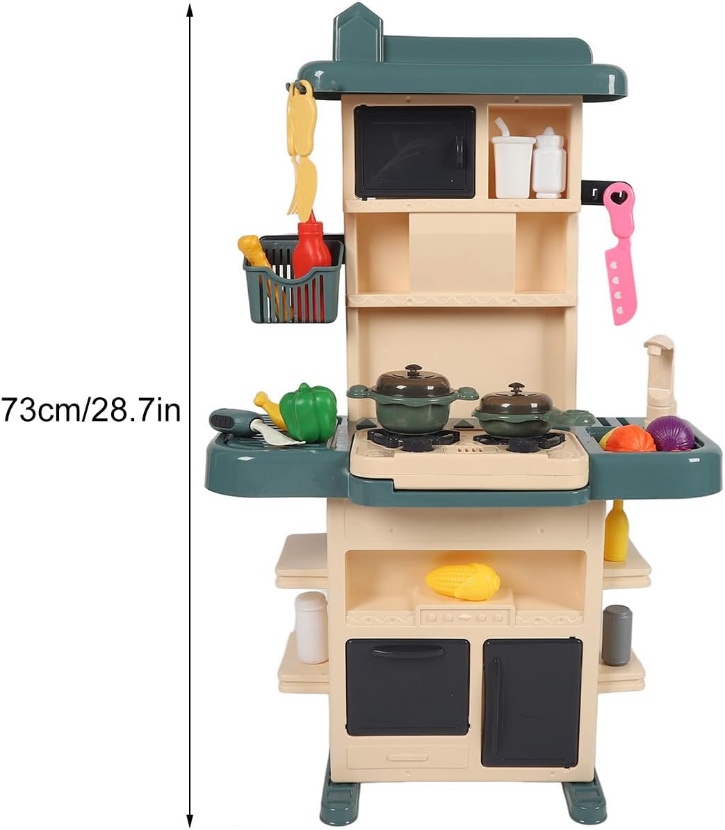 Luce sonora: giocattolo da cucina con suono ed effetti leggeri. Quando viene utilizzato da un bambino, il suono e l'effetto leggero dello spray d'acqua migliora l'interazione. Plastica sicura: immagina di avere giocattoli da cucina in materiale plastico, sicuri e durevoli, superfici lisce per garantire la salute e la sicurezza del bambino. Altezza 73 cm: il set da gioco della cucina adotta un'altezza di 73 cm ed è adatto per oltre 3 anni per partecipare più alle attività in cucina. Migliore responsabilità: progettato con un tavolo da tavolo, è conveniente organizzare e utilizzare utensili da cucina e promuove il senso di responsabilità del bambino e la capacità di vivere. Giocattoli simulati: i giocattoli per giocattoli da cucina utilizzano progetti di simulazione avanzati per dare ai bambini esperienze di cucina più realistiche e migliorare l'immaginazione e la creatività.