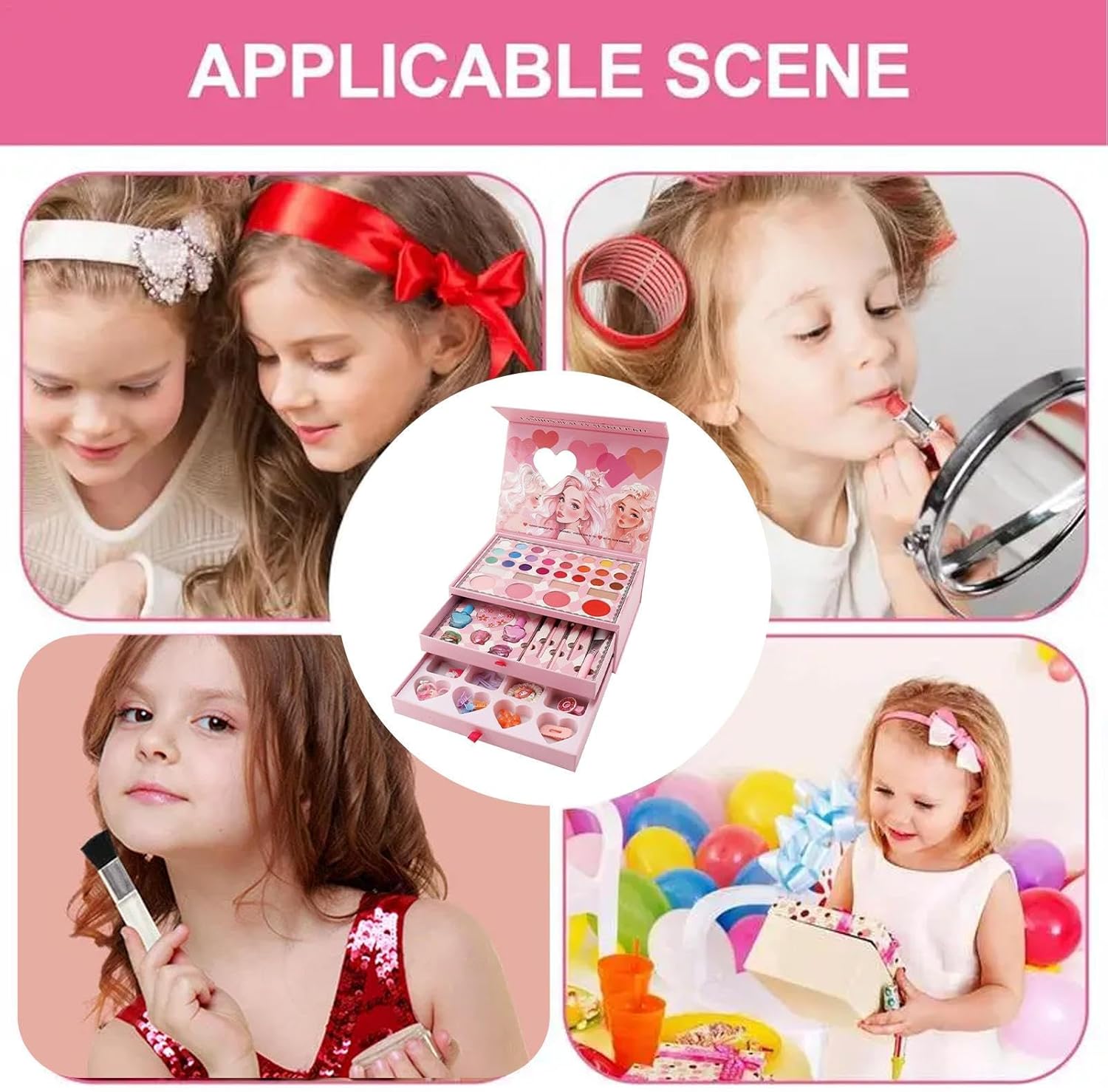 Washable Kids Makeup Set with Safe : Designed specifically for children, this makeup playset uses washable, , and materials to ensure safety during dress-up, playtime, and performances Educational Princess Cosmetic Playset for Creative Role Play: Encourages imaginative play and social skills development by allowing kids to explore colors, facial art, and makeup application in a fun, educational way ideal for school drama, birthday parties, and workshops Complete Makeup Kit with Multiple Colors and Tools Included: Features a variety of vibrant eyeshadows, lip colors, blushes, brushes, and applicators, perfect for parties, theatrical performances, craft workshops, and community events Portable and Easy to Clean for On-The-Go Play and Storage: Compact design with a sturdy carrying case makes it easy for children to transport and store their makeup, ideal for travel, school drama classes, and outdoor play Suitable for Various Ages and Occasions Including Birthday Parties and Stage Shows: Versatile cosmetic kit designed for and older kids, perfect for birthday , school plays, community crafts, and interactive learning through dress-up