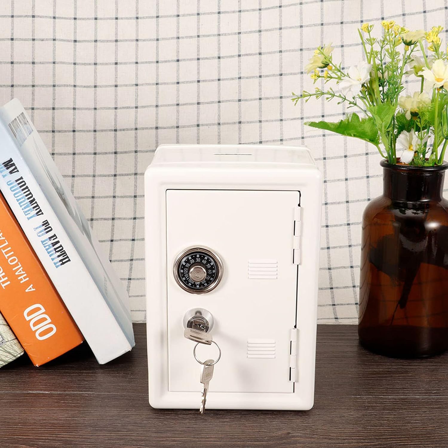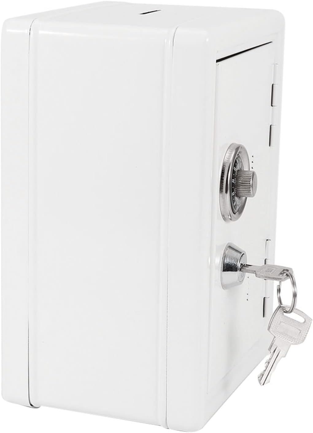 [Costruzione in metallo sicuro e resistente] Realizzato in metallo di alta qualità, questa scatola di denaro è costruita per durare con un design robusto che garantisce un uso a lungo termine. La finitura lucida gli dà un aspetto moderno mantenendo la durata. [Soluzione di archiviazione versatile] Questa scatola in contanti compatta è ottima per conservare non denaro ma anche passaporti, testamenti, giocattoli e altri piccoli tesori. Il suo design leggero ma robusto semplifica il trasporto e il posizionamento ovunque. Il cassetto piccolo incluso aggiunge una comodità extra per l'organizzazione di articoli più piccoli. [Doppia sicurezza con chiavi e password] Dotato di un blocco di alta qualità e due chiavi, questa scatola offre una sicurezza avanzata per i tuoi oggetti di valore. La password si trova comodamente sulla striscia in fondo per un facile accesso. [Design elegante e pratico] Con la sua bellissima finitura lucida e stile unico, questa scatola di denaro raddoppia come pezzo decorativo. Disponibile nel classico bianco o , completa qualsiasi arredamento della stanza. misura 18x12x10cm. [Strumento per bambini] progettato come un giocattolo divertente ed educativo, questa scatola di denaro aiuta i bambini a imparare l'importanza del risparmio e della pianificazione finanziaria. Il design unico lo rende coinvolgente per i bambini mentre insegna loro le capacità di gestione del denaro.