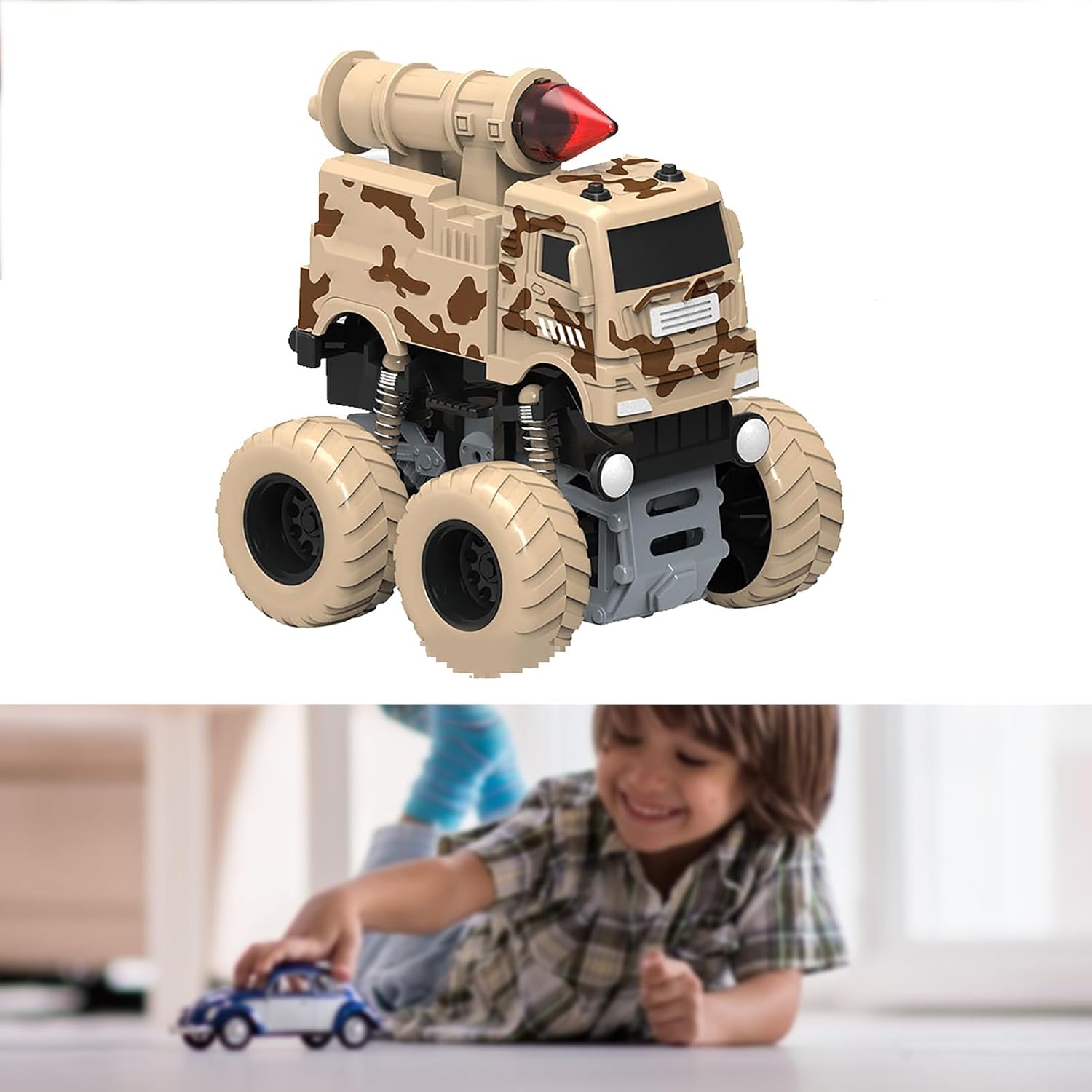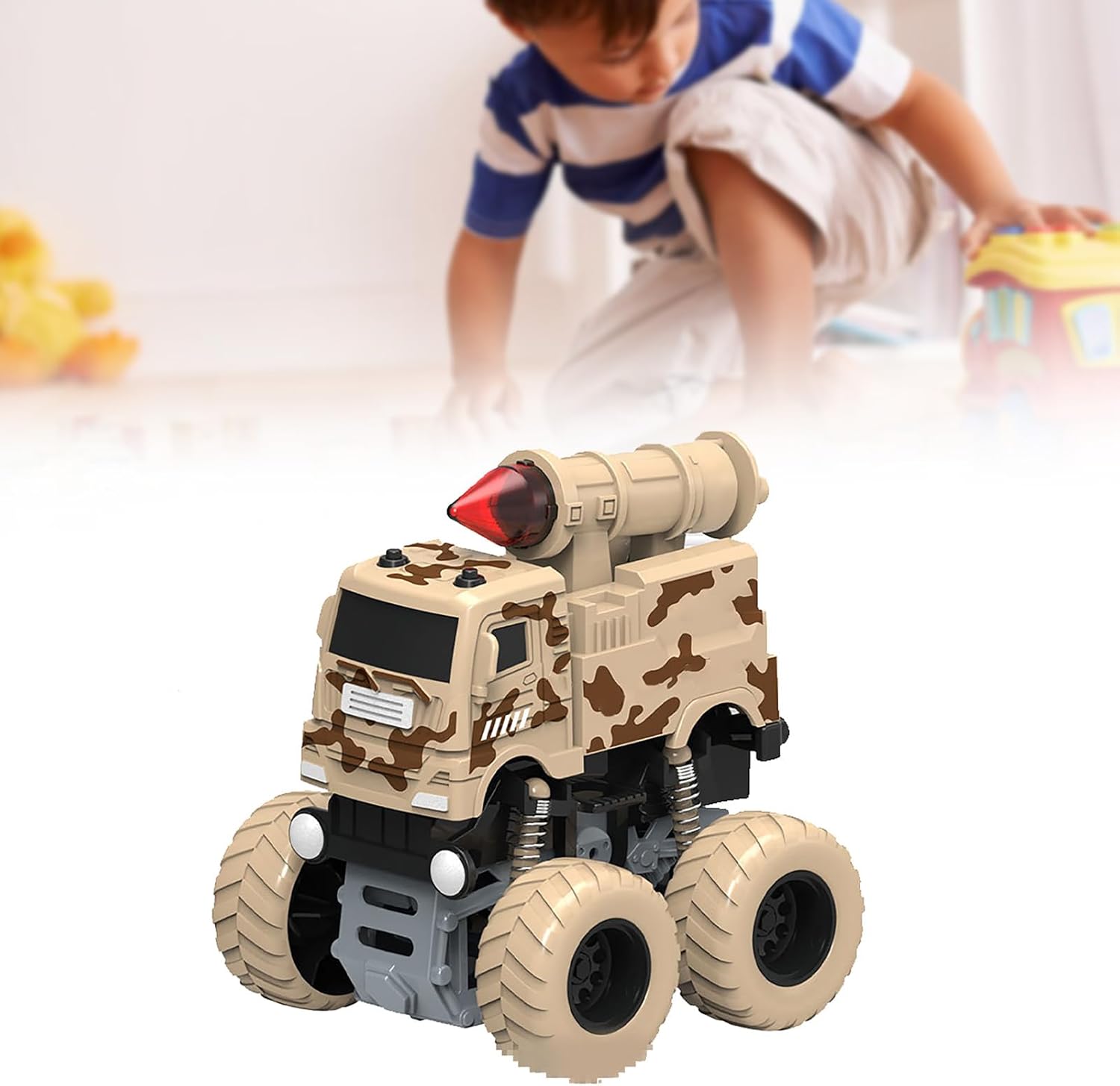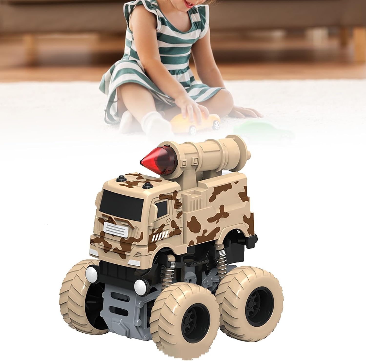 Stunt Rotation: le funzioni di spinning appositamente progettate consentono all'auto giocattolo di eseguire una varietà di fantastiche azioni di acrobazie, aggiungendo eccitazione e intrattenimento al tempo di gioco. Divertimento della batteria: le auto giocattolo funzionano a doppia inerzia, quindi non sono necessarie batterie. Spingere o tirare l'auto più lontano e si può godere per ore senza la necessità di una sostituzione regolare della batteria. Potente trazione integrale: il sistema di trazione integrale offre una potente trazione e consente alle auto giocattolo di affrontare facilmente una varietà di terreni e situazioni. Durata: questa macchina giocattolo è realizzata in materiale ABS di alta qualità e dura a lungo. È molto resistente e resistente agli effetti, quindi puoi divertirti a giocare per molto tempo. Aspetto realistico: l'auto giocattolo presenta disegni dettagliati che ricreano gli spazi esterni di veicoli militari, antincendio e sanitari, offrendo un'esperienza di gioco coinvolgente e realistica.