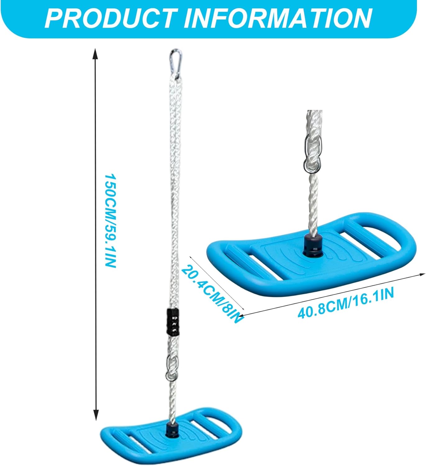Easy Installation & Compatibility: Designed for easy setup on trees or swing sets, it fits most backyard swing sets and playground accessories, making it a convenient addition to your child's outdoor play area with minimal effort. Enhances Motor Skills & Fun: By combining climbing, balancing, and swinging activities, this kids swing helps develop motor skills, coordination, and balance, while delivering endless entertainment that keeps children engaged and active for hours. Versatile 3-in-1 Design: This kids swing features a 3-in-1 longboard climbing rope design that adapts to different play styles, offering a disc seat swing, climbing rope, and balance board all in one, encouraging physical activity and imaginative play both indoors and outdoors. Outdoor Use: Constructed from weather-resistant materials, this tree swing is built to withstand outdoor elements, providing long-lasting fun in your backyard, garden, or playground without fading or damage. Adjustable and Safe: Equipped with an adjustable rope length and sturdy tangle-free design, it ensures a secure and comfortable swinging experience for toddlers and older kids alike, supporting various heights and playground setups.