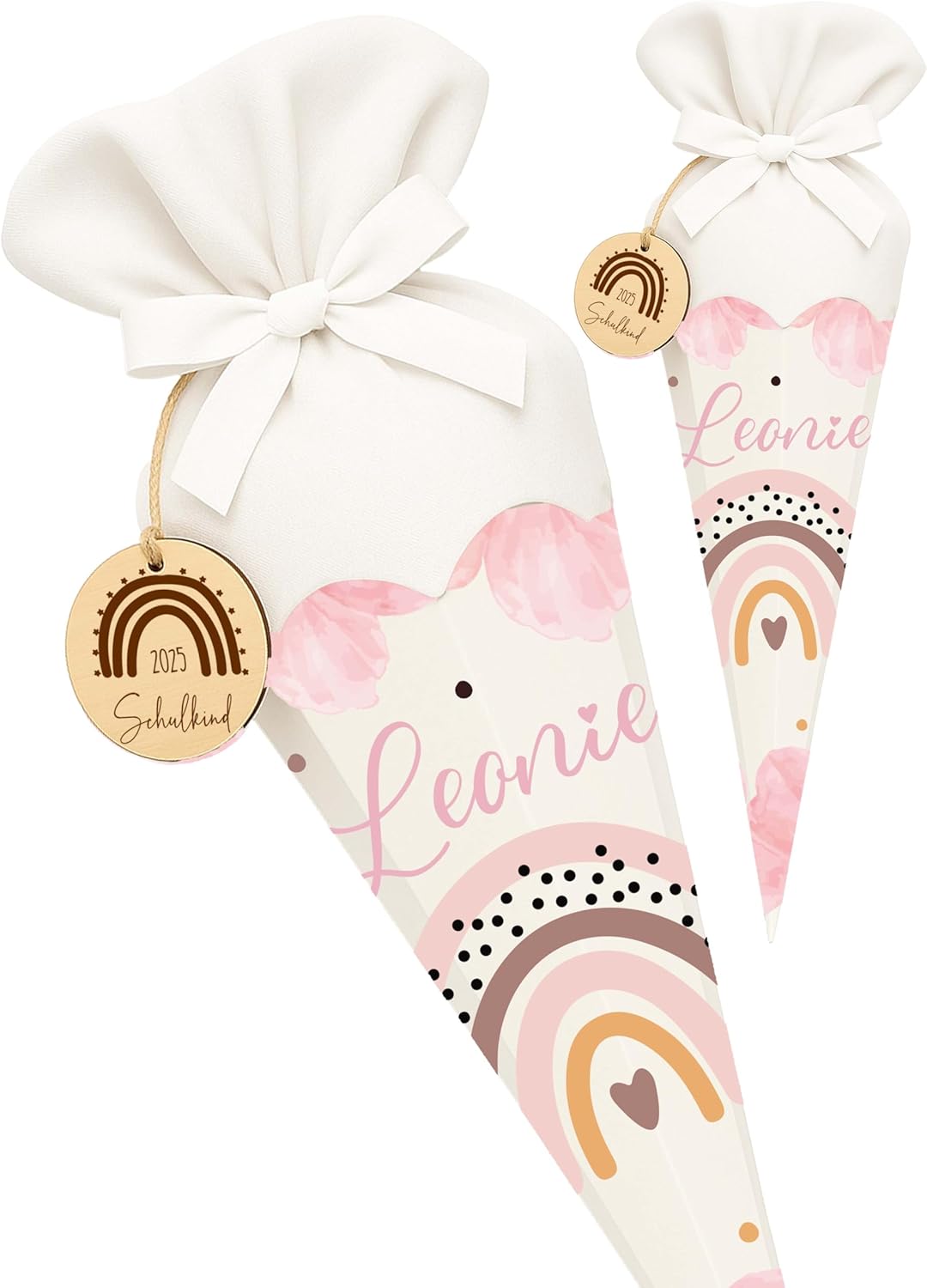 Cono scolastico personalizzato per ragazze e ragazzi: il bellissimo cono scolastico fa brillare gli occhi dei bambini! Ideale come cono di zucchero per le ragazze a scuola, all'asilo o come cono per la scuola delle sorelle. Clicca su "Personalizza ora" e inserisci il nome desiderato. DIMENSIONE PERFETTA PER: Il nostro cono scolastico è leggero, compatto e ideale per le mani dei più piccoli. Pratica bustina di zucchero, perfetta per piccole cose dolci. Ideale come aggiunta amorevole alla decorazione scolastica. Ideale anche come simpatico cono scolastico per fratelli. Immediatamente pronto per l'uso per il grande momento: il tuo cono scolastico personalizzato arriva già pronto: tutto quello che devi fare è riempire il cono scolastico per ragazzi e chiudere la chiusura in feltro. Niente armeggi, niente stress: basta disimballare e riempire! Regali per l'inizio della scuola: nel cono scolastico vuoto c'è abbastanza spazio per tutto. Penne, quaderni, astucci, quaderni dei compiti o piccoli dolcetti e caramelle. Rendi il cono scolastico personalizzato un tesoro speciale. Dettagli amorevoli: nastro di raso e targa in legno “Schulkind 2025” - Ogni borsa per la scuola per ragazze viene fornita con un nastro di raso in modo da poter chiudere la borsa in modo sicuro. Inoltre, la simpatica targa in legno “Schulkind 2025” attira l'attenzione.