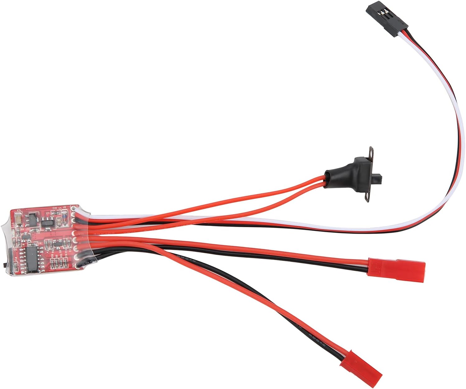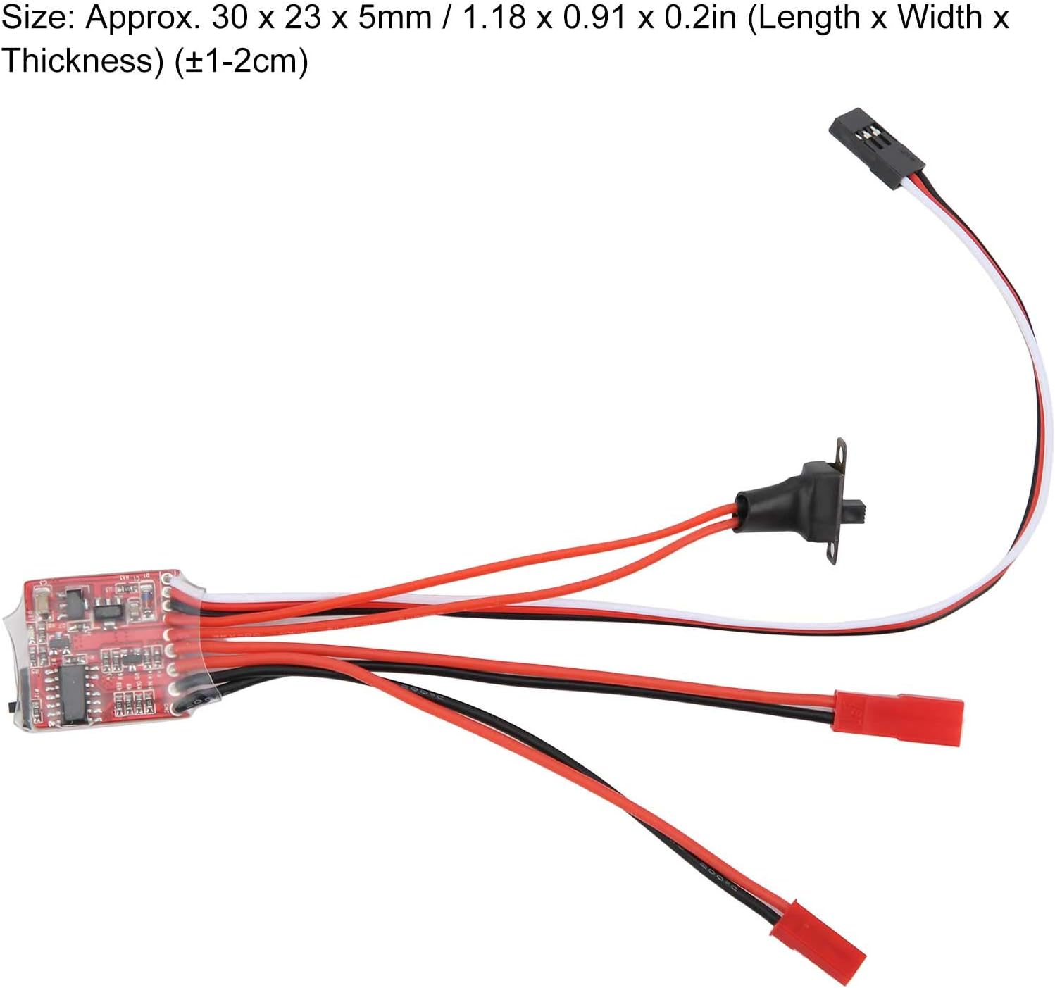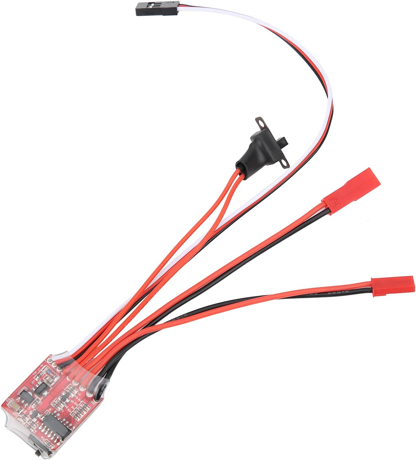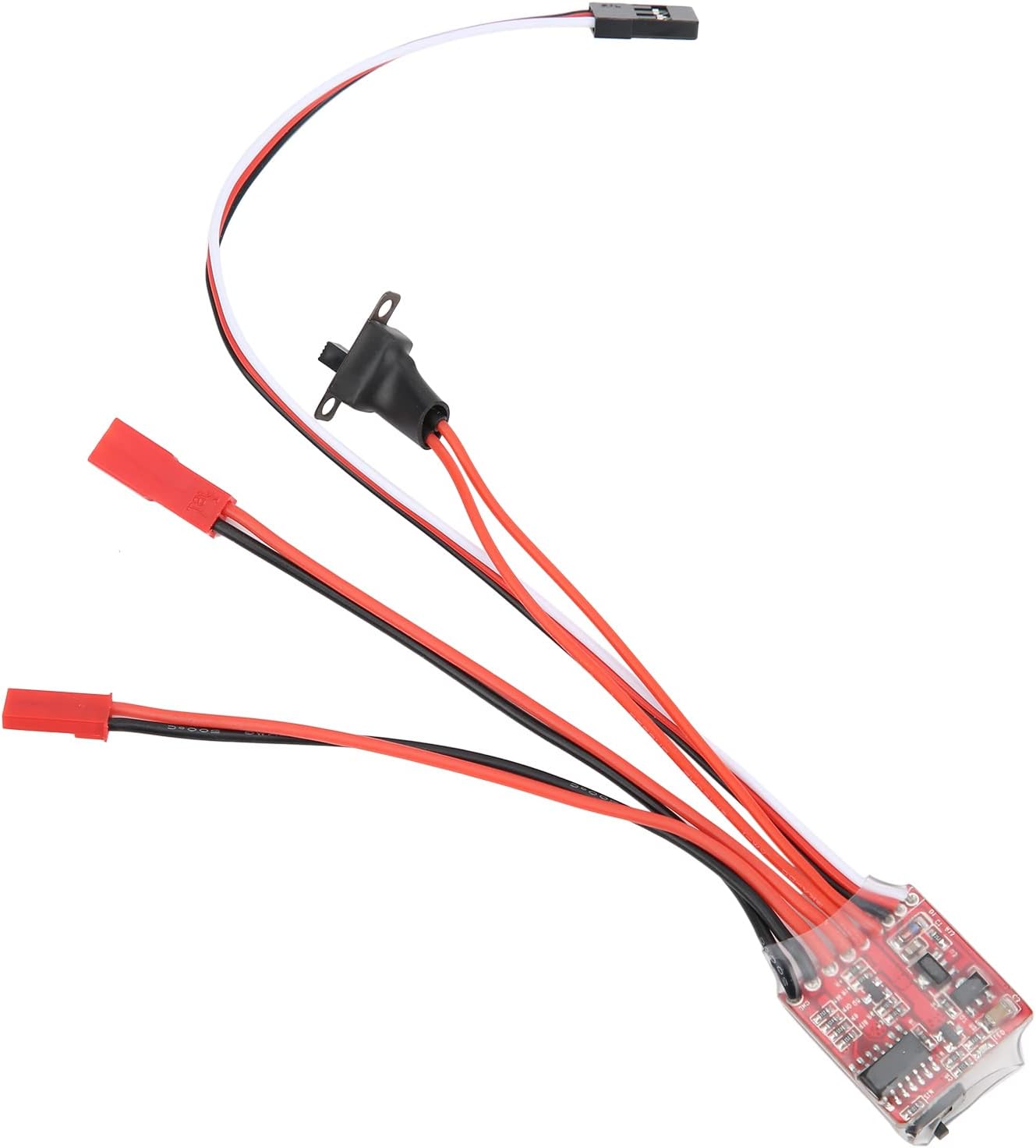 Caratteristiche di controllo avanzate: questo controller elettronico di velocità (ESC) 20A offre un controllo preciso per l'auto o la barca RC, consentendo in avanti e inversa liscio. È dotato di una speciale funzione di frenata che migliora le prestazioni durante le curve di SH o le fermate improvvise, garantendo un'esperienza di guida elettrizzante mantenendo l'integrità del veicolo. Impostazione intuitiva: collegare facilmente l'ESC semplicemente collegando l'alimentazione e collegando il ricevitore. Se correttamente connesso, l'ESC emetterà un suono "DO", indicando una riuscita attivazione di potenza. Il processo di calibrazione del motore è intuitivo, in quanto sembra "essere mi" quando in posizione centrale, eliminando la confusione durante la configurazione per principianti e hobbisti esperti. Indicatori di stato a LED: rimanere informato sulle prestazioni del tuo ESC con indicatori LED facilmente interpretabili. Gli indicatori a LED mostrano lo stato operativo di corrente: metà attiva/spegnimento quando in posizione neutra, completamente illuminata quando si sposta in avanti o indietro e lampeggiano quando c'è una perdita di segnale. Questo feedback visivo migliora l'esperienza dell'utente e consente una rapida risoluzione dei problemi. Design compatto e leggero: pesa 11 g (0,4 once) e misura circa 30 x 23 x 5 mm (1,18 x 0,91 x 0,2 pollici), questo ESC è progettato per un consumo minimo dello spazio, adattando perfettamente ai modelli RC. La sua costruzione leggera aiuta a migliorare l'efficienza complessiva e la velocità dei dispositivi senza aggiungere peso inutile. Specifiche di prestazioni robuste: ESC supporta un intervallo di tensione operativo da 3,0 V a 9,4 V e offre una corrente di uscita continua di 20A con picchi fino a 80A, rendendolo adatto per un'ampia varietà di applicazioni. Il suo design è adattato a prestazioni ottimali, garantendo affidabile se stai correndo o navigando con la tua auto o barca RC.