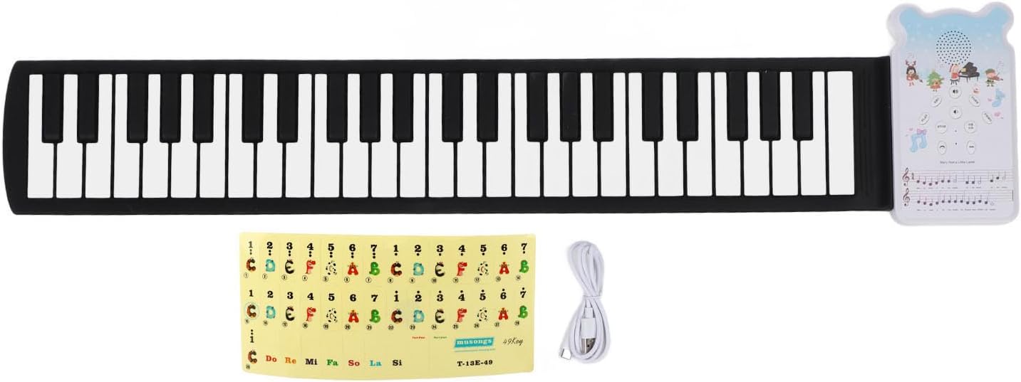 Portable e pieghevole: ---- Questa tastiera per pianoforte arrotolata leggera progettata per la portabilità, rendendolo per lanciare e tornare in una forma compatta, per e archiviazione. Sviluppo delle competenze: ---- Eccellente per migliorare il coordinamento e la destrezza degli occhi a mano, questo pianoforte elettronico a roll-up offre F simile a un gioco F che tiene i bambini coinvolti durante l'apprendimento della musica. 49 Chiavi standard: ---- Dimensione per la manipolazione, questo piano flessibile per pianoforte F 49, consentendo di esplorare una varietà di musical senza occupare molto spazio. Varietà di toni e F: ---- Con 8 toni, numerose canzoni di Demonst e una funzione di registrazione/riproduzione, questo pianoforte portatile si rivolge a entrambi e alle impostazioni silenziose grazie al suo altoparlante integrato e all'uscita delle cuffie. Uso e affidabile: ---- costruito in silicone morbido, questo piano elettronico e per bambini, offrendo esperienze sicure; Può essere alimentato una batteria ricaricabile o un cavo USB.