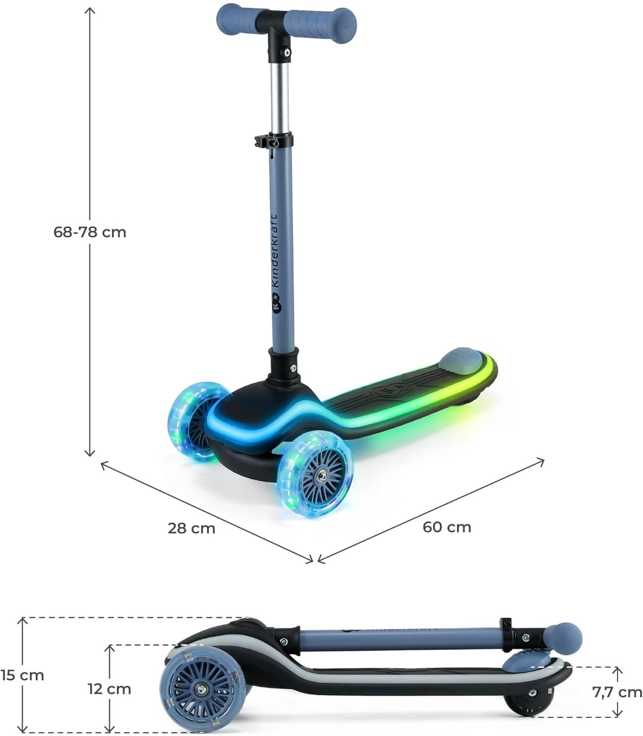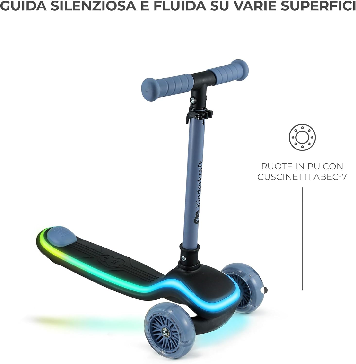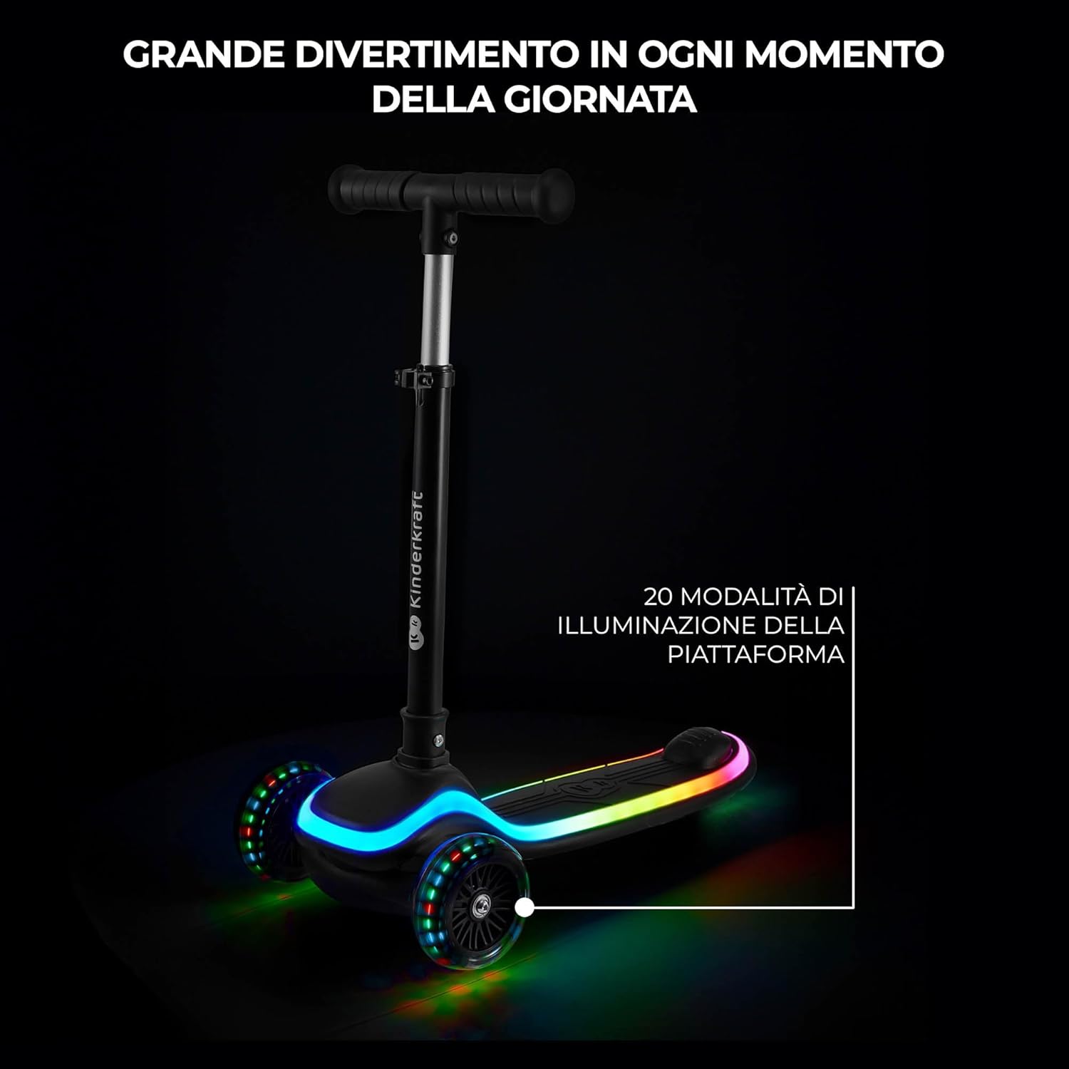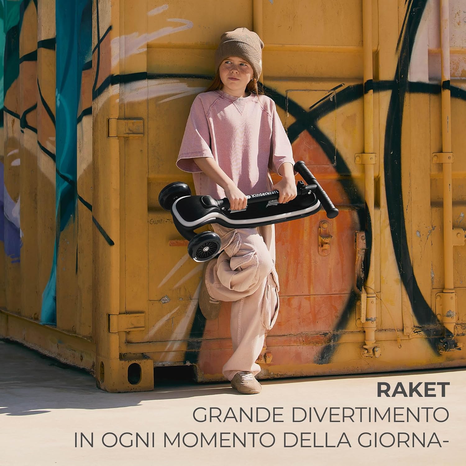 ✅ MONOPATTINO A TRE RUOTE CON LED – RAKET – Ideale per bambini dai 2 anni fino a 50 kg, con una struttura leggera di 3,2 kg. Perfetta per i più piccoli, facilitando l'uso e lo sviluppo delle capacità motorie attraverso il gioco. ✅ SVILUPPO DELL’EQUILIBRIO E DELLA COORDINAZIONE – Il sistema di sterzo tramite bilanciamento del corpo migliora l’equilibrio e la coordinazione, elementi fondamentali per lo sviluppo sano del bambino, rafforzando allo stesso tempo la fiducia in sé attraverso il gioco attivo ✅ DESIGN LED ACCATTIVANTE E RUOTE RGB – Monopattino con illuminazione LED (20 modalità tra cui scegliere) ed effetti luminosi sulle ruote RGB, che reagiscono al movimento, offrendo non solo un look accattivante ma anche maggiore sicurezza grazie a una migliore visibilità al buio. ✅ GUIDA SICURA – Dotata di cuscinetti ABEC-7 e ruote in poliuretano per la massima aderenza e una guida fluida. Certificato secondo gli standard di sicurezza EN 71-1+A1:2018 e EN 62115, dotato di manopole antiscivolo sul manubrio e di un freno a pedale potente ed efficace, che garantiscono sicurezza e durata nel tempo. ✅ MANUBRIO REGOLABILE E CHIUSURA FACILE – La regolazione a tre livelli del manubrio (68, 73, 78 cm) permette di adattare il monopattino all’altezza del bambino. Il sistema di chiusura rapida consente di piegare facilmente il monopattino, facilitandone il trasporto e la conservazione.
