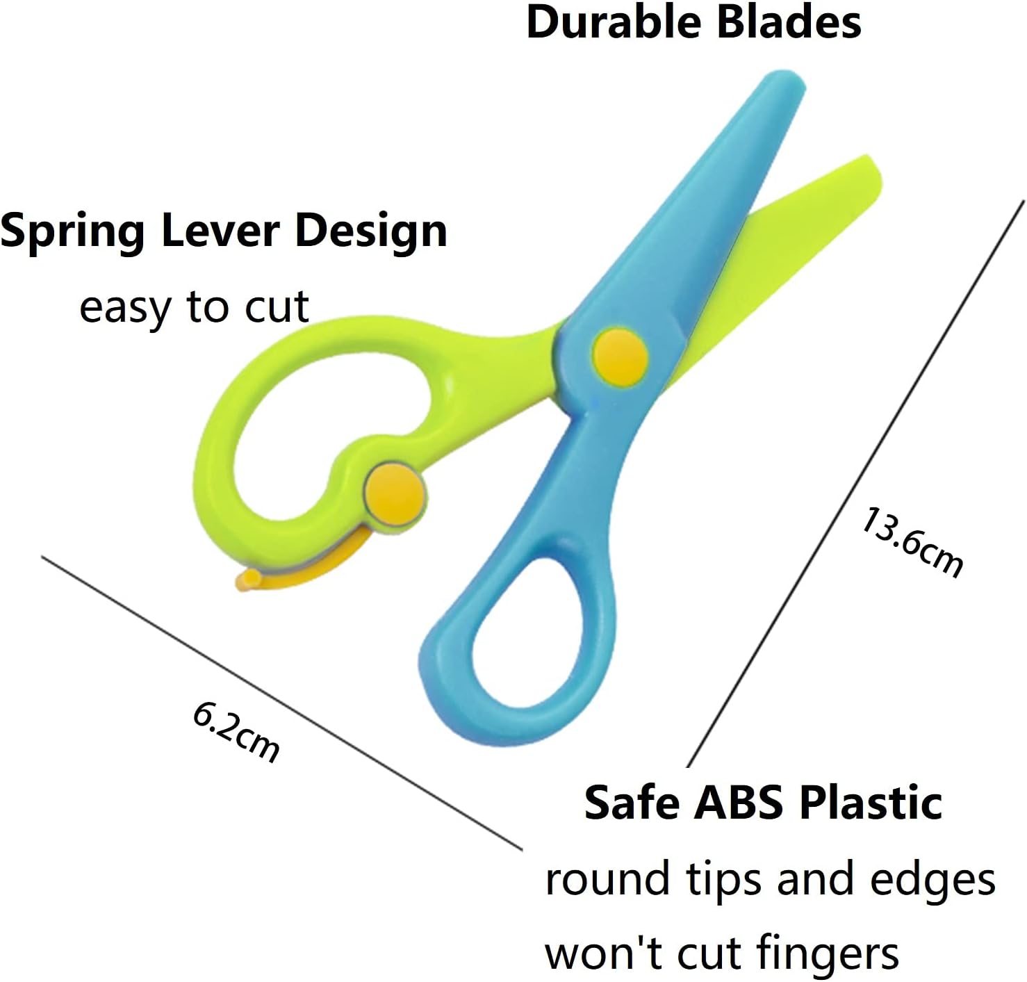 Funzione: le nostre forbici di sicurezza per bambini in plastica sono utili per aiutare i bambini a praticare le abilità delle forbici e stimolare la loro creatività. Informazioni sulla confezione: riceverai 3 confezioni di forbici per bambini in 3 diversi colori, ciascuna misura circa 13,6 cm di lunghezza, sufficienti per soddisfare le tue esigenze di taglio della carta. Design ergonomico: le nostre forbici da allenamento pre-scuola hanno un piccolo anello per il pollice e un grande anello per le altre dita, che consentono ai bambini di tenerlo correttamente. Inoltre, adotta il design della leva a molla, che aiuterà i vostri bambini a tagliare la carta più confortevole e ridurre l'affaticamento delle dita. Ampia applicazione: le nostre forbici sicure sono ideali per i bambini da usare a scuola, in ufficio o a casa. Perfetto per album fai da te, biglietti di auguri e opere d'arte per bambini, tagliare filati e carta da marmellata. Inoltre, è possibile utilizzare le nostre forbici da allenamento per creare disegni divertenti con i vostri bambini per godersi il caldo momento dei genitori-figli. Materiale sicuro: le nostre forbici artigianali per bambini sono realizzate in plastica ecologica che è atossica, non facile da rompere e sicura per i vostri bambini. Inoltre, le nostre forbici scolastiche in plastica offrono punte rotonde e lame in plastica, che possono tagliare solo carta e carte. Non dovrai più preoccuparti di tagliare le dita dei tuoi figli.