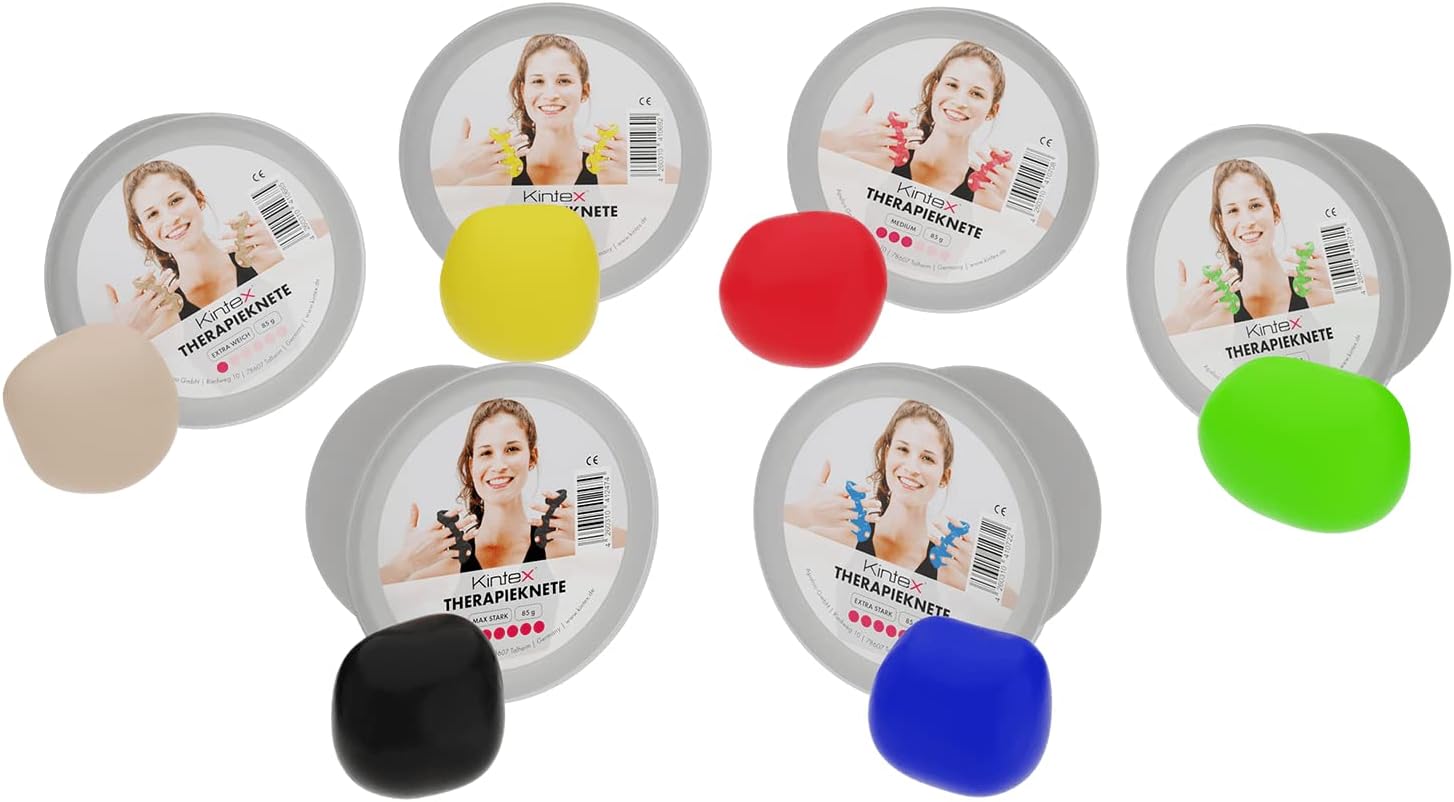 Rafforzamento muscolare: la nostra pasta modellabile terapeutica viene spesso utilizzata in fisioterapia e riabilitazione. Rafforza efficacemente i muscoli delle dita e dei polsi. Applicazione: perfetto per allenare le mani, allenare i muscoli delle dita e delle braccia, aumentare la mobilità, rilassarsi o ridurre lo stress - supporta la guarigione e la mobilità. Conservazione: la scatola da 85 g consente di conservare la pasta da modellare in modo semplice e igienico e la protegge dalla disidratazione. Punti di forza personalizzati: scegli tra 6 diversi punti di forza per l'allenamento progressivo delle mani, ideale per esercizi terapeutici e sviluppo della forza. Livelli di intensità: molto chiaro (beige) leggero (giallo) medio (rosso) medio-forte (verde) forte (blu) molto forte (nero). Puoi anche mescolare insieme le argille da modellare e quindi regolare individualmente i livelli di spessore.