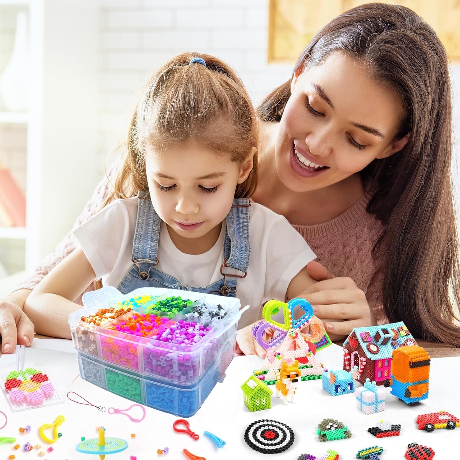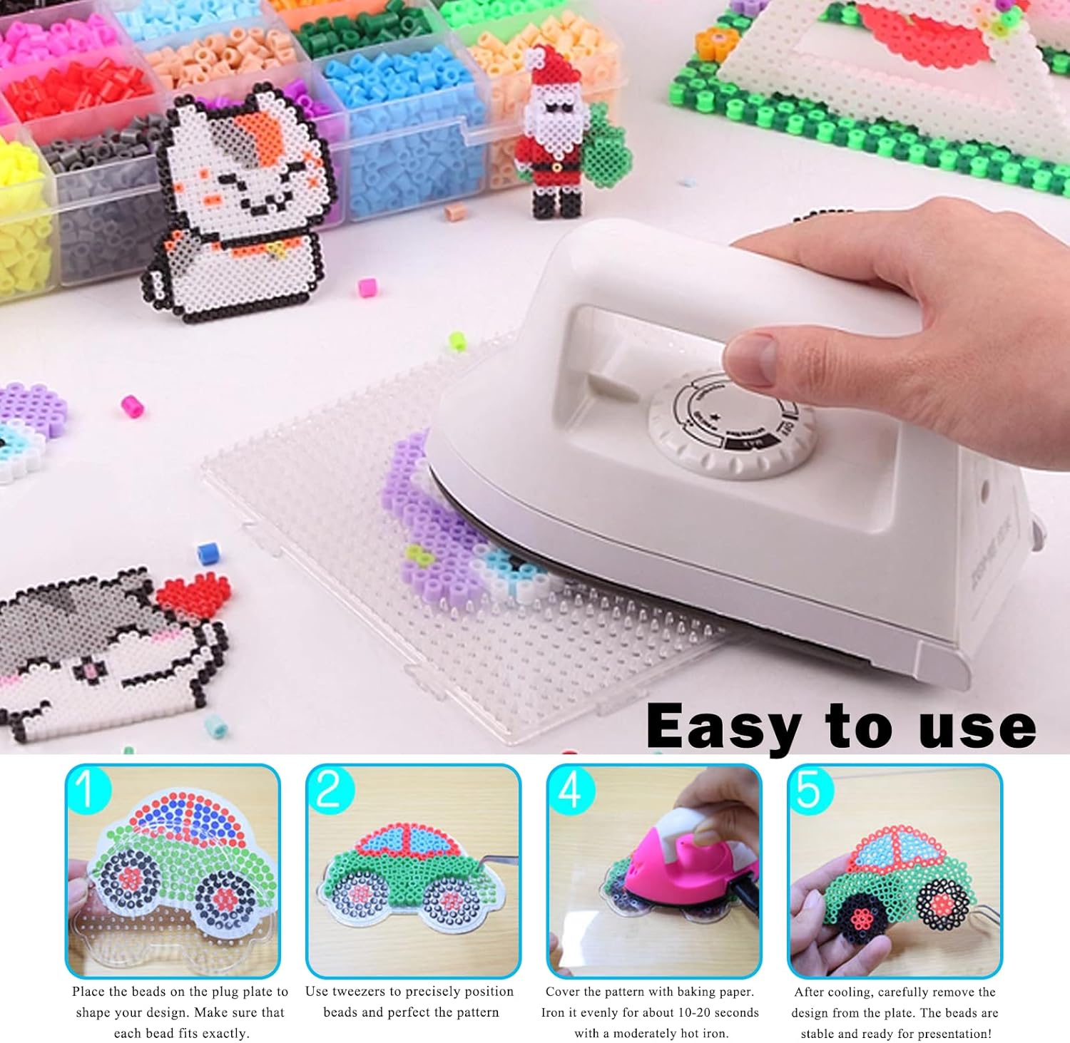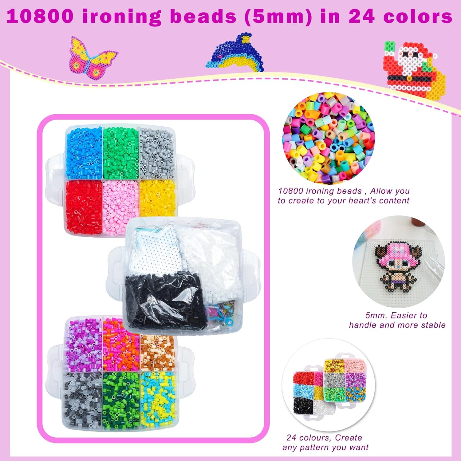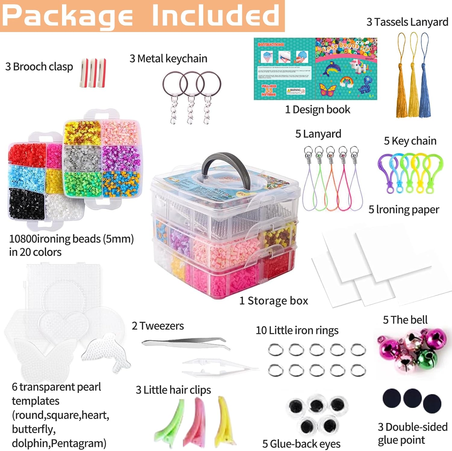 Kit completo di perline da stirare - questo set di perline da stiro contiene 10.800 perline da stiro colorate da 5 mm con 20 colori, 6 * piastre per perline da stiro (quadrato grande, cerchio, cuore, farfalla, delfino, stella a cinque punte), 5 * carta da stiro, 5 * cordino in metallo , 5 * portachiavi, 3 * anelli di metallo 2 * pinzette, 3 * punti biadesivi, 5 * occhi adesivi, 5 * campanelli, 3 * nappe lunghe, 1 * punti biadesivi, 3 * spille, 3 * piccole forcine per capelli, 10 * piccoli anelli di ferro, 1 * libro con modelli di perline, 1 * scatola per riporre le perline da stiro Materiale di sicurezza - prendiamo molto sul serio la sicurezza dei bambini. Le nostre perle da stiro per bambini dai 3 anni in su sono realizzate con materiali EVA ecologici. Non esiste alcun rivestimento chimico, completamente atossico e adatto ai bambini. I materiali sono durevoli, facili da indossare e non facili da rompere Opere d'arte fatte a mano - Grazie al design a tre strati, ogni strato funge da scomparto indipendente, gli accessori sono ordinatamente allineati, rendendo più facile la scelta di perline in diversi colori. I bambini possono mettere insieme una gamma colorata di modelli diversi a seconda i loro hobby o la loro creatività, i bambini possono farlo sempre e ovunque. Crea modelli per mostrare i tuoi risultati o usarli come regali per amici e familiari Ispirare la creatività - I bambini possono combinare tutti i tipi di maxi set di perline di ferro in diversi modelli in base alla propria immaginazione e creatività. Realizza anelli, portachiavi, pendenti, disegni 3D, disegni di personaggi, accessori e ornamenti. Può essere usato come giocattolo genitore-figlio, trascorri del tempo piacevole con tuo figlio Regalo ideale per il kit di artigianato - con una custodia portatile per le perline da stiro, puoi utilizzare questo set di perline da stiro come regalo per il rientro a scuola, regalo di compleanno, regalo di Natale, festa di classe, ecc. Il set di perline termoadesive è adatto a bambini dai 3 anni in su. Se hai domande sul set di perline termoadesive, contattaci tramite Amazon