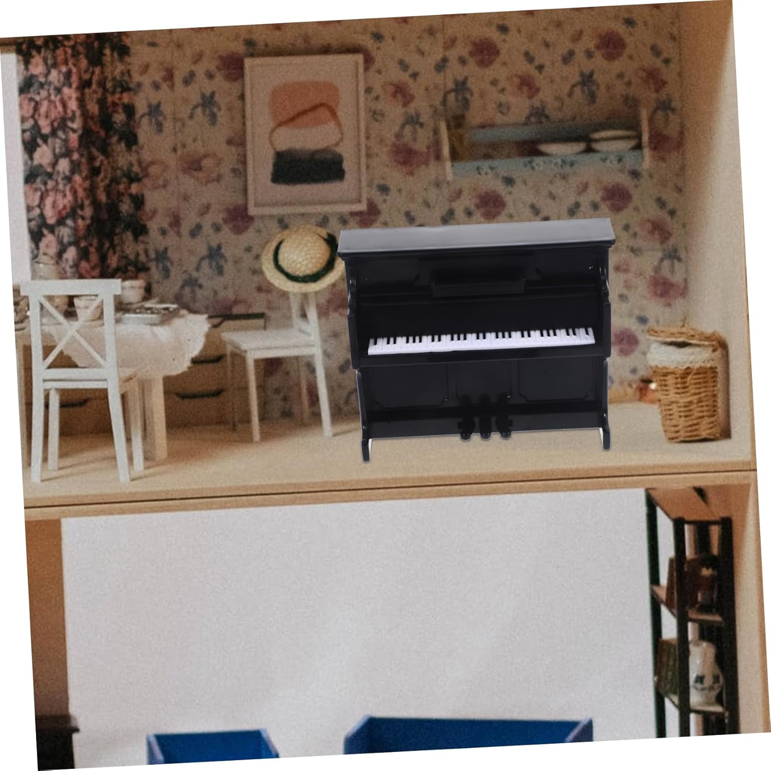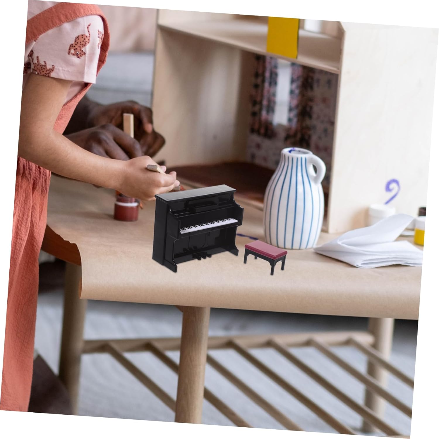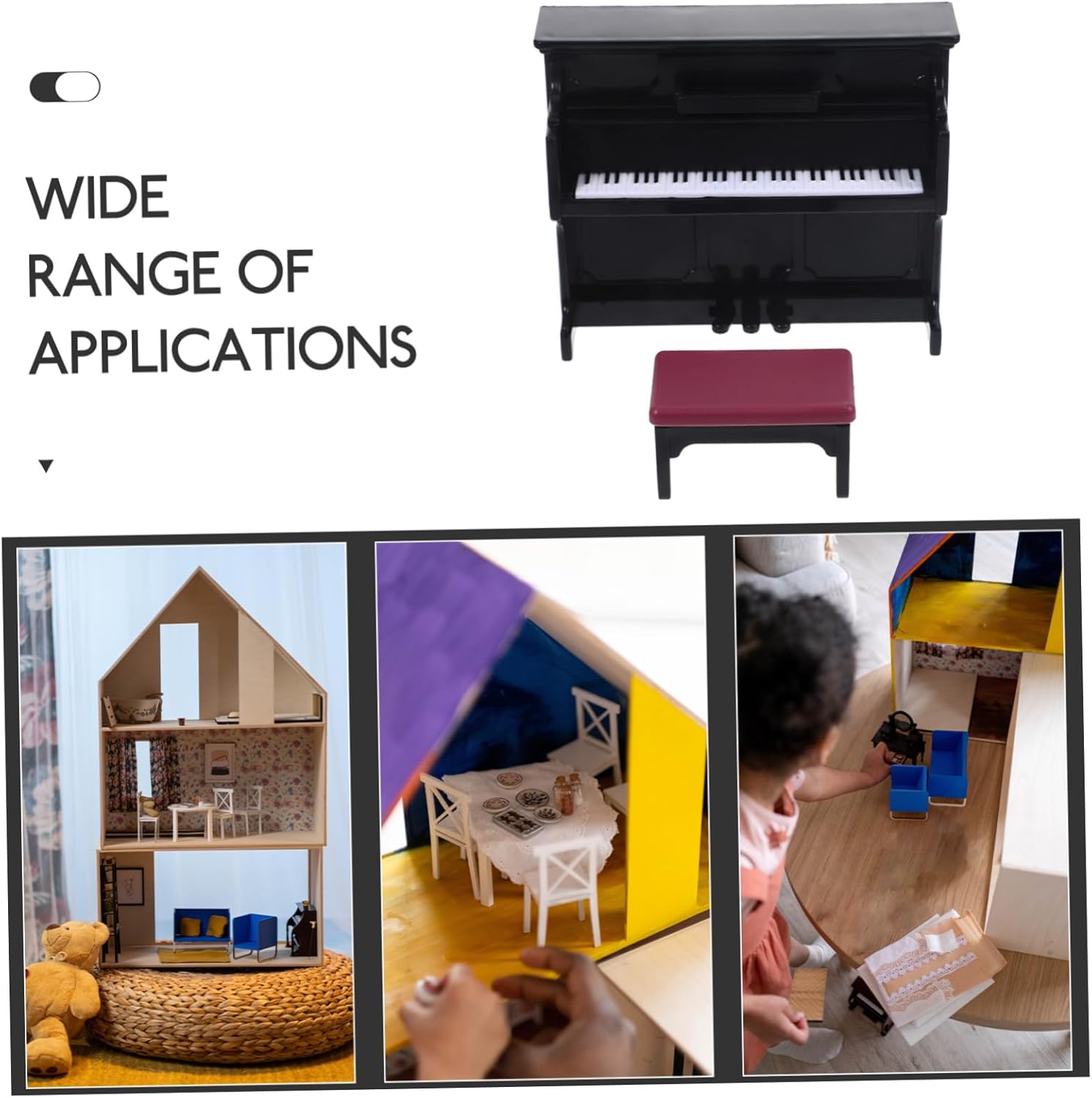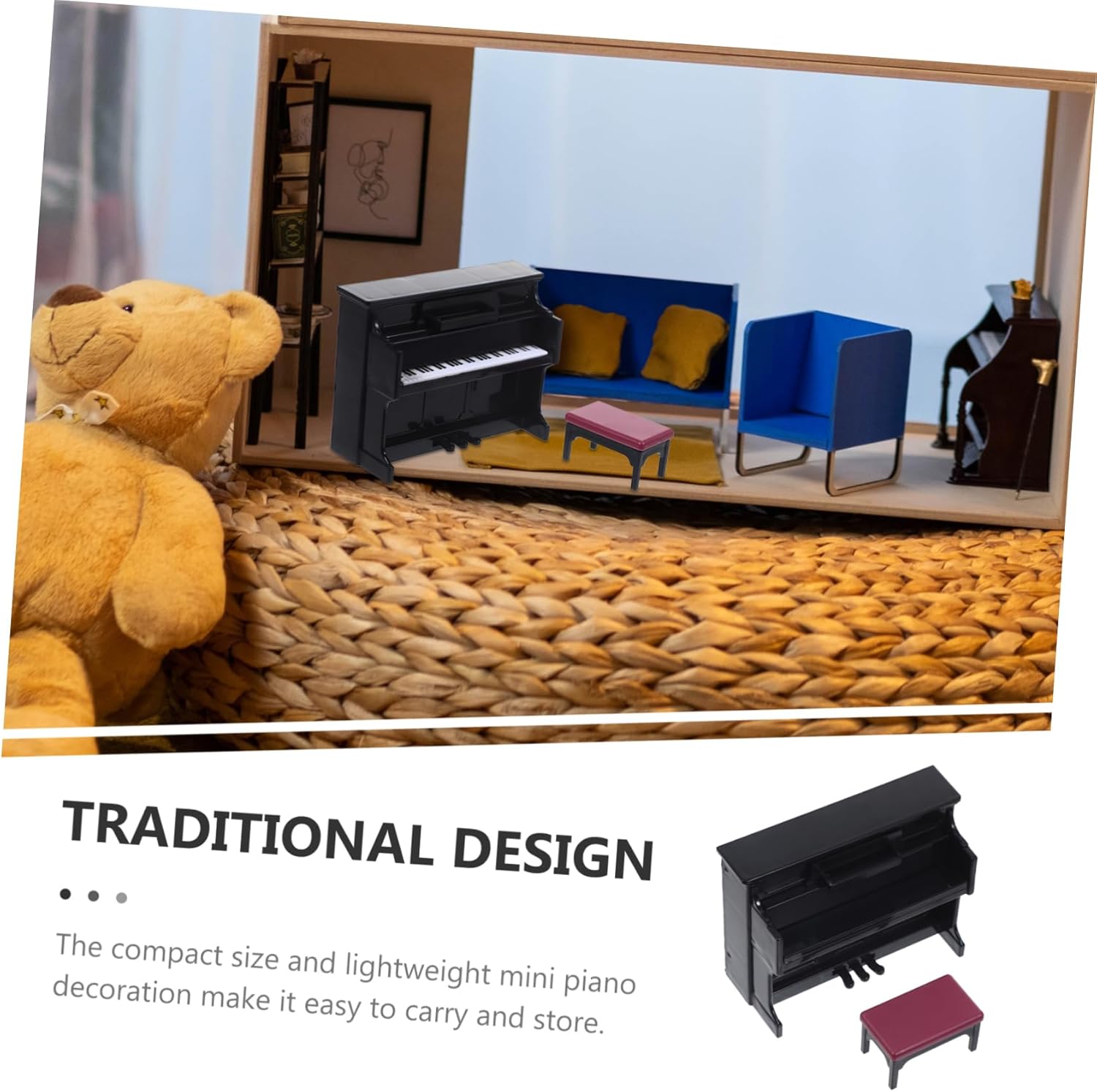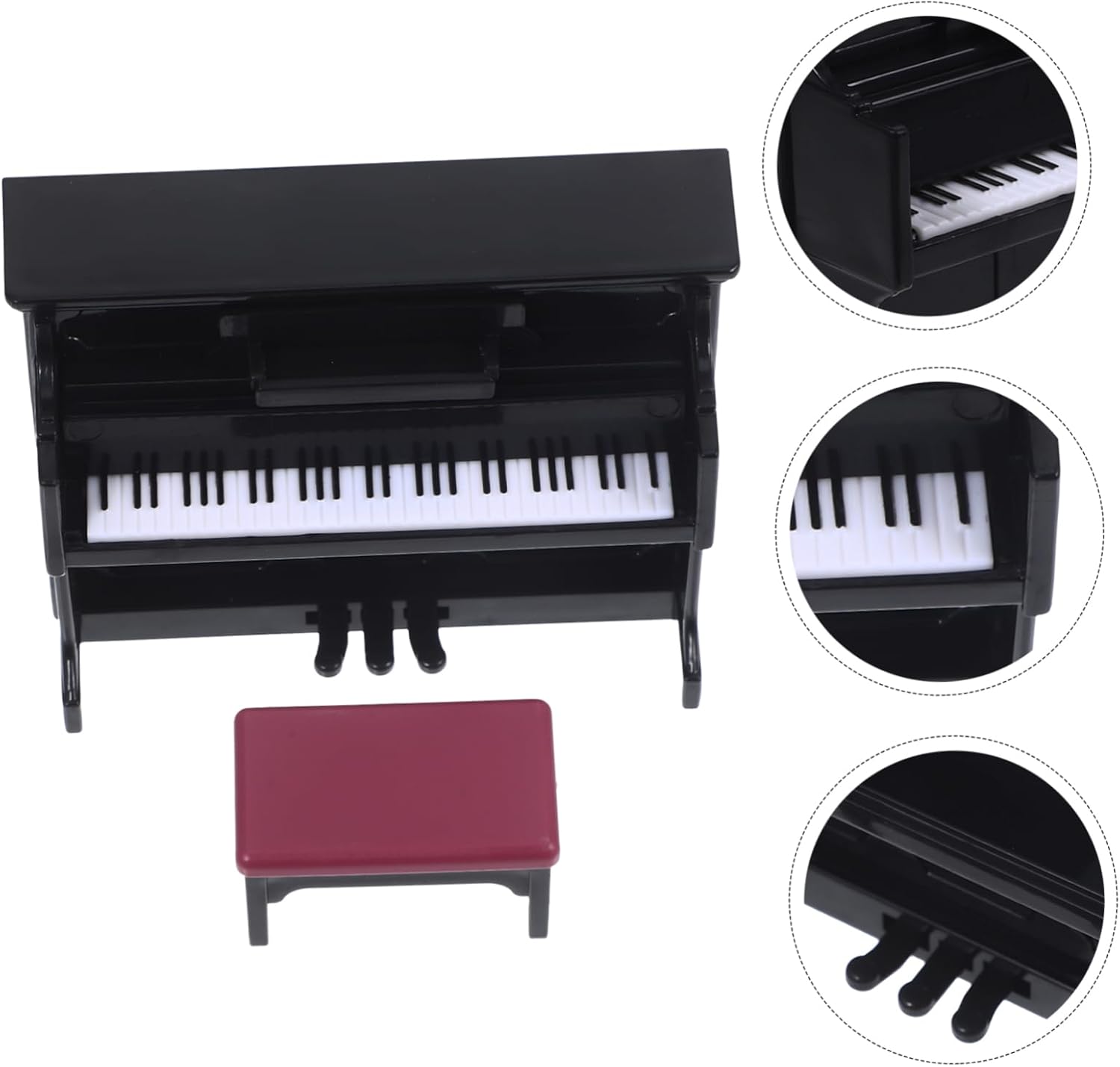 Mobili per case di bambole in miniatura: realizzati con cura e delicati, con un alto grado di riproduzione realistica, impossibile da mettere giù, decorazione per mini case Mini decorazione per la casa: sicura e comoda da usare, non facile da rompere o deformare, riutilizzabile e può essere utilizzata a lungo, pianoforte e sgabello per la casa delle bambole Mini di mobilio: crea una splendida vista della stanza in miniatura assemblandola con gli altri mini ornamenti musicali della stanza, pianoforte in miniatura Mini pianoforte e sgabello per casa: un realistico di mini strumento per l'arredamento della casa delle bambole, rende la tua mini casa più delicata, mobili per bambole Pianoforte per casa delle bambole: il è dotato delle proporzioni appropriate, che rendono la mini casa più realistica e squisita, strumento musicale per casa delle bambole
