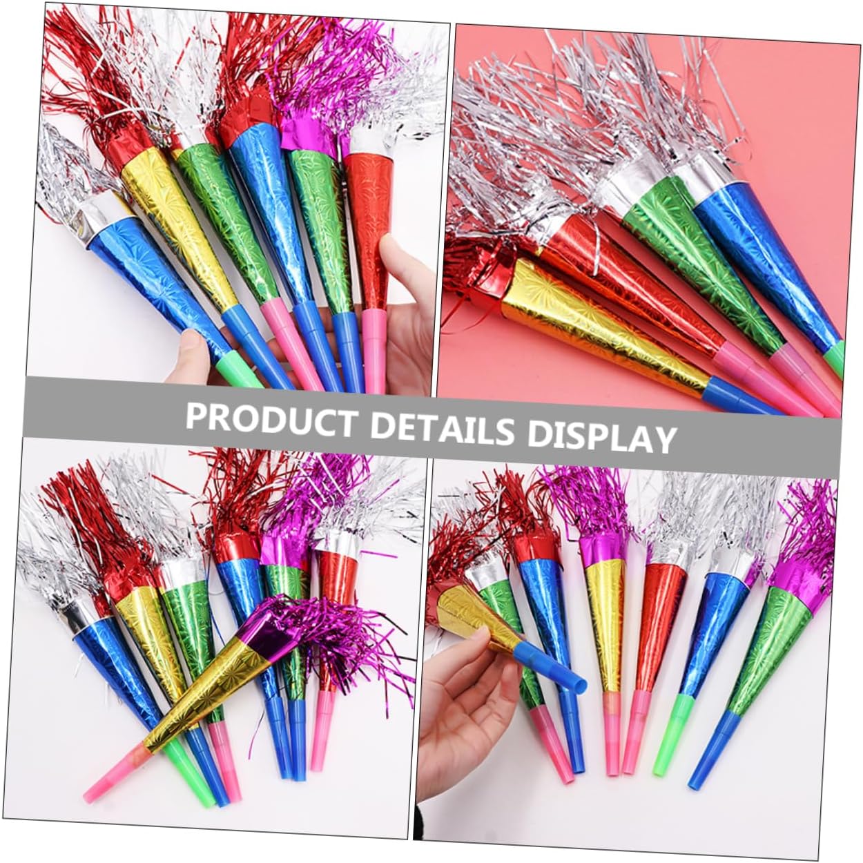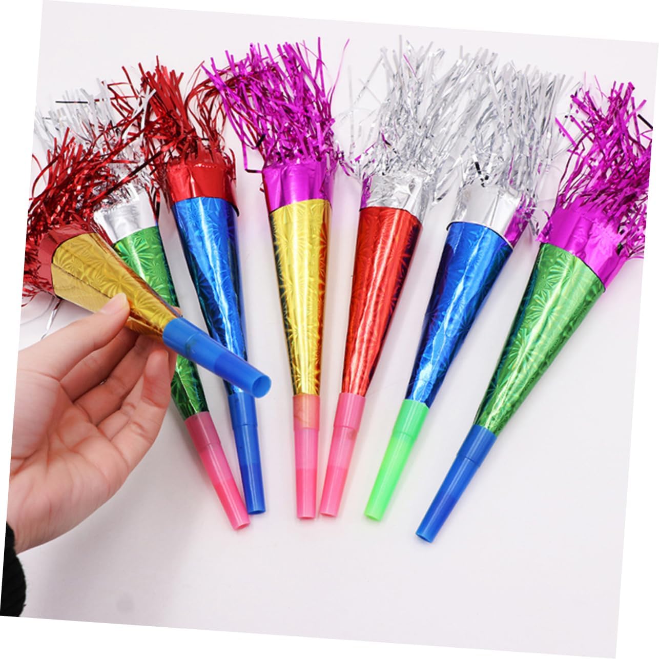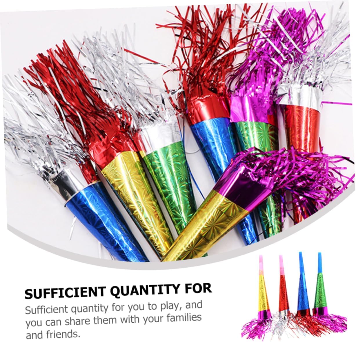 Trombe da festa -- di applicazioni, adatte a vari tipi di festival, feste, raduni e altre scene, trombe da festa Fischietti blowouts: questi oggetti di scena per il tifo renderanno le persone felici ed eccitate, il che è divertente e attraente, fringed noise maker Feste di compleanno: divertenti oggetti di scena e bomboniere per le persone, facili da usare, fanno uscire risate e gioia, creatore di rumore di clacson Fischietti per feste a forma di corno: ampiamente utilizzati per compleanni, matrimoni, shower, feste di capodanno, feste per e altre feste, soffiatori per feste Bomboniere per feste blowouts: sono adorabili nell'aspetto e divertenti da suonare, ti regalano un'esperienza di gioco piacevole, rumorosi strumenti per feste per festival