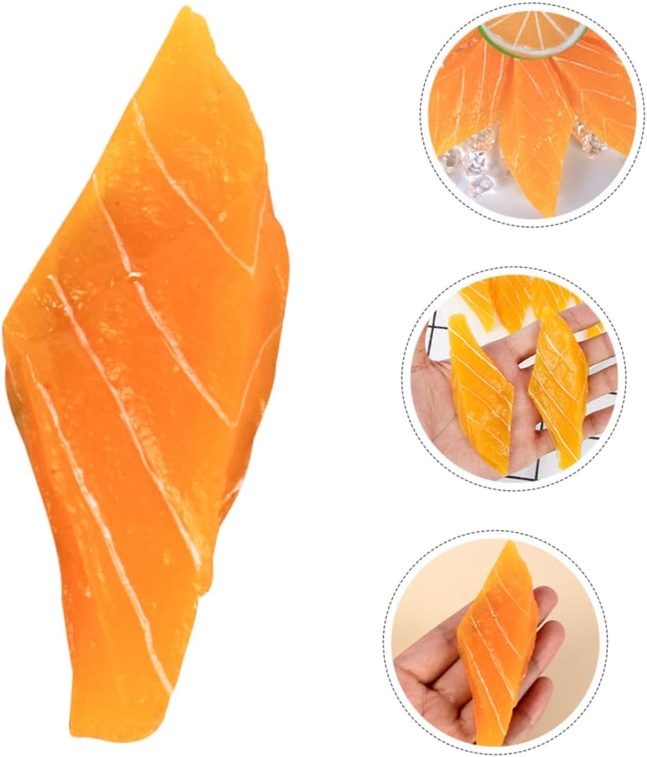 Mini di carne realistico: l'attrattiva visiva di fetta di salmone è tale da offrire un'esperienza realistica sicuramente impressionerà, giocattoli alimentari realistici Cibo : i materiali utilizzati per la sua costruzione sono sicuri, garantendo i gli adulti possano maneggiarlo, esposizioni di cibo Decorazione di cibo realistico: realizzate in pvc, queste fette di salmone non si rompono facilmente, possono essere applicate a lungo e più volte, cibo realistico Decorazione di verdure simulate: è progettata per essere versatile e adatta a varie applicazioni, la rende un'ottima aggiunta a set di cibo da gioco o espositori da cucina, oggetti di per cibo Cibo da gioco realistico: con una fetta resistente e costruita per resistere all'uso regolare e mantenere la sua qualità nel tempo, cibo di