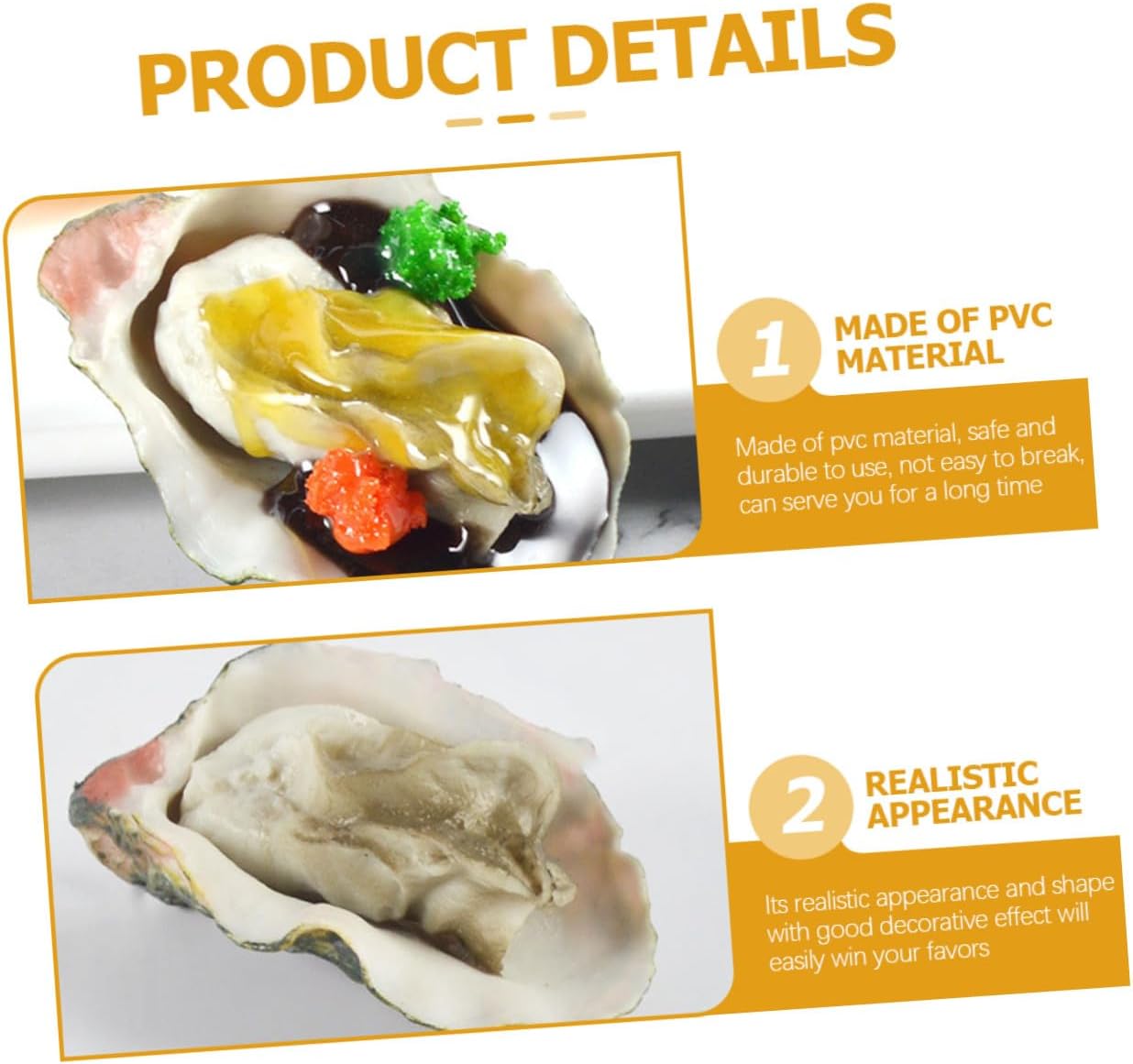 D'ostrica: piccolo e leggero, facile da trasportare usare sempre e , di ostrica Cibo di : realizzato in materiale pvc di qualità, sicuro e durevole da usare, non facile da rompere, di mare artificiali da esporre Supporto per di mare: non contiene ingredienti alimentari, può essere utilizzato a lungo senza , decorazione per ostriche Di mare finti sembrano veri: di ostrica può essere utilizzato per aggiungere più interesse apparecchiatura da tavola, esposizione di foto e cibo, al giocattolo delle ostriche Decorazione a forma di conchiglia di ostrica: lavorazione eccellente, massima attenzione a ogni dettaglio per conferirgli un aspetto realistico, cibo a base di di mare