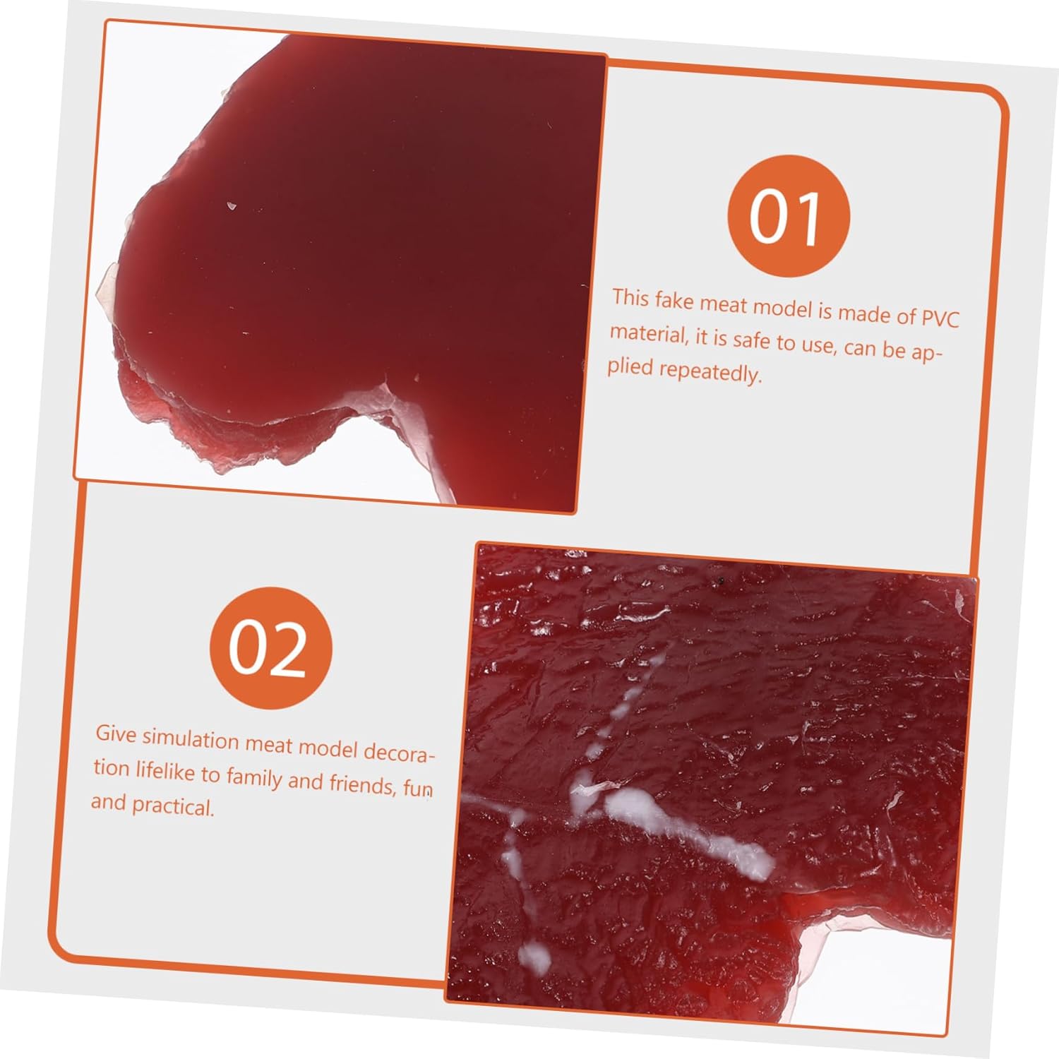 Carne realistica: realizzato con materiali in PVC sicuri, l'ornamento è caratterizzato da materiale, durata e colore brillante, finta bistecca cruda: questo modello di bistecca artificiale è realizzato in materiale PVC, sicuro da usare, può essere usato ripetutamente ed è un cibo artificiale realistico. Oggetti di scena di manzo: alta simulazione, realistico e decorativo, ha un migliore effetto decorativo, modello di cibo decorativo Arrosto di manzo affettato: oggetti di scena per l'insegnamento in età prescolare, giocattoli complicati, fotografia, oggetti di scena cinematografici. Può essere una buona decorazione per la cucina o un giocattolo per bistecche. Modello di carne artificiale cotta: decorazione di carne attraente e artificiale per cucina, tavola e altre occasioni, supporto per bistecca artificiale