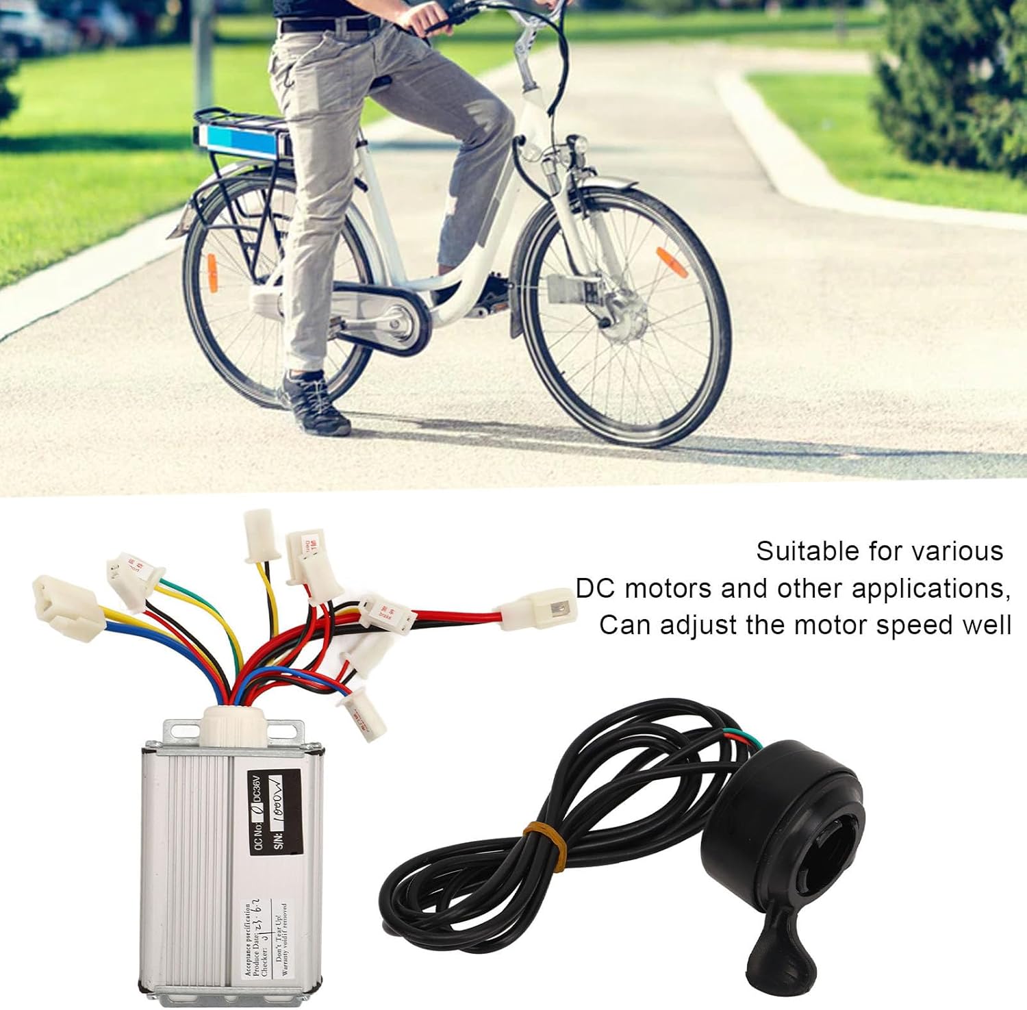 PRESTAZIONI DI CONTROLLO EFFICIENTI - Sperimenta prestazioni efficienti con il controller che presenta coppia elevata, calore ridotto e protezioni integrate contro polarità inversa e corrente elevata. Goditi il funzionamento affidabile e sicuro del tuo veicolo elettrico. CONTROLLO ACCELERATORE A POLLICE STABILE - L'acceleratore a pollice fornisce un controllo della velocità stabile e sensibile ed è comodamente posizionato sul lato destro del manubrio per un facile accesso e un funzionamento regolare. Goditi il controllo preciso della velocità del tuo veicolo per una guida confortevole. APPLICAZIONE VERSATILE - Progettato per la versatilità, il controller da 36 V 1000 W è adatto a una varietà di veicoli tra cui biciclette elettriche, tricicli, motociclette e altro ancora. Goditi la compatibilità con varie piattaforme di veicoli elettrici. COMPATIBILE CON MOTORI CC - Il controller da 36 V 1000 W è compatibile con una varietà di motori CC e altre applicazioni, consentendo una regolazione efficiente della velocità e prestazioni ottimali del motore. Sperimenta un funzionamento regolare e affidabile del motore con il nostro controller. DURATA DI LUNGA DURATA – Costruito con circuiti stampati durevoli, il controller garantisce una lunga durata per un uso prolungato e prestazioni affidabili. Goditi la tranquillità sapendo che il tuo controller resisterà ai rigori dell'uso quotidiano e ti offrirà un'esperienza utente eccezionale.