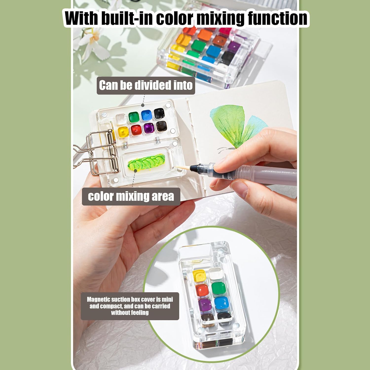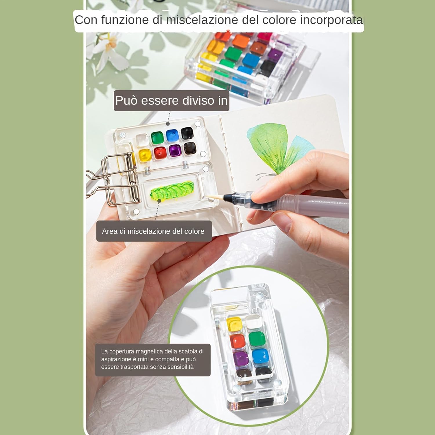 Supporto Creativo: Tecniche di stratificazione raffinate esaltano tonalità vivide, completate da un libro per effetti ad precisi e straordinari Soluzione Portatile: Ideale per creativi in movimento, questo set acquarelli permette di dipingere ovunque grazie alla struttura leggera e agli integrati come attacco e pennello, assicurando massima praticità durante il trasporto. Creatività Illimitata: La gamma acquarelli sviluppa abilità pittoriche con colori di facile utilizzo, favorendo immaginazione senza limiti. Adatta a principianti e appassionati, supporta la crescita artistica attraverso una pratica coinvolgente per ogni livello. Kit Completo:Set acquerelli con scatola pittura compartimenti multipli, include vari colori per soddisfare esigenze creative, ideale per principianti e pittori esperti con palette integrata per sperimentazione artistica versatile Ispira creatività: Maggiore creatività con scatola a scomparti che organizza i colori, promuovendo sviluppo artistico senza interruzioni e sperimentazione