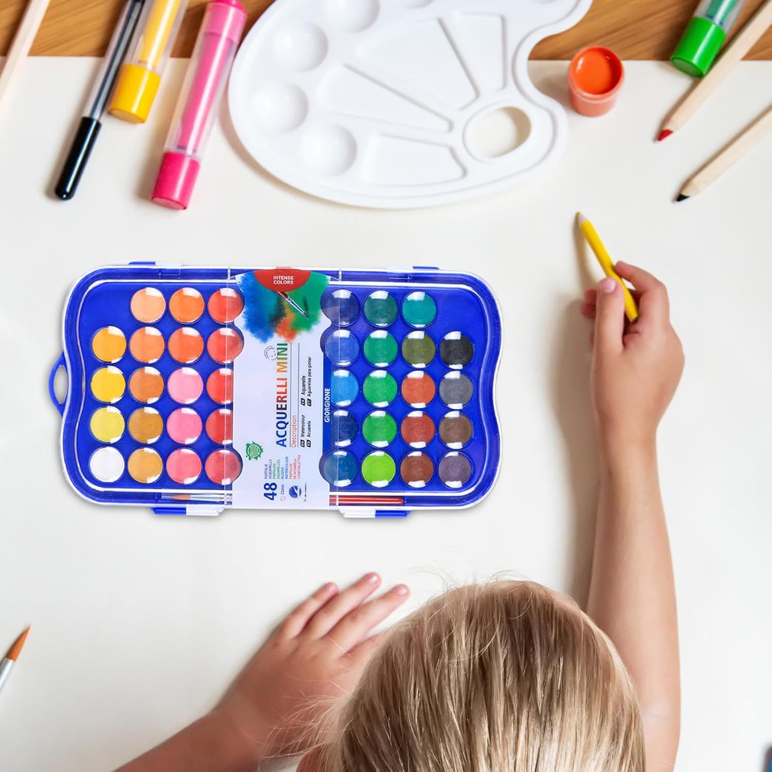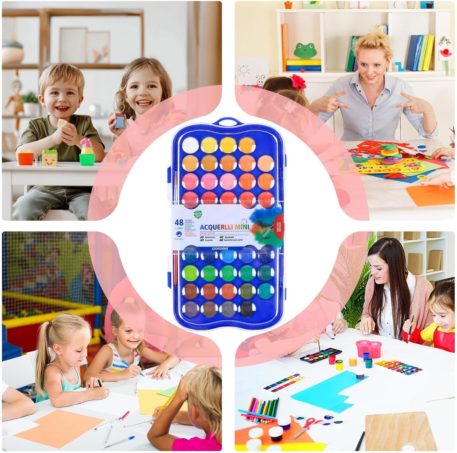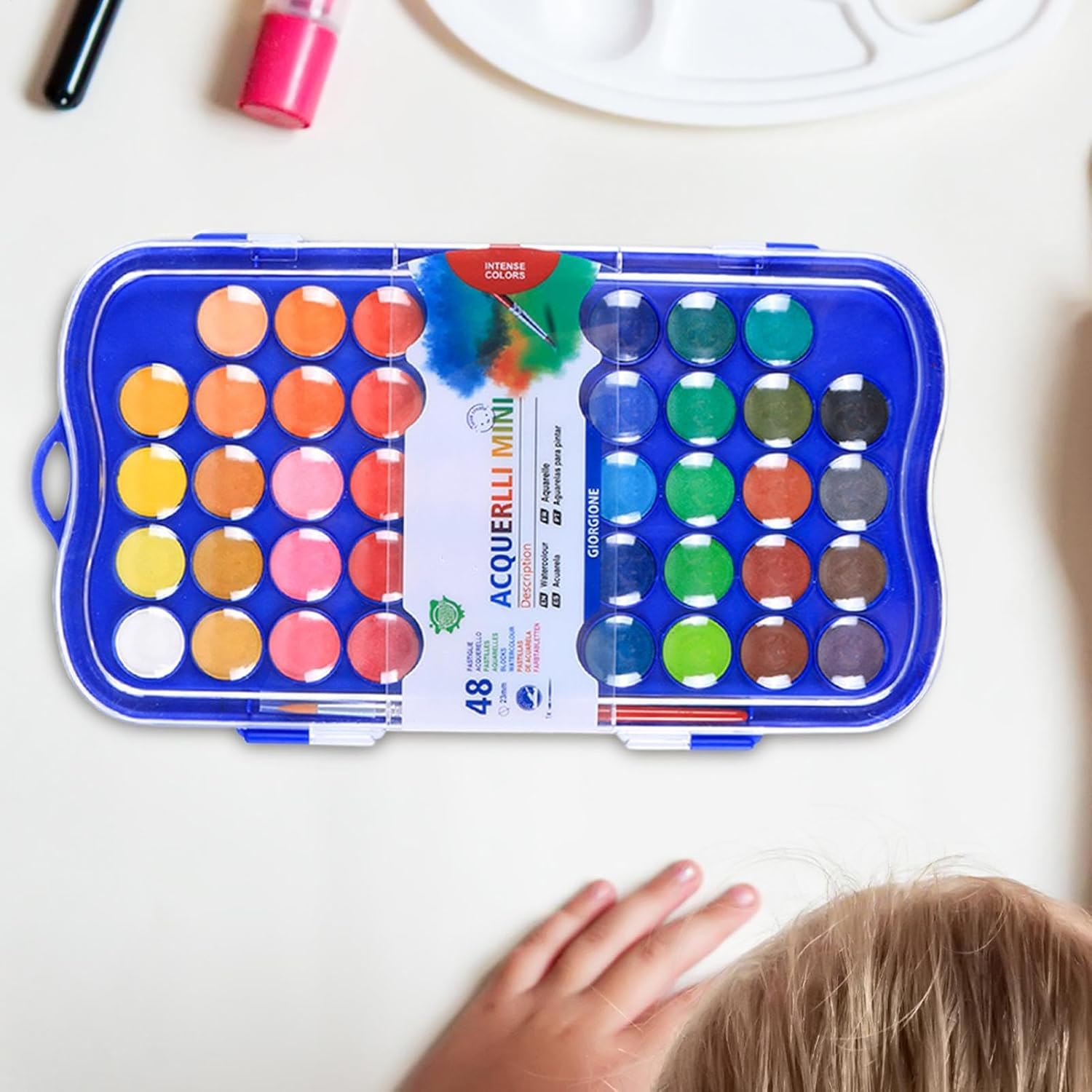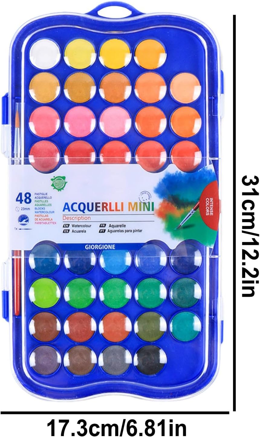 Incoraggia l'espressione creativa: accendi l'immaginazione di tuo figlio con 48 diversi acquerelli solidi che danno vita alle sue visioni. Questi colori vibranti ispireranno sicuramente la crescita artistica e un amore permanente per la pittura. Pratica pittura all'aperto: stimola l'immaginazione di tuo figlio sempre e ovunque con il nostro kit di pittura ad acquerello. Viene fornito con un pennello, quindi non è necessario acquistare alcun extra, rendendolo facile e comodo da usare. Adatto per la maggior parte delle occasioni: materiali artistici eccellenti ampiamente utilizzati, adatti a casa, scuola, feste, ecc., applicabili in molte scene per una maggiore espressione artistica. Sicuro da usare: con un design pulito e sicuro, il nostro kit di pittura ad acquerello consente di pulire facilmente anche le macchie più accidentali sui vestiti. La formula innocua e lavabile mantiene il tuo bambino al sicuro mentre crea vivaci opere d'arte che esprimono la sua immaginazione senza fare confusione. Scelta regalo perfetta: migliora le capacità artistiche della persona amata con un set di colori ad acquerello fornito in una confezione di bellezza unica. Questa scelta regalo perfetta offre l'attenzione e la cura che meritano per compleanni, vacanze e occasioni speciali.