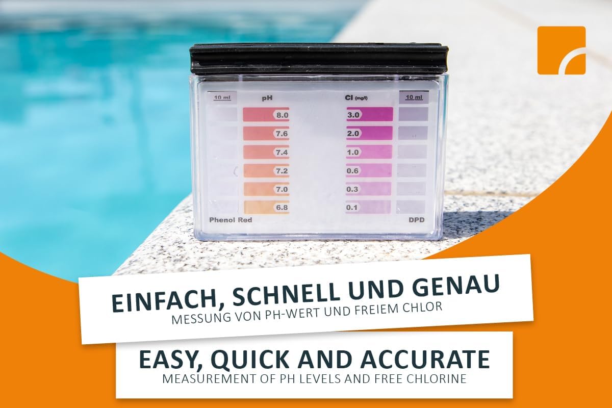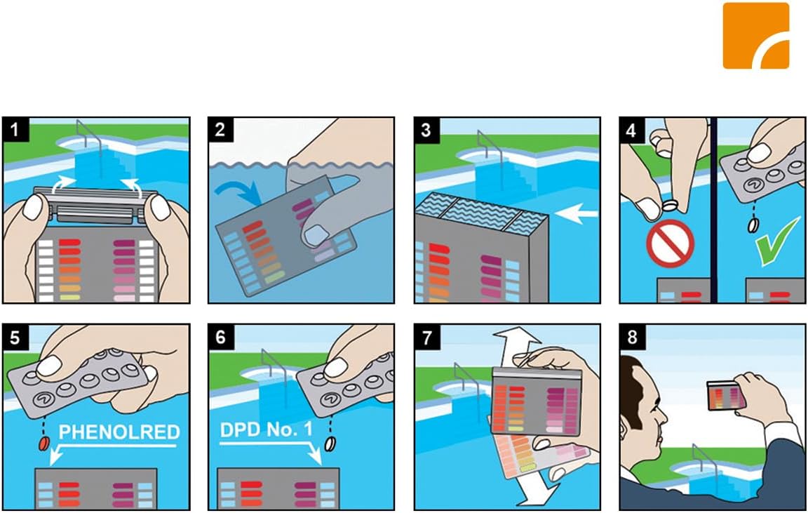 10 compresse Phenol-Red + 10 compresse DPD1 Contenitore in plastica Per la misurazione del pH e del cloro libero Misurazione rapida, precisa e semplice