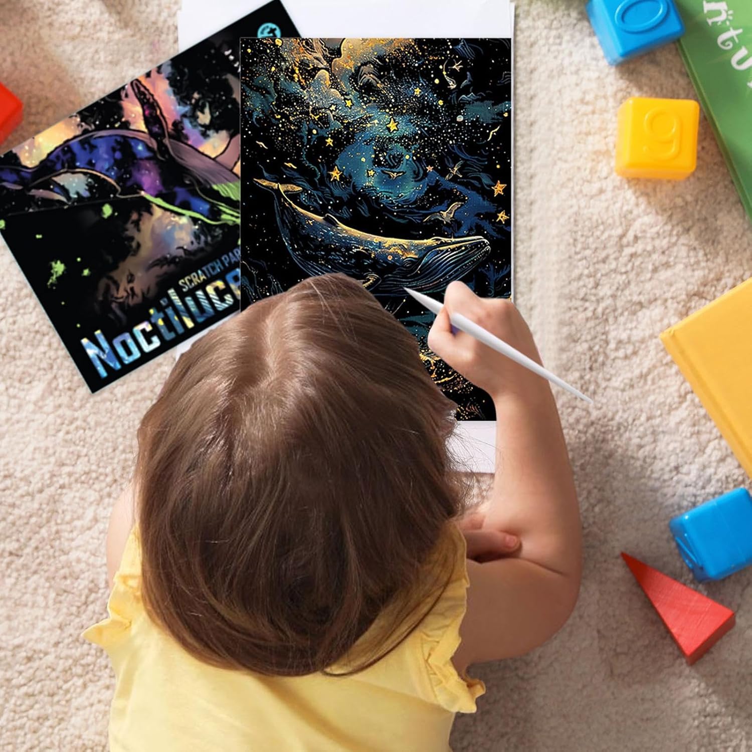 Luminescenza Soffusa Creativa: Il kit utilizza una base di cartoncino fosforescente per offrire un effetto creativo dal bagliore soffuso e avvincente, per laboratori artistici durante serate tra amici o in ambienti domestici raccolti Design Creativi e Stimolanti: Questo kit offre modelli progettati in modo creativo per ampliare la scelta e accendere la fantasia, consentendo ai bambini di divertirsi con vari disegni durante attività domestiche o scolastiche, potenziando la creatività attraverso esercizi pratici e piacevoli Coordinamento Migliorato: La carta da raschiamo supporta lo sviluppo delle abilità permettendo di rimuovere le superfici grigie, potenziando il coordinamento mano-occhio mentre rivela colori brillanti e motivi intricati, assicurando un passatempo divertente e arricchente per bambini e adulti Arte con Colori Vivaci: Unisce espressione artistica e vantaggi pratici, incentivando i bambini a esplorare la creatività e aggiungere motivi colorati ai propri progetti. Scelta ponderata come regalo per feste o compleanni, abbellisce inoltre la stanza quando appeso al muro Arte per tutta la famiglia: La carta graffita è strumento per rilassarsi e distendersi, consentendo a bambini e adulti di creare legami attraverso progetti condivisi, migliorando le relazioni familiari mentre si divertono con il processo colorato di creare artistiche opere graffitate a casa.