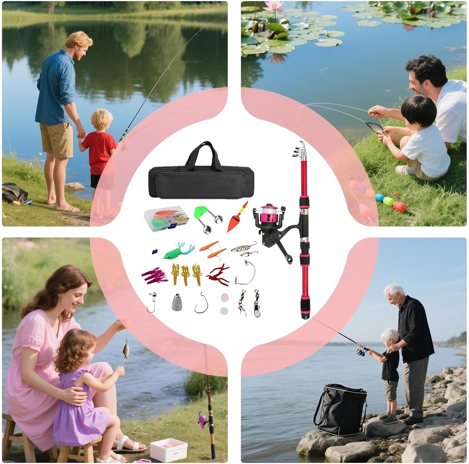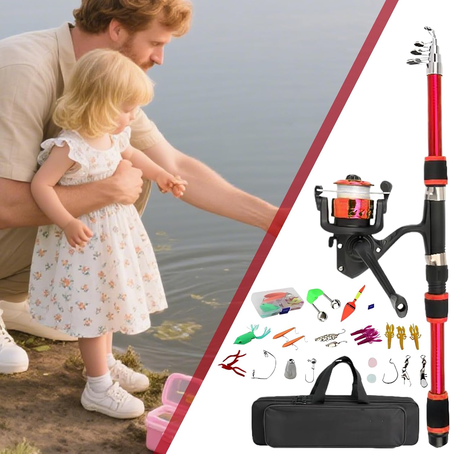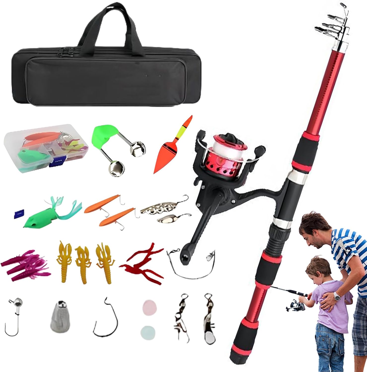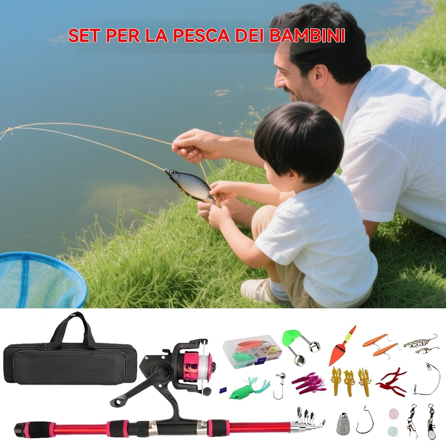 Combo Telescopica:Completo kit approccio con canna e mulinello telescopici più inclusi, offre tutto il necessario per esperienze di fluide ai giovani angler Versatile Attrezzatura: Progettato con dimensioni compatte per zaino e struttura leggera, il kit di per bambini garantisce trasporto facile, montaggio rapido e utilizzo versatile grazie alla funzionalità telescopica che risparmia spazio in vari ambienti esterni senza sforzo. Controllo Intuitivo: Promuove lo sviluppo 'interesse e la concentrazione attraverso un metodo ben bilanciato, rendendo l'apprendimento e abilità di semplice e coinvolgente per i bambini Design Portatile: Combinazione perfetta di resistente e canna telescopica ergonomica con impugnatura antiscivolo per semplificare la in movimento, massimizzando praticità e trasporto agevole in ogni escursione Affidabilità: Realizzato con materiali resistenti all'abrasione, garantisce prestazioni in ambienti di acqua e compatibilità con esche multiple, ideale per momenti familiari indimenticabili.