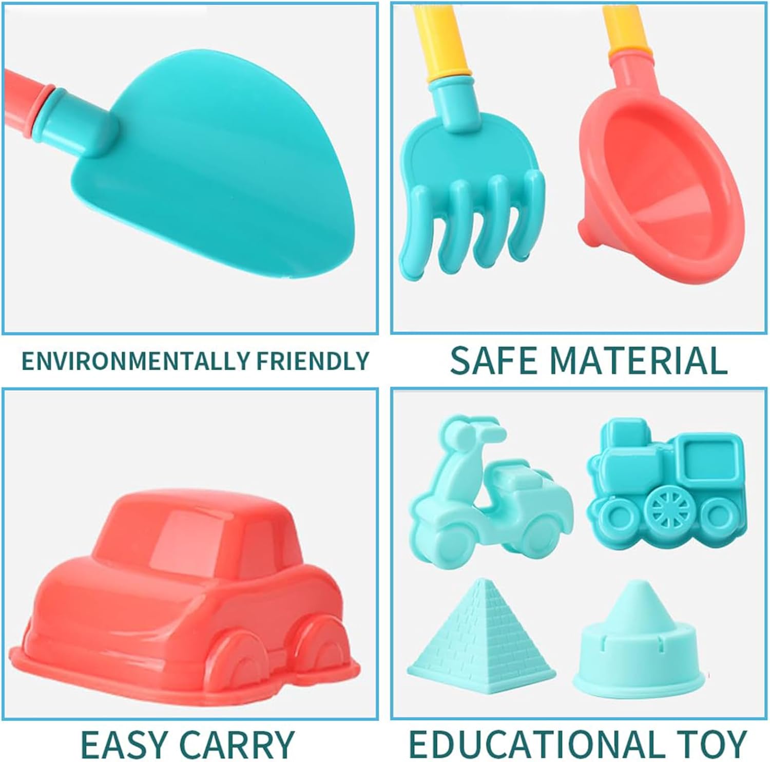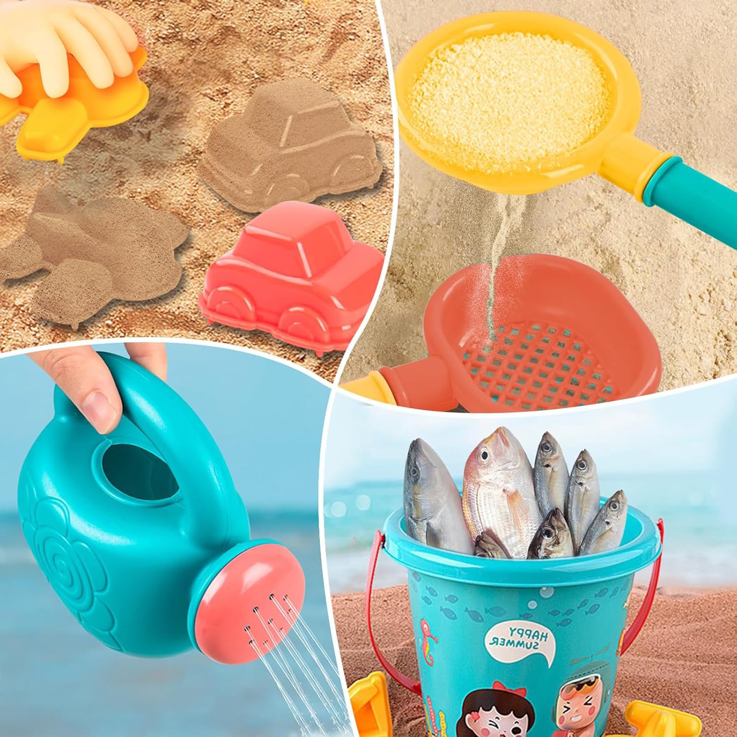🏖 Tutto l'Occorrente per Giocare - Include 1 secchiello, 5 formine a tema animali, 2 pale ergonomiche, 1 innaffiatoio, 3 setacci e una pratica borsa rete per trasportare e asciugare i pezzi. 🎓 Apprendimento Giocoso - Le formine geometriche e gli strumenti da giardinaggio in miniatura insegnano ai bambini a riconoscere forme, volumi e sviluppare capacità motorie complesse. ✅ Massima Sicurezza - Materiali plastici certificati privi di ftalati, con superfici lisce e spessori rinforzati che resistono ai colpi durante i giochi più vivaci. 🌊 Divertimento Senza Limiti - Oltre alla sabbia, il set può essere utilizzato con acqua, neve o terra, trasformandosi in un gioco educativo per tutte le stagioni e ambienti. 🎁 Confezione Regalo - Presentato in una pratica scatola illustrata, è il regalo ideale per feste in spiaggia, compleanni estivi o come premio per bambini creativi.
