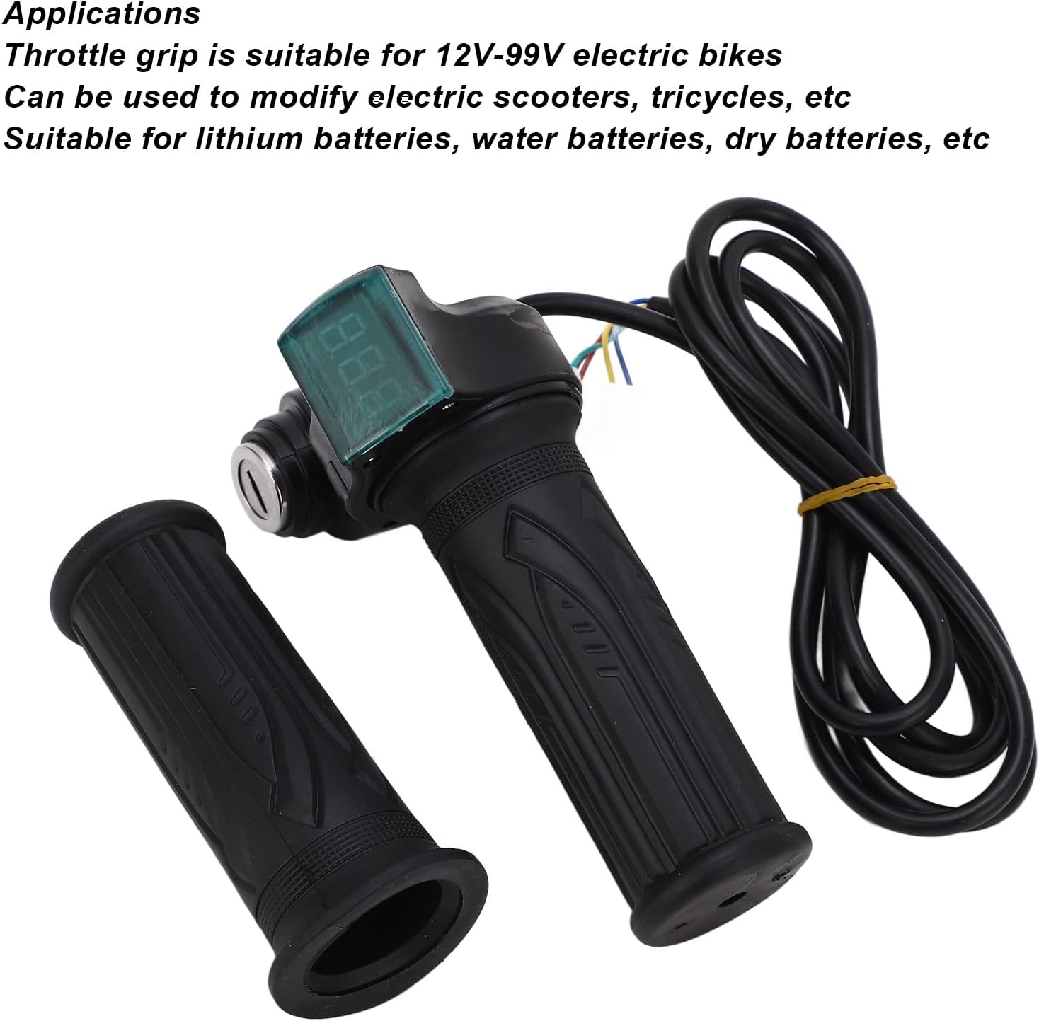 [Applicazione] L'impugnatura dell'acceleratore è adatta per biciclette elettriche da 12 V 99 V, che possono essere utilizzate per modificare scooter elettrici, tricicli, ecc. Adatto per batterie al litio, batterie ad acqua, batterie a secco e altre batterie. [Display digitale] La maniglia dell'acceleratore della bici elettrica ha un comodo display digitale della potenza, che è intuitivo e mostra chiaramente i dati a colpo d'occhio e può determinare con precisione la potenza rimanente. Con funzione di crociera. [Stabile e sensibile] Il controllo della bicicletta può fornire una velocità stabile e un controllo sensibile della frenata e del cambio di direzione. Ampia gamma di applicazioni, adatte per biciclette elettriche, tricicli, motocicli, ecc. [Protezione multipla] Controller a spazzole 48 V 500 W con protezione da sottotensione, sovracorrente e velocità di stallo, prestazioni stabili e affidabili, garantendo la sicurezza dell'uso della bicicletta elettrica. [Dissipazione rapida del calore] L'alloggiamento del controller della e-bike è realizzato in lega di alluminio di alta qualità con scanalature che garantiscono una rapida dissipazione del calore e proteggono il circuito interno dal sovraccarico termico.