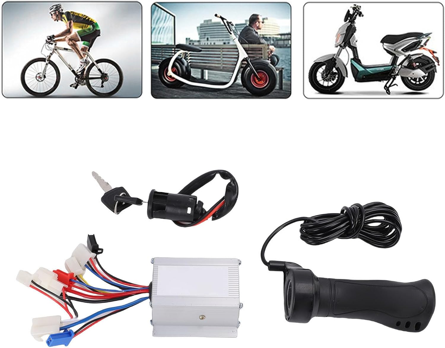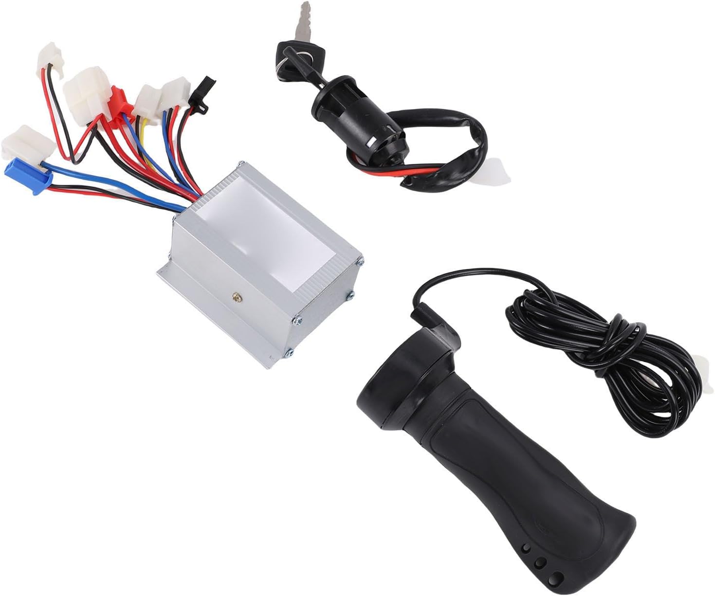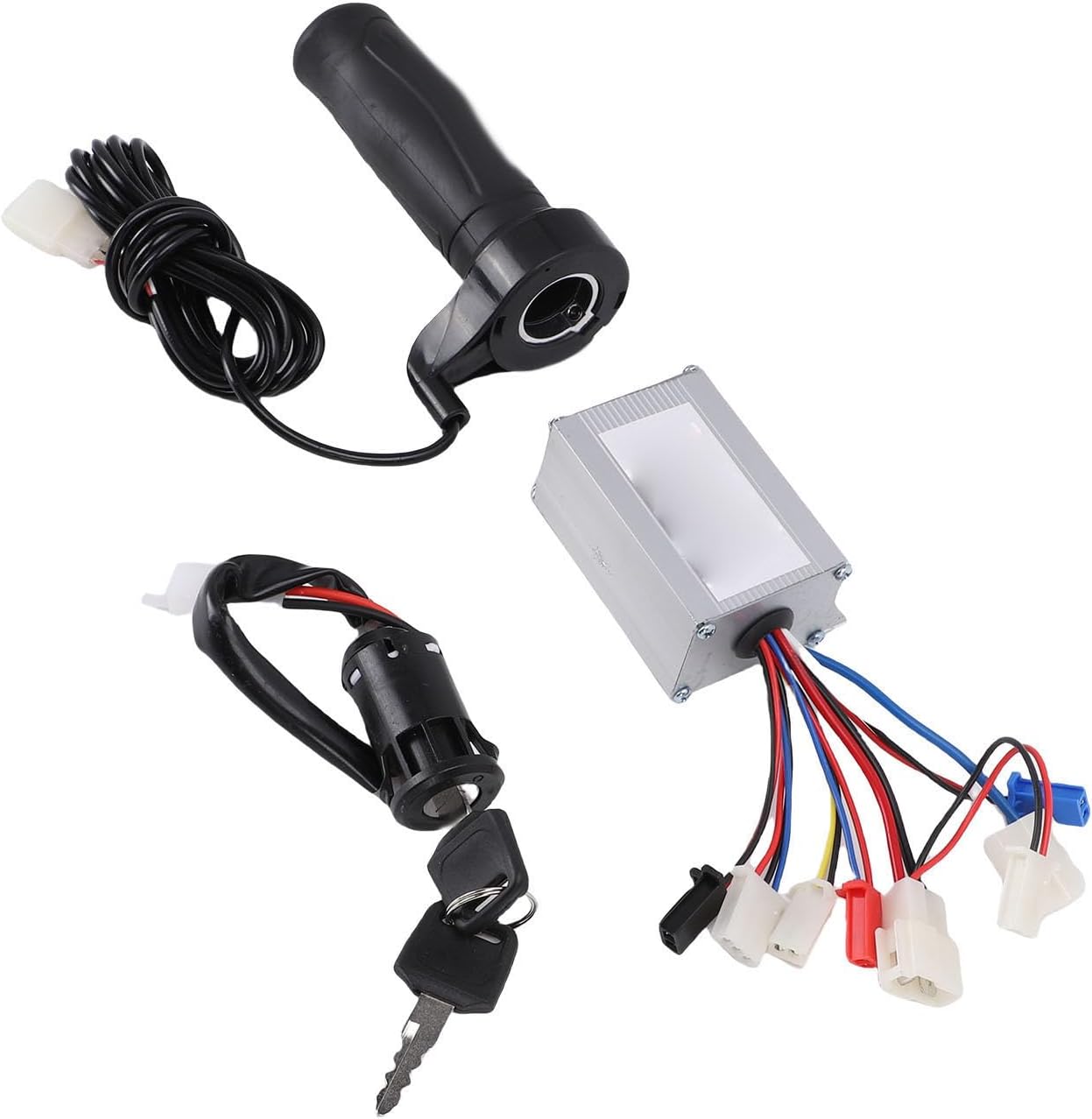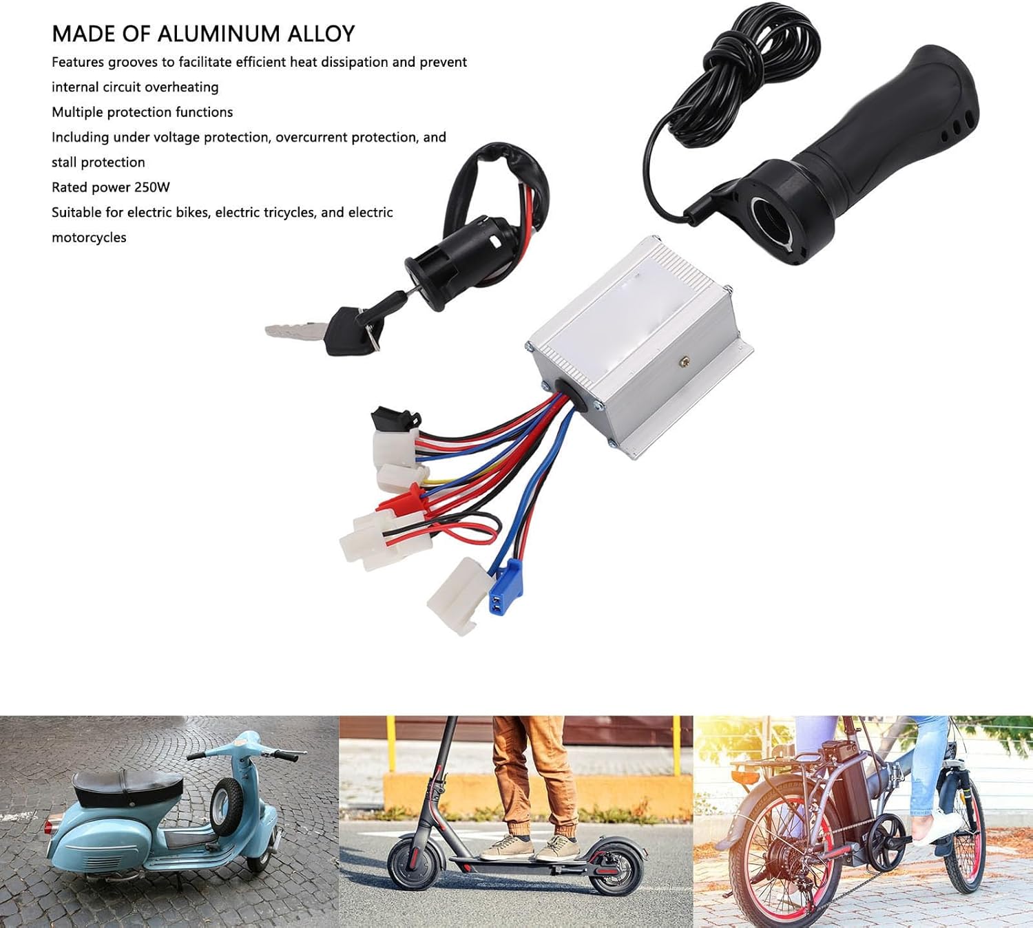 [Protezione di sicurezza] Progettato con meccanismi di protezione tra cui protezione da sovracorrente e stallo, il controller del motore garantisce un funzionamento sicuro in varie condizioni. spegni il quando rilevi anomalie dandoti tranquillità durante ogni corsa [Soluzione pratica] Questo kit controller per bici elettrica serve come sostituto di componenti usurati o come aggiornamento per prestazioni migliori.compresa la plastica e la gomma in lega di alluminio garantiscono la durata in varie condizioni atmosferiche. [Dissipazione del calore] Il controller spazzolato è alloggiato in un involucro in lega di alluminio di alta qualità con design avanzato delle scanalature per massimizzare la dissipazione del calore. previene il surriscaldamento e il sovraccarico termico proteggendo i circuiti interni maggiore durata. [Compatibilità versatile] Questo kit controller per bici elettriche si installa facilmente su tricicli e motociclette elettriche. il semplice processo di installazione lo rende adatto sia agli appassionati del fai da te che ai meccanici professionisti. [Potente ed efficiente] Questo kit controller per bici elettrica è dotato di un controller per motore con spazzole da 250 W progettato per offrire prestazioni ottimali per il tuo triciclo o moto elettrica. impugnatura dell'acceleratore e blocco dell'interruttore a chiave di accensione con due chiavi che garantiscono funzionamento regolare e sicurezza. io